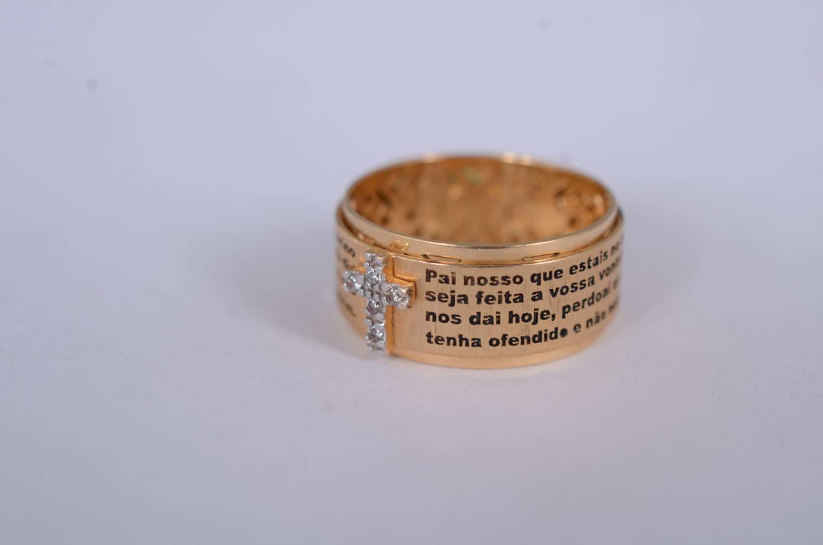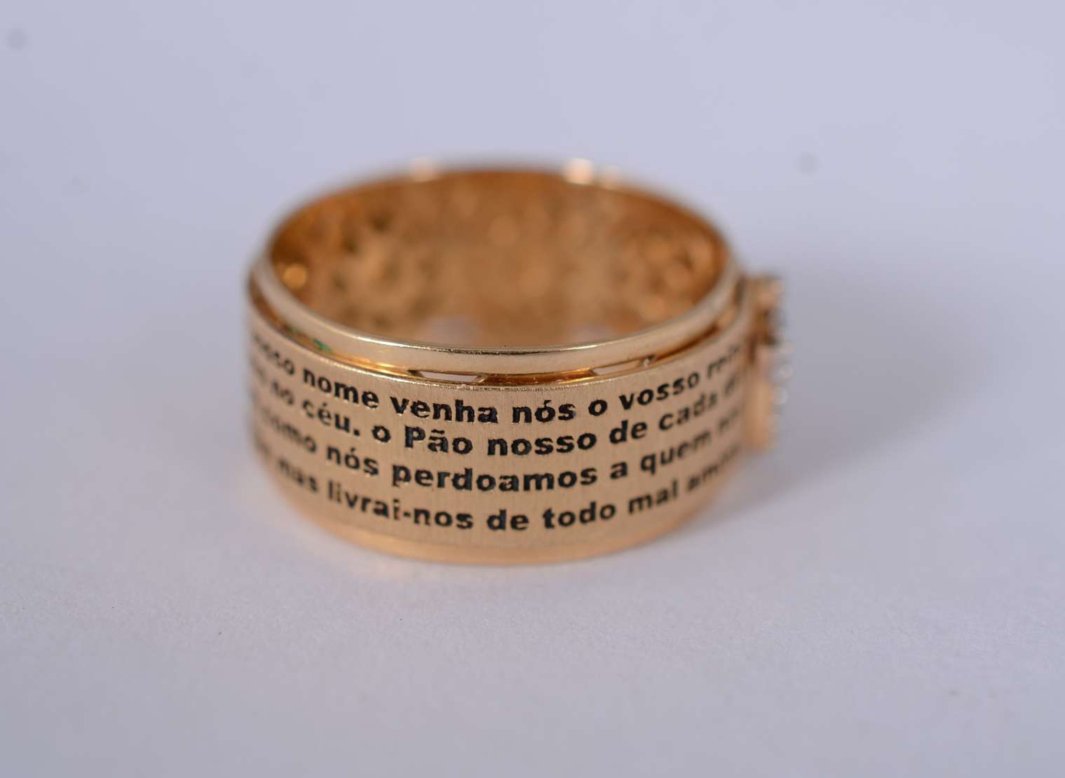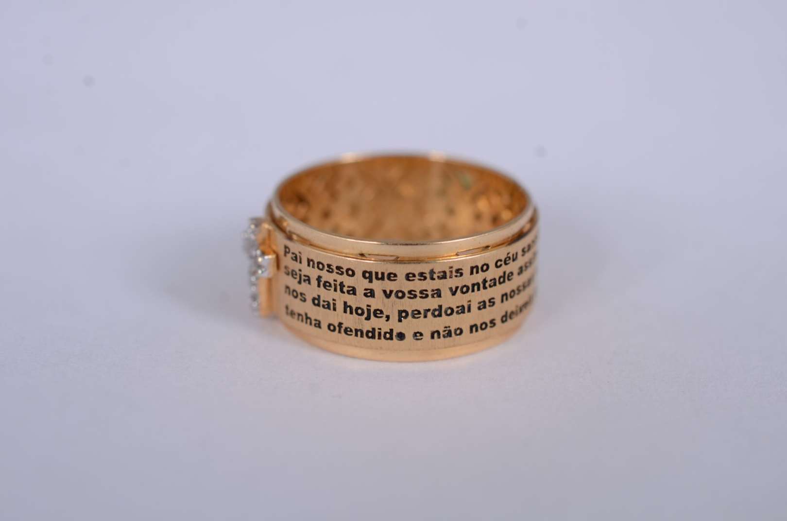 Anel de ouro amarelo 18 k., com 4 rubis e mini brilhantes, aro 19. (Por motivos de segurança a peça não se encontra n...