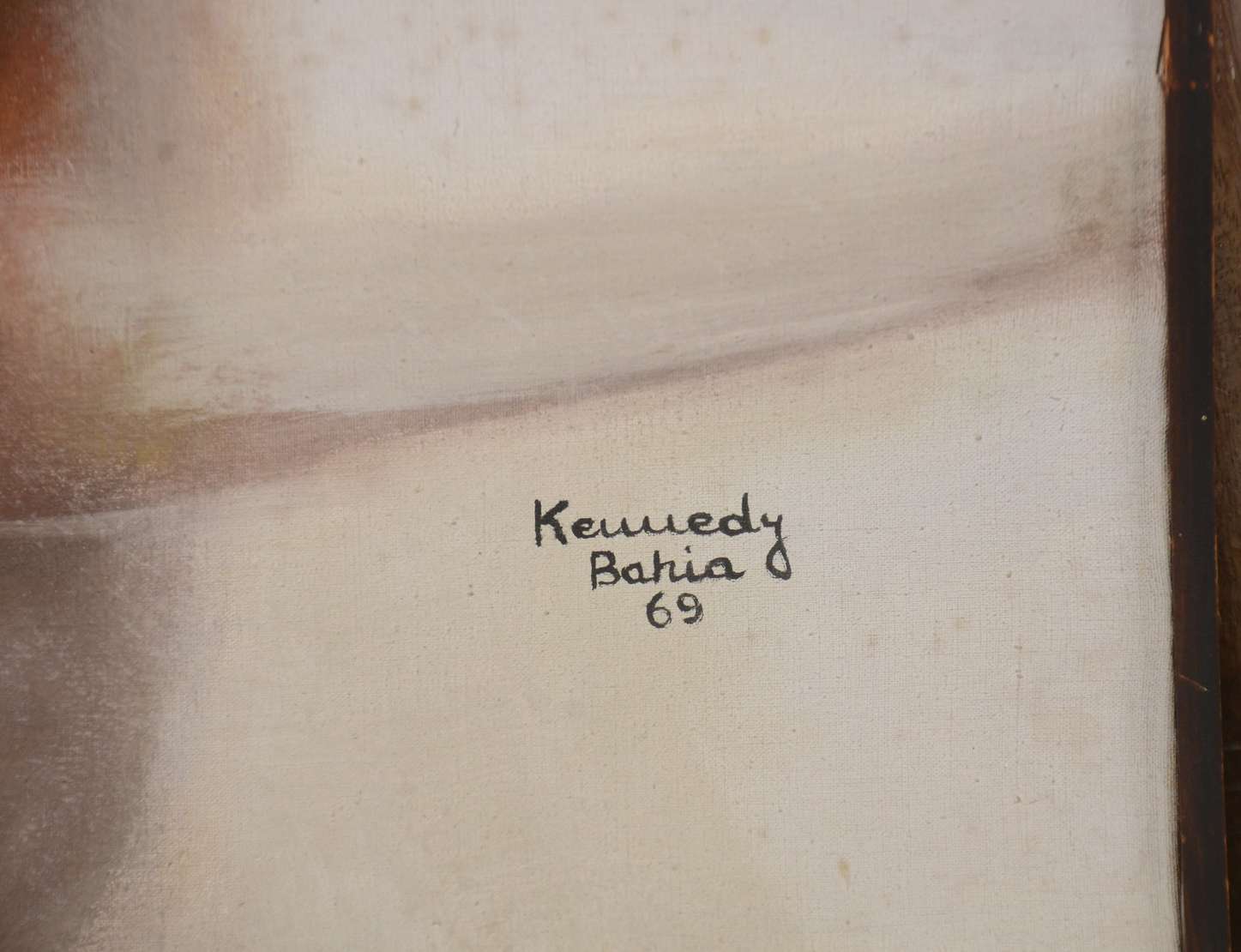 Óleo sobre madeira. Tinta soltando em pequenas partes, precisando de restauro.