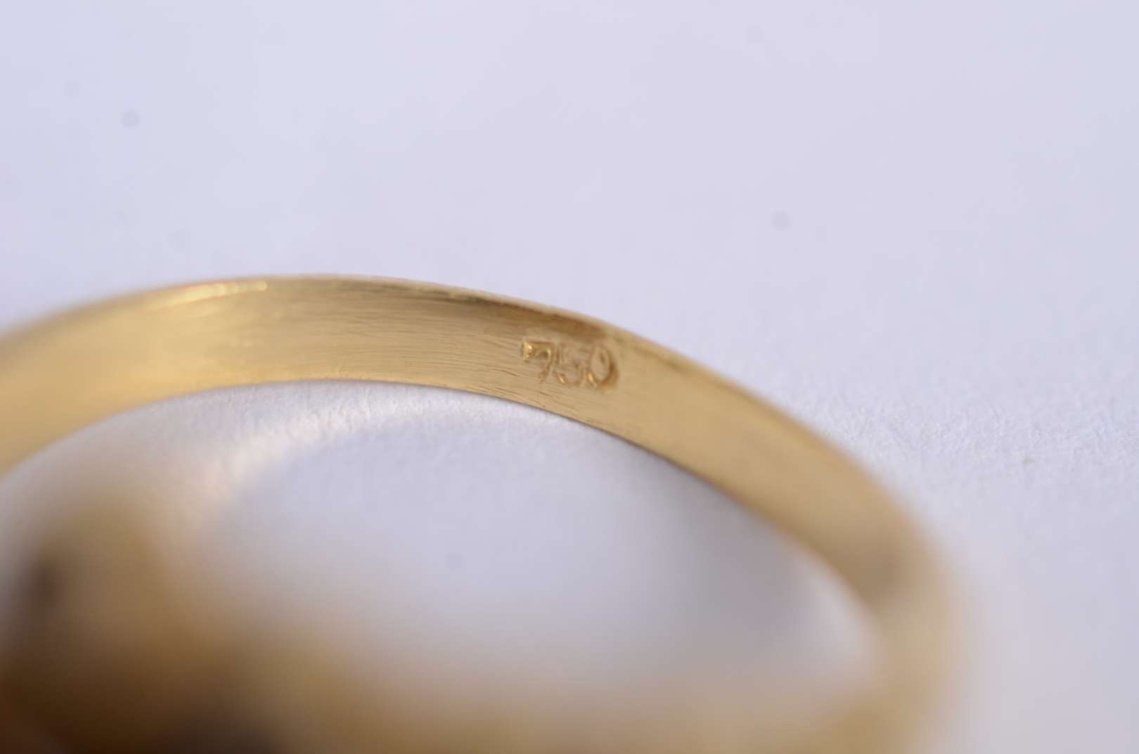 Anel de ouro amarelo 18 k., contraste 750mls com descrições ( Pai nosso) e crucifixo com mini brilhante, aro 12. (Po...