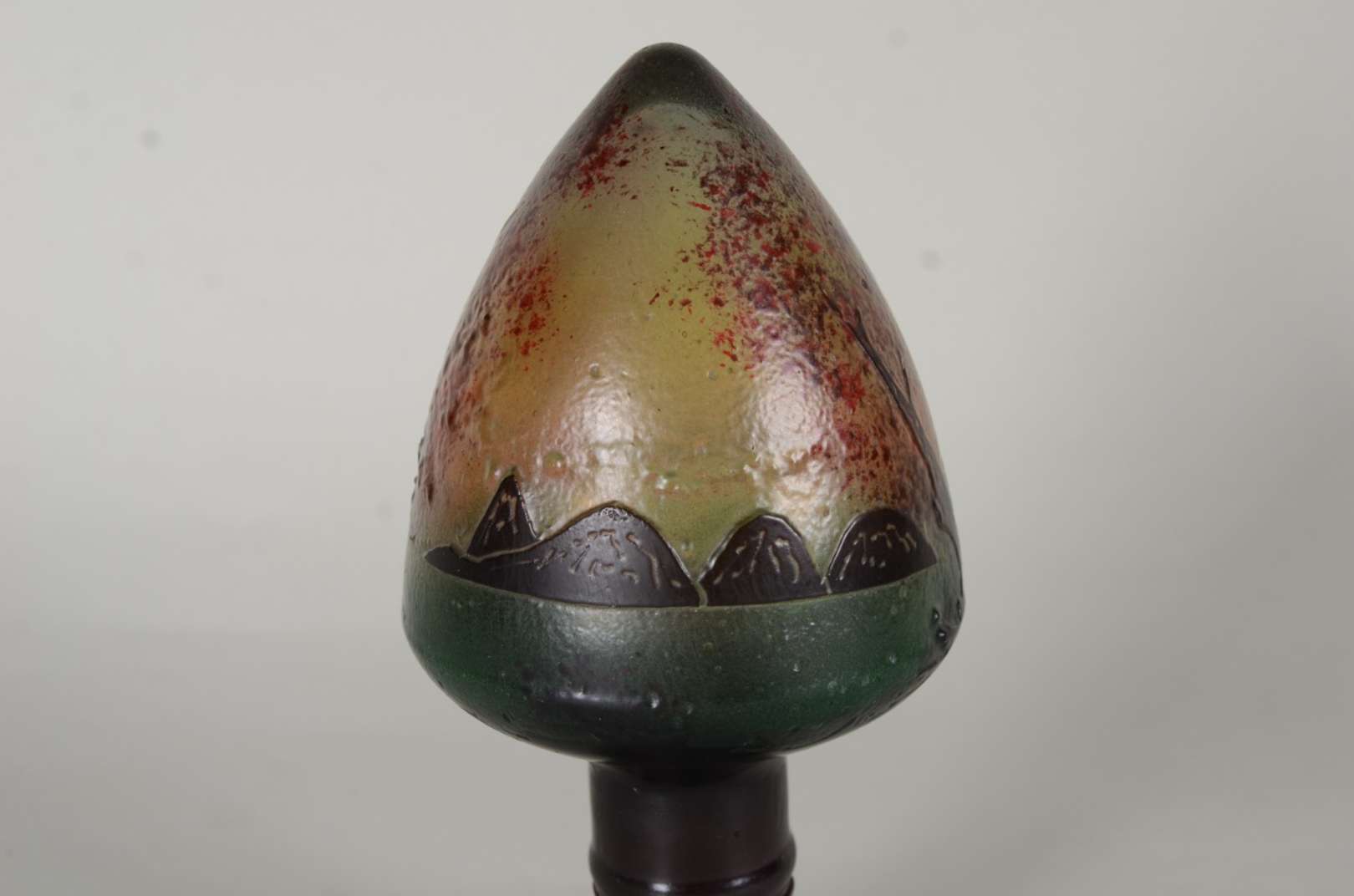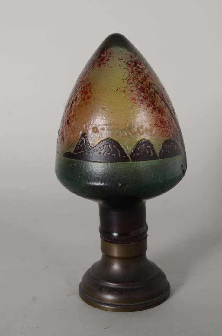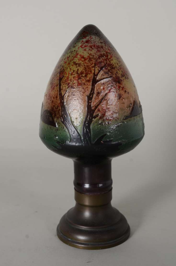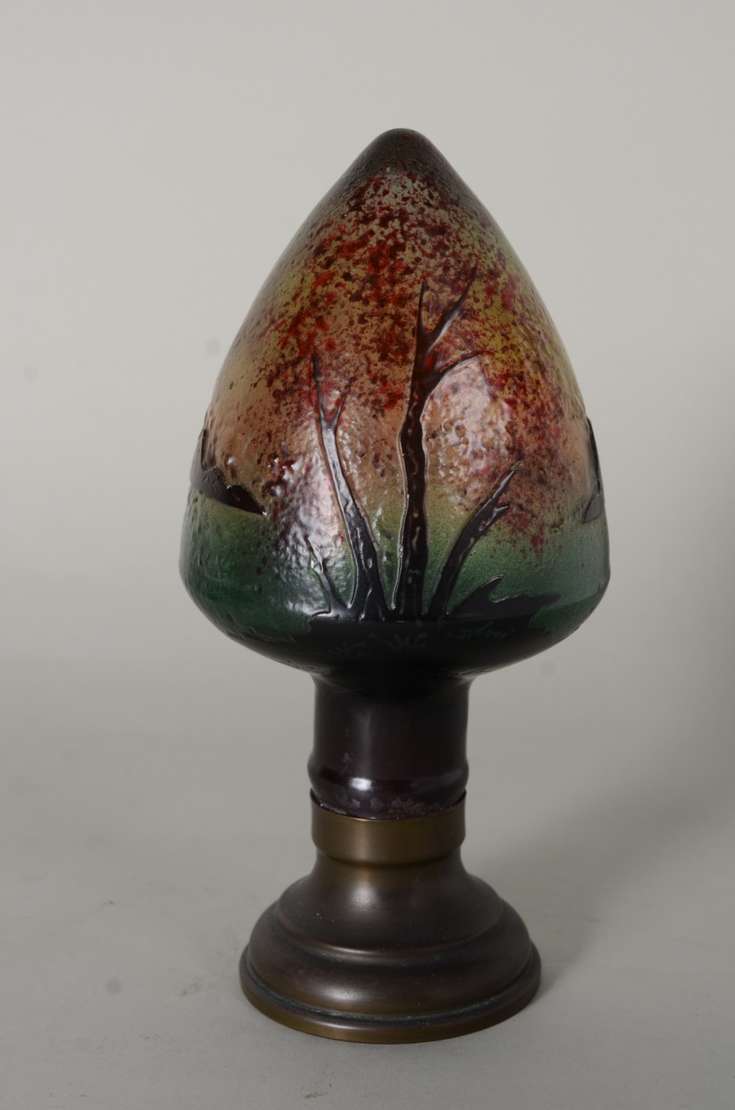 Luminária de petit bronze representando figura feminina, manga de vidro fosca.