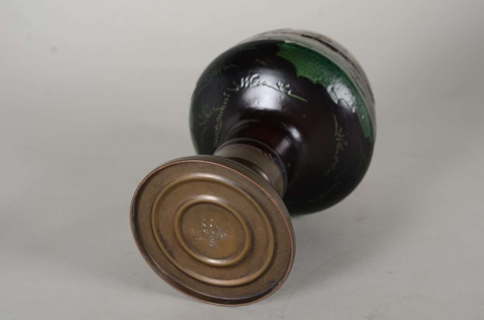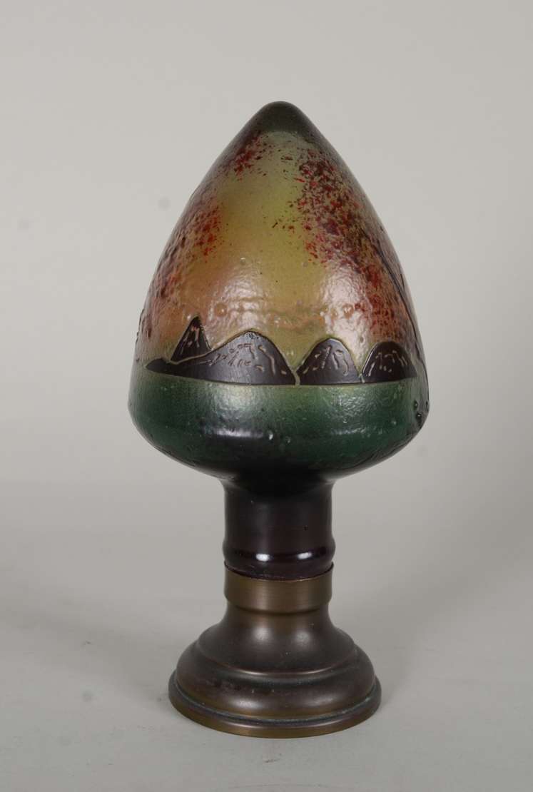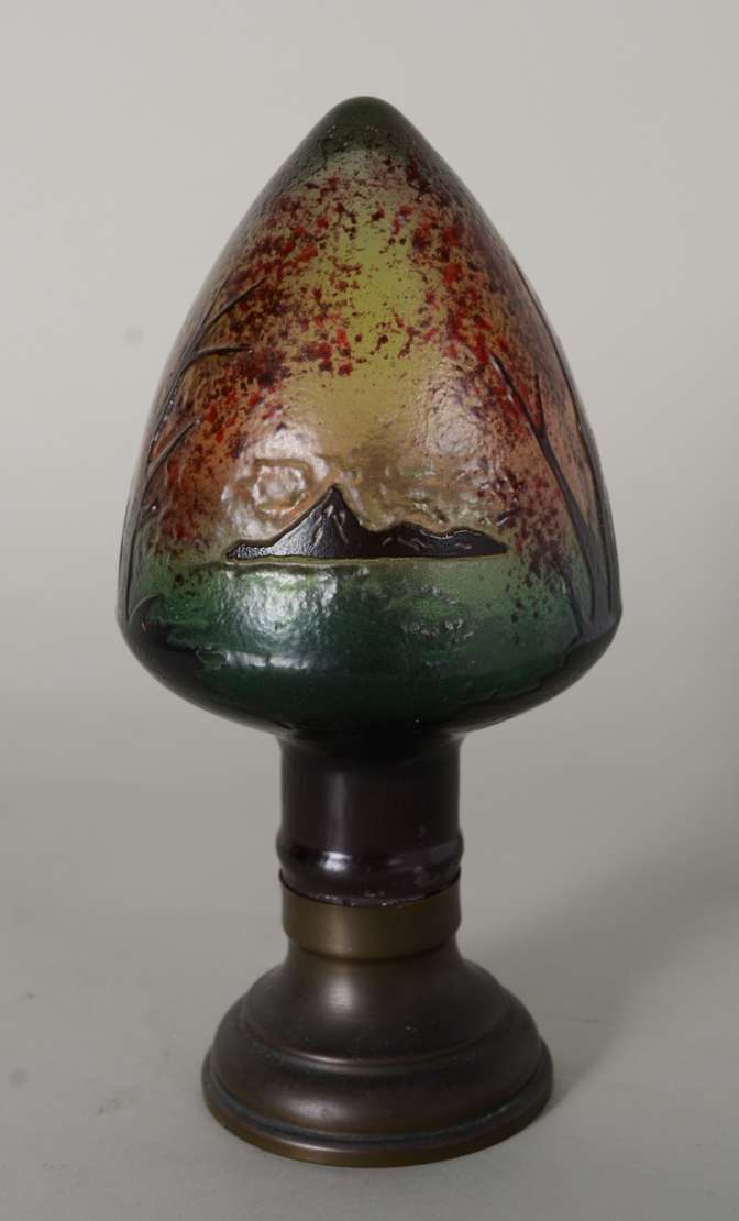 Luminária de petit bronze representando figura feminina, manga de vidro fosca.