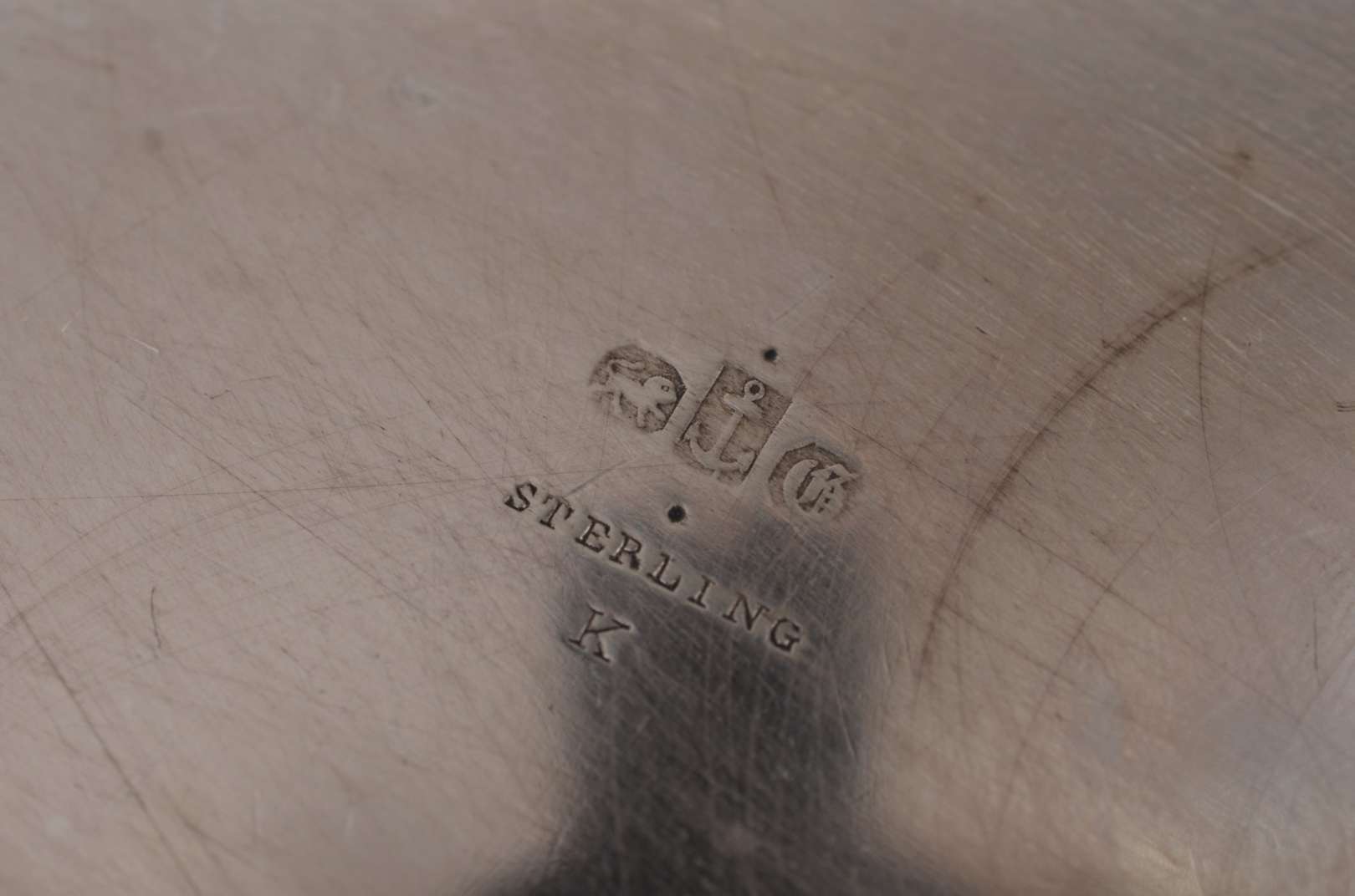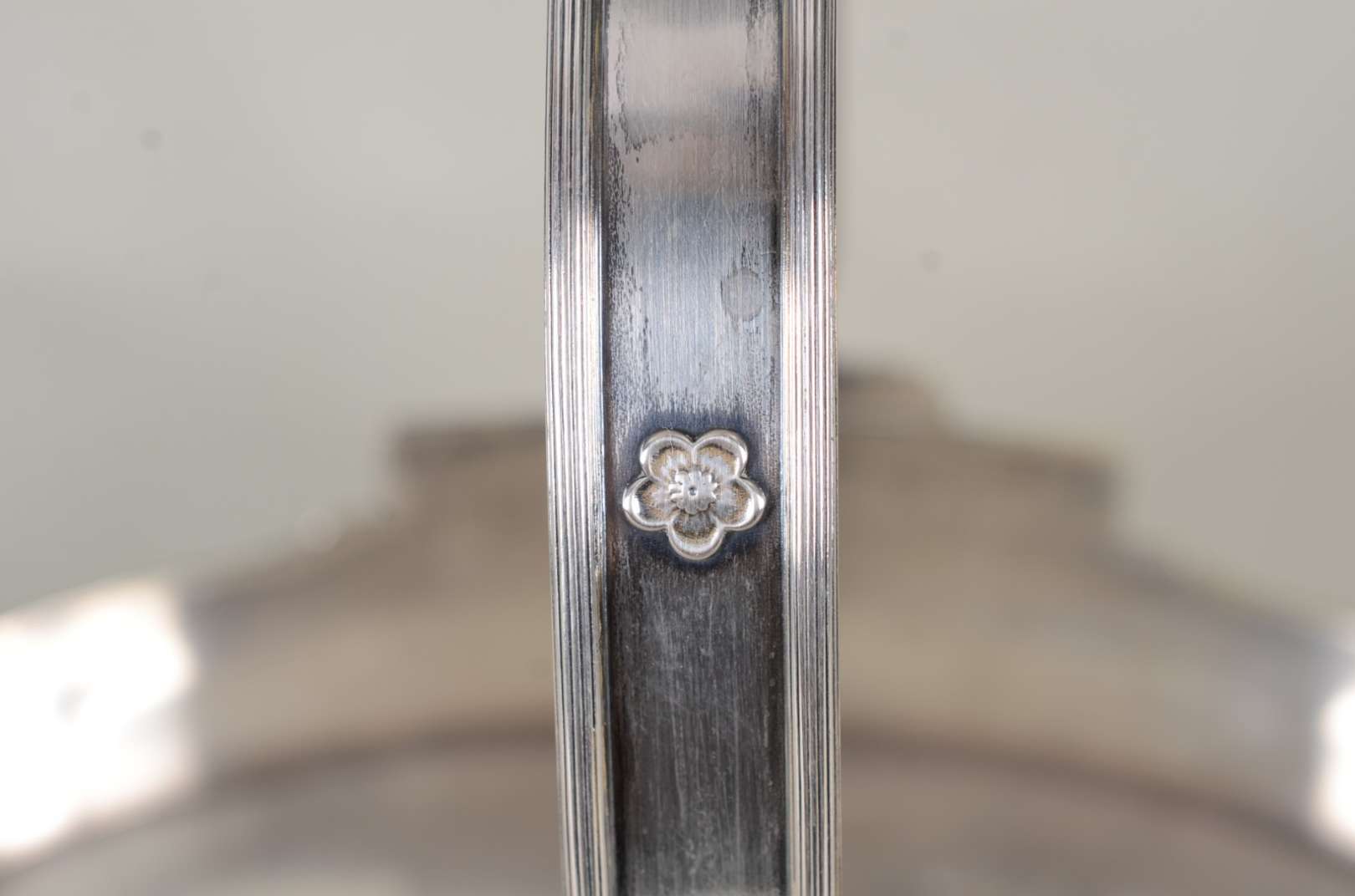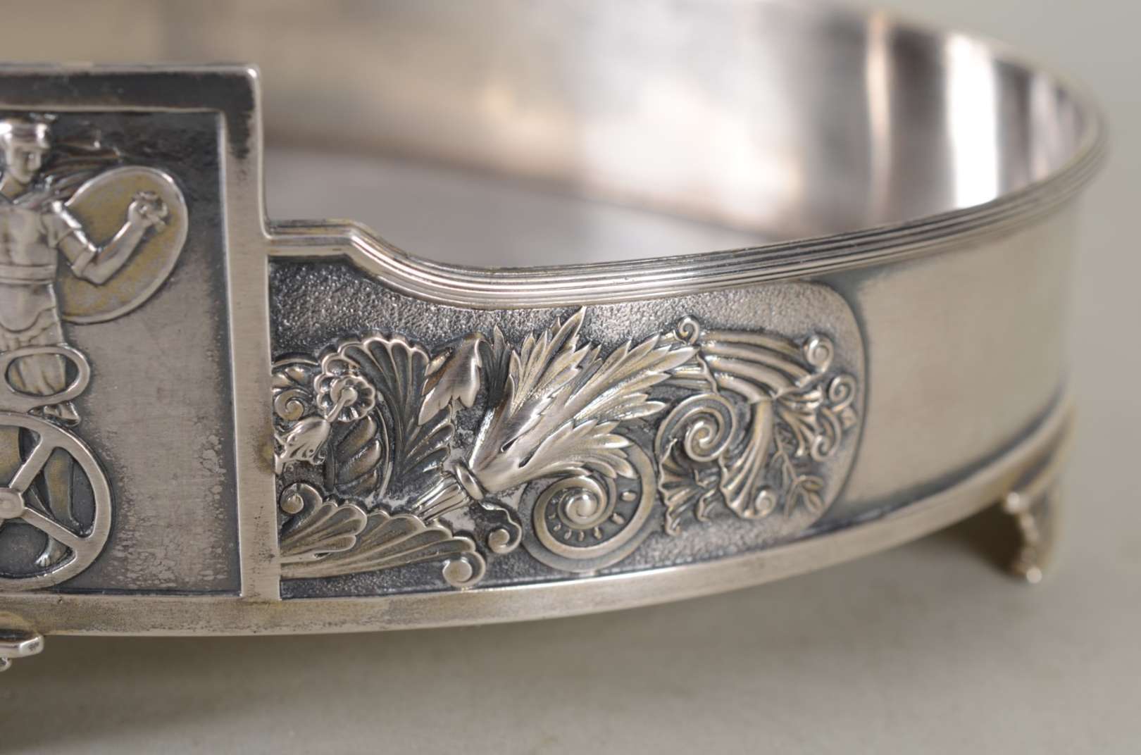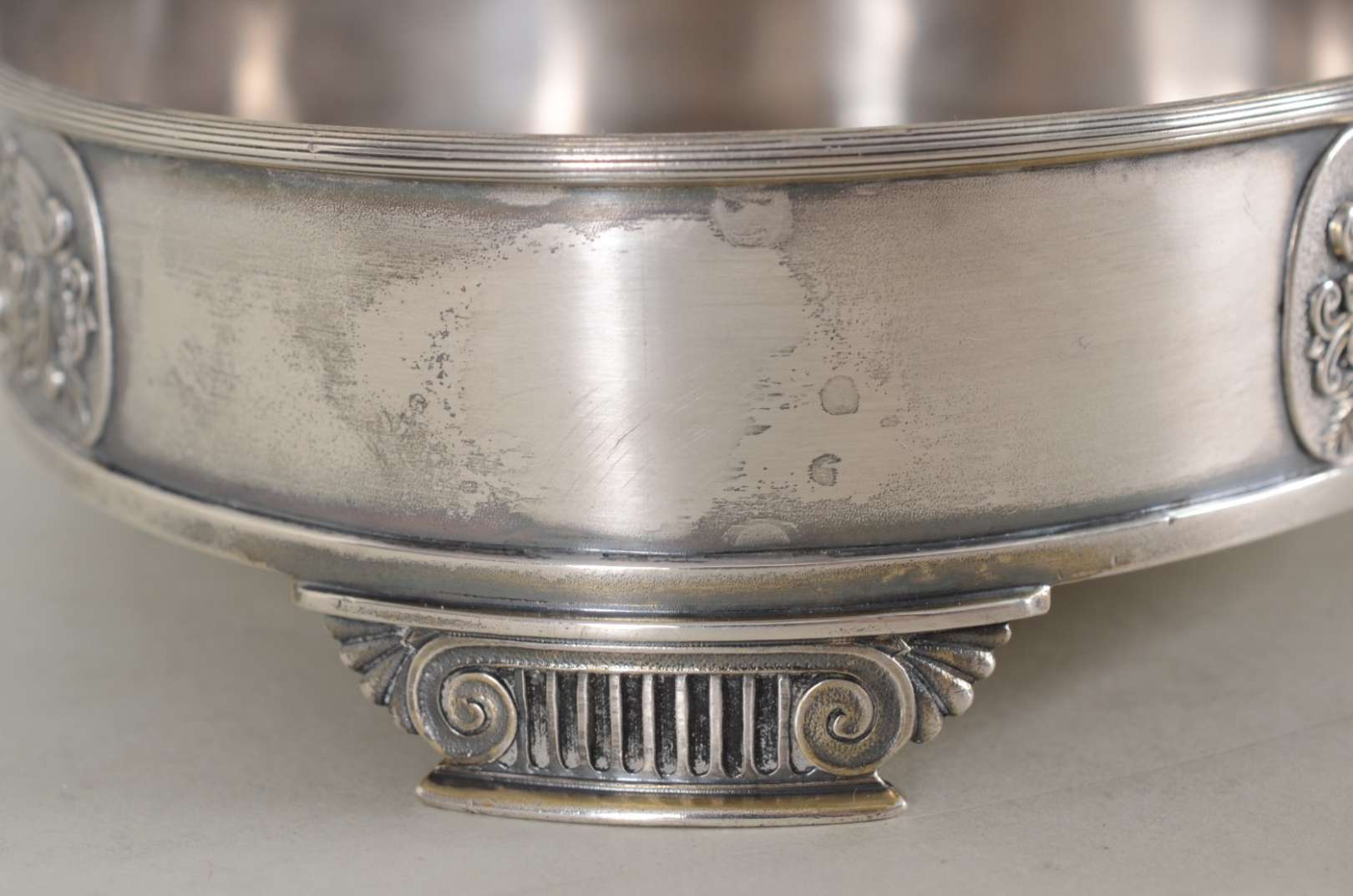 Cesta com alça de prata Sterling contrastada, lateral decorada com figuras em relevo. Peso da prata: 810 g. (Por motivos de segurança a peça não se encontra na loja)
