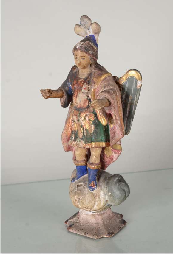 Nossa Senhora com menino - Antiga Imagem de madeira policromada e dourada. Coroa de metal solta. Pequenos desgastes.