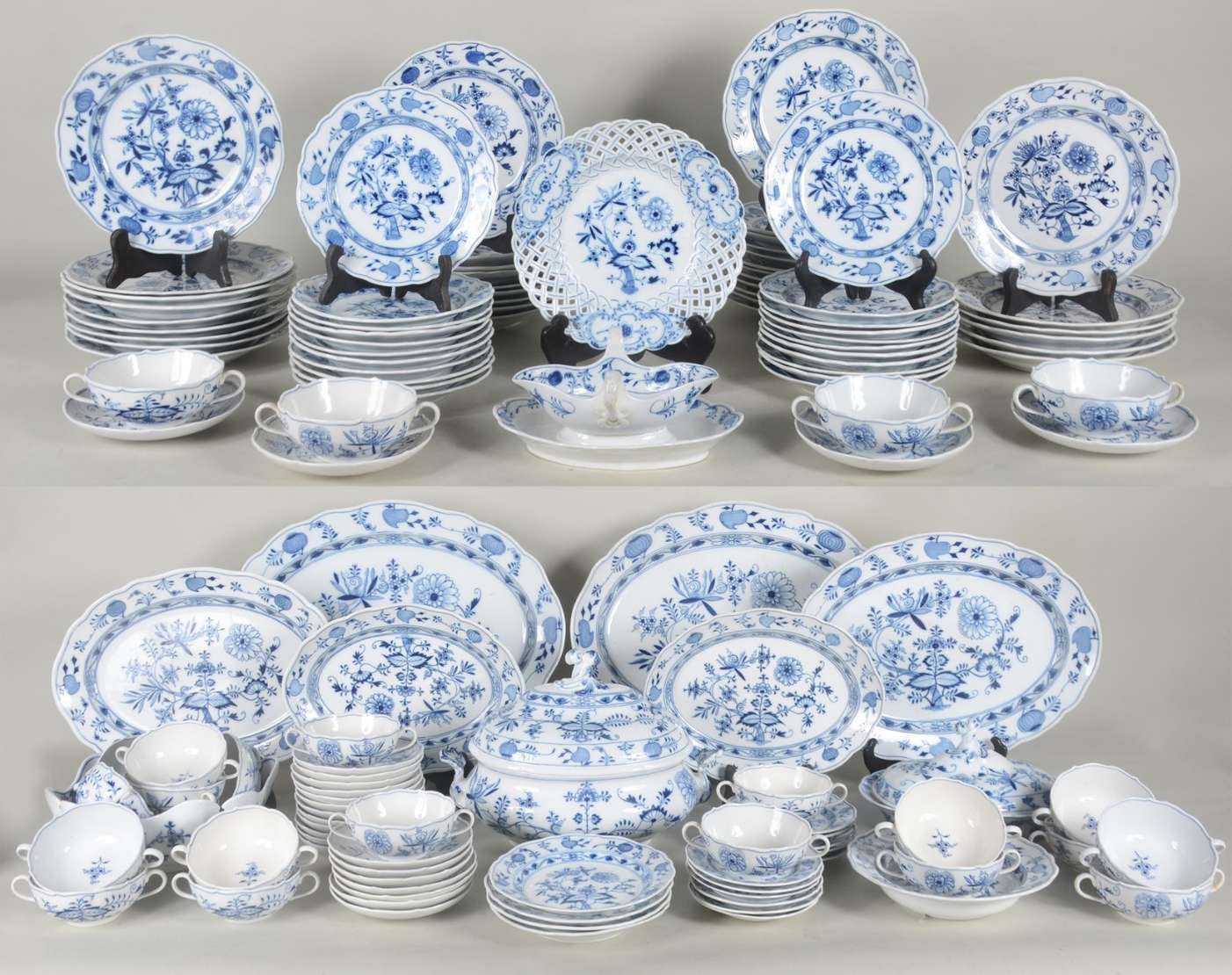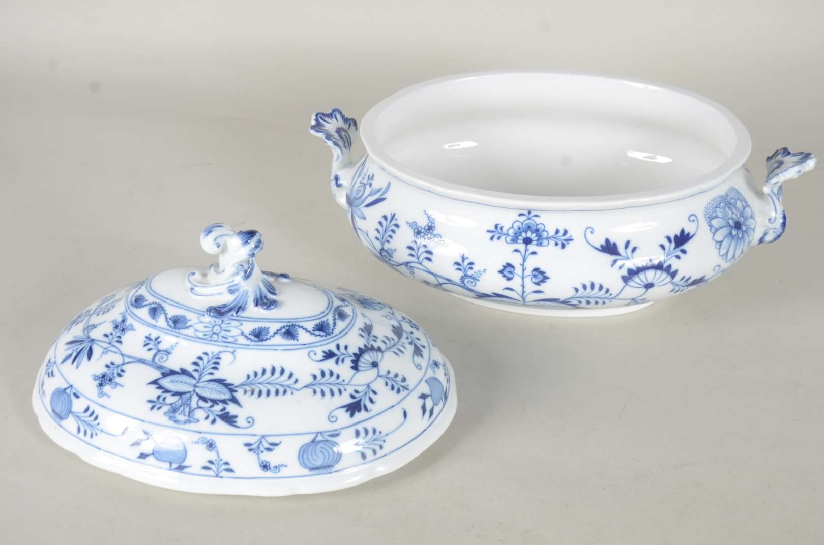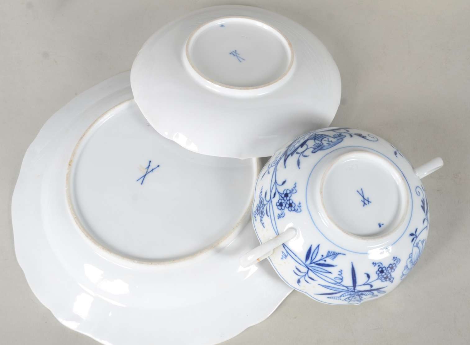Diversas peças, sendo: conjunto com 6 xícaras com pires de porcelana oriental com gueixa no fundo e sopeira de faiança.