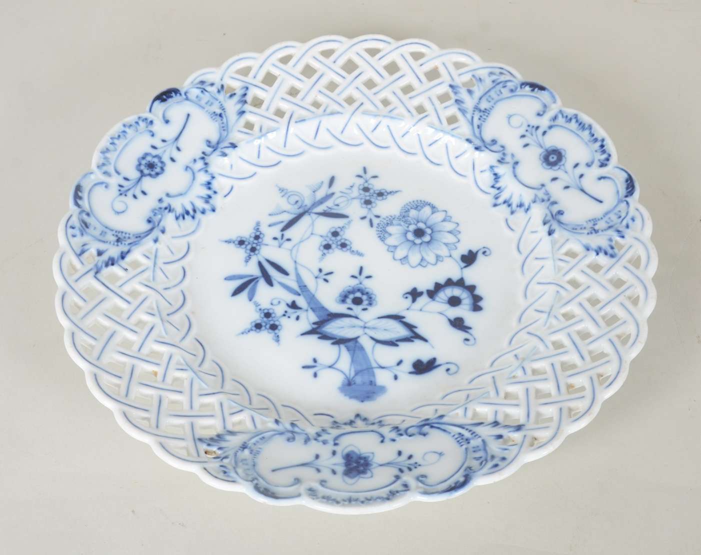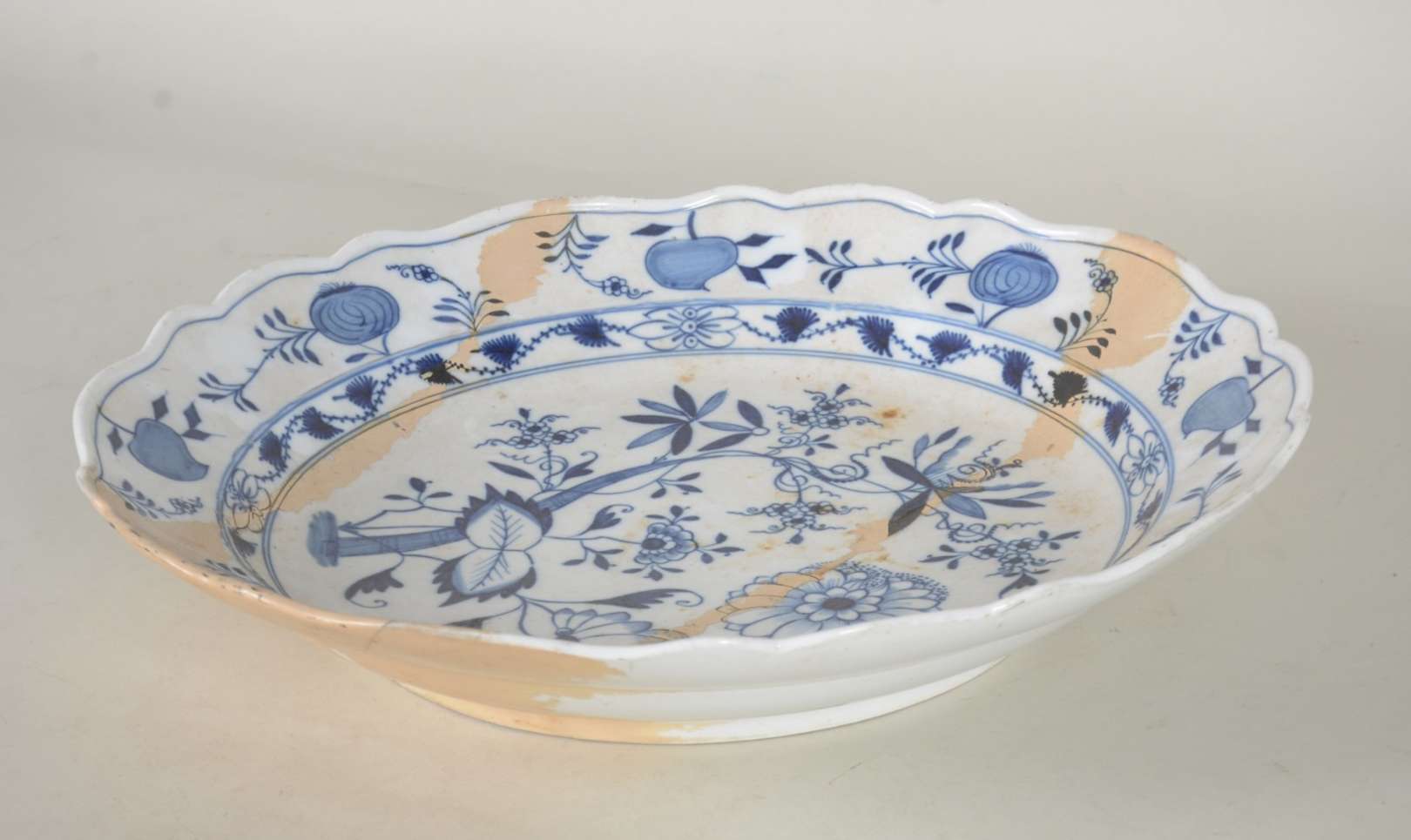 Base de fruteira de metal prateado com guirlandas e laçarotes em relevo. Desgastes.