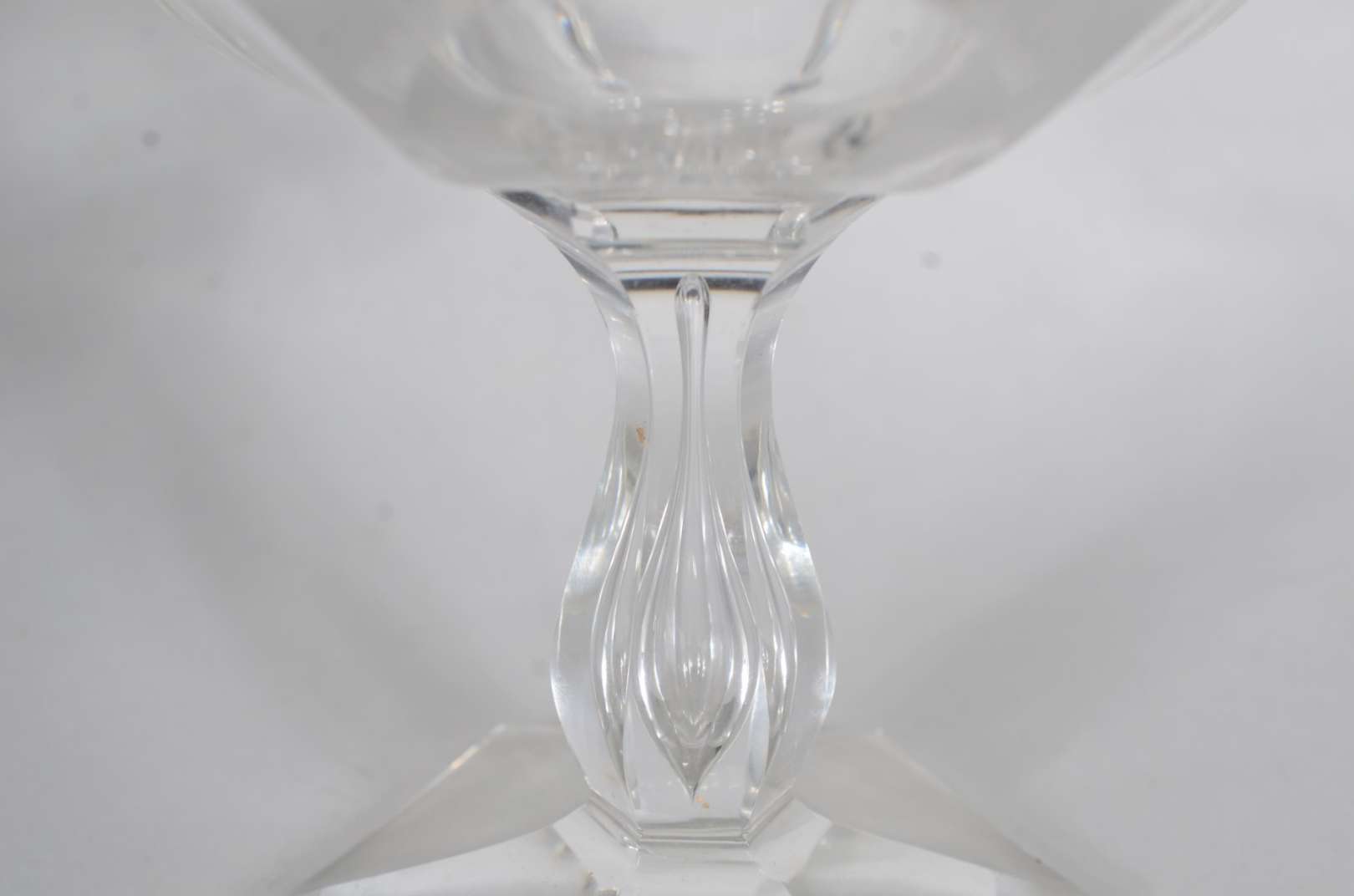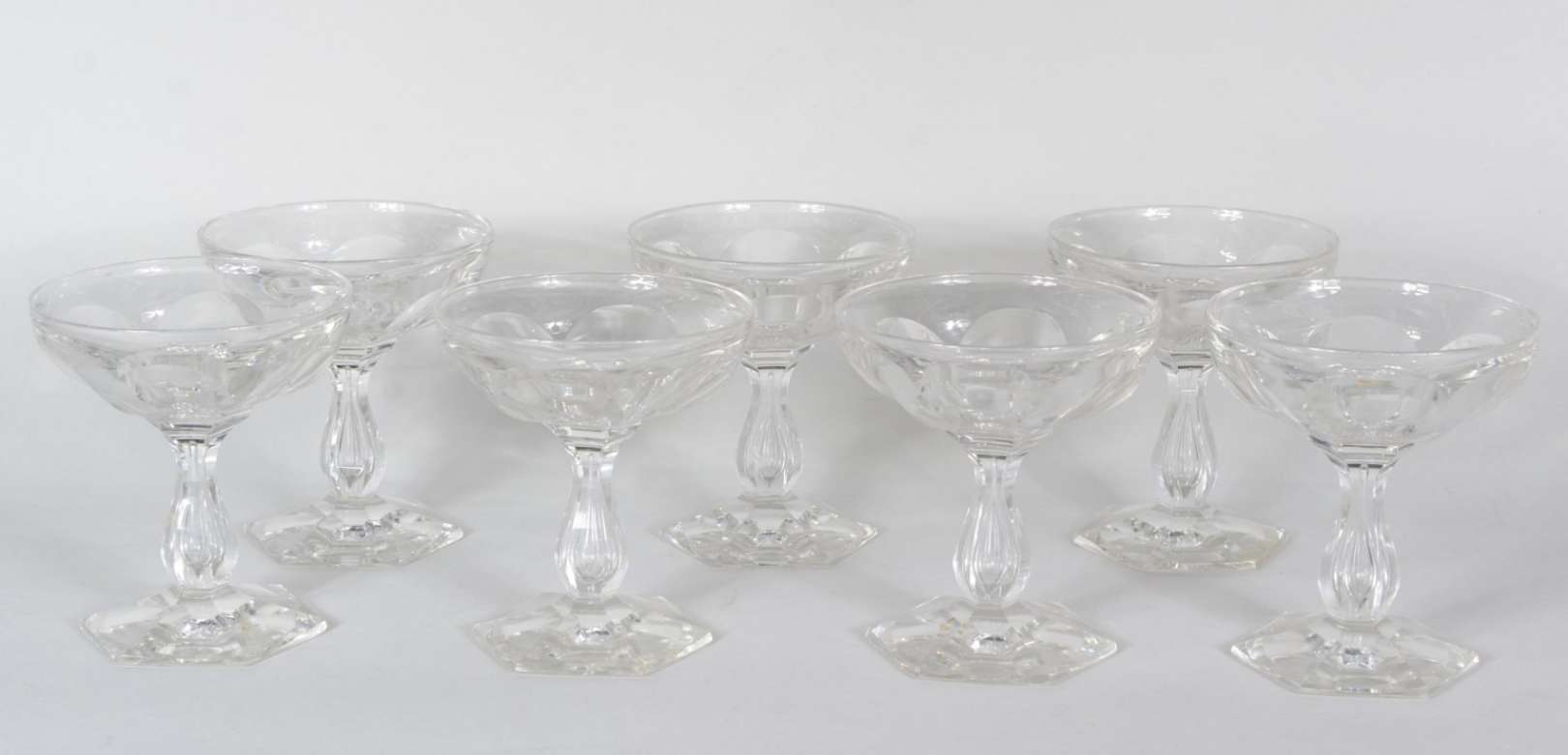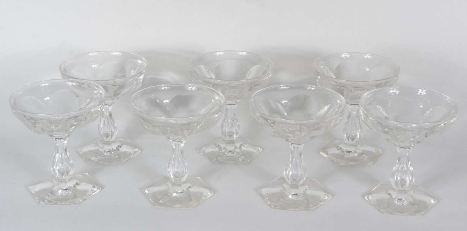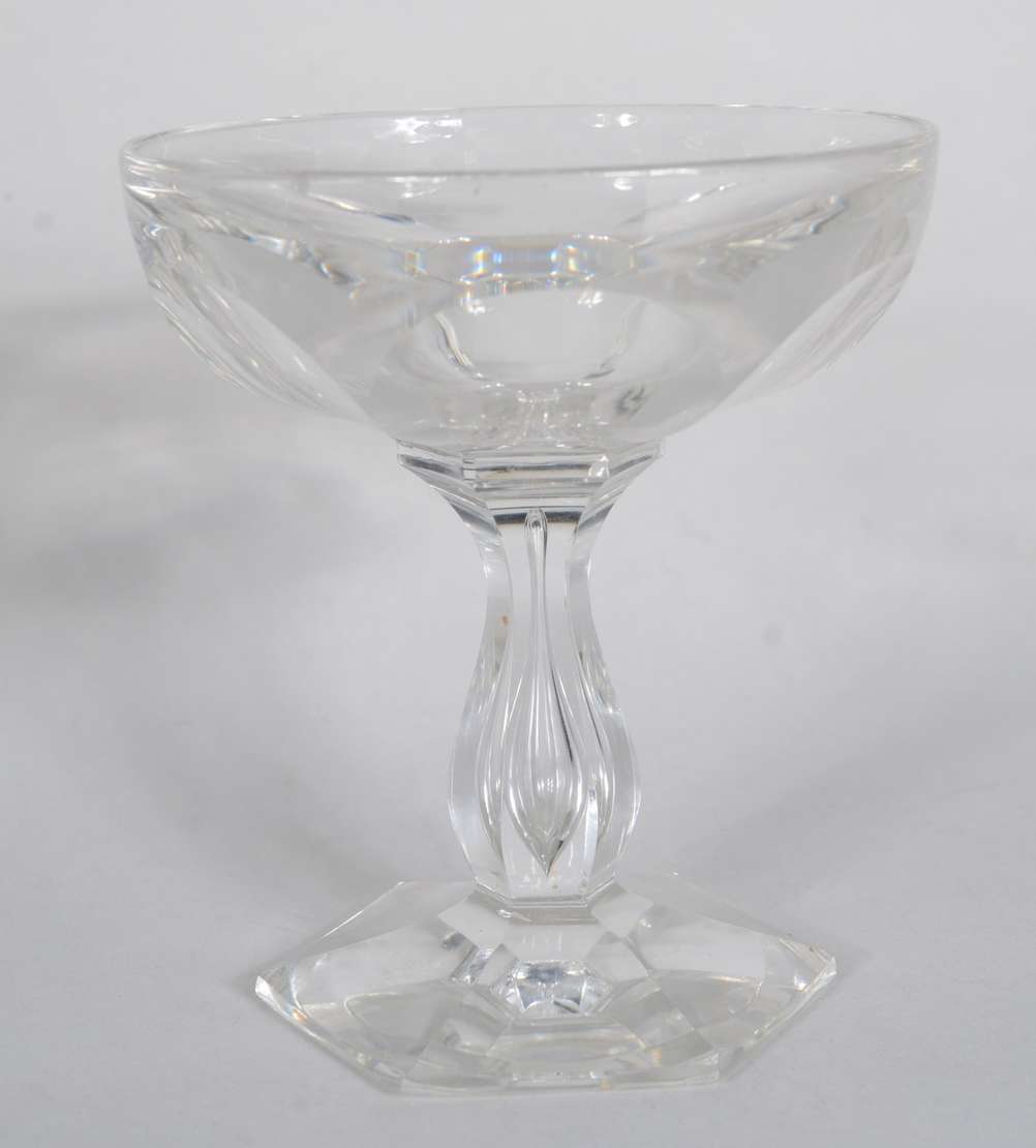 Conjunto com garrafa e seis taças para vinho de cristal doublé azul lapidado. Mínimo lascado na tampa;