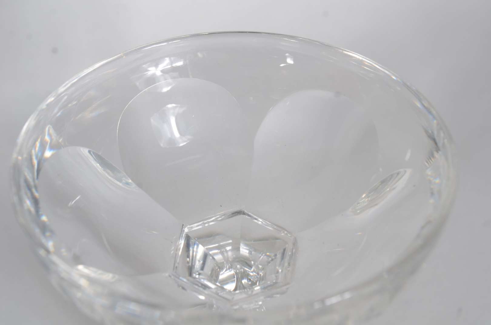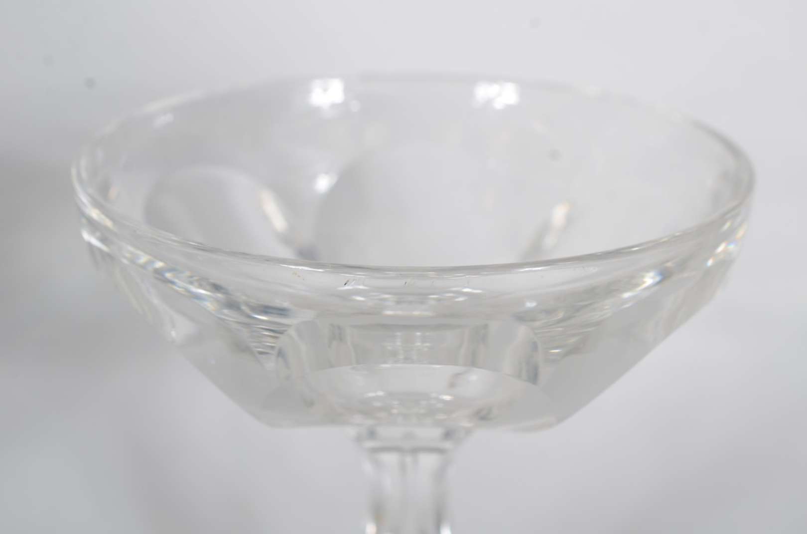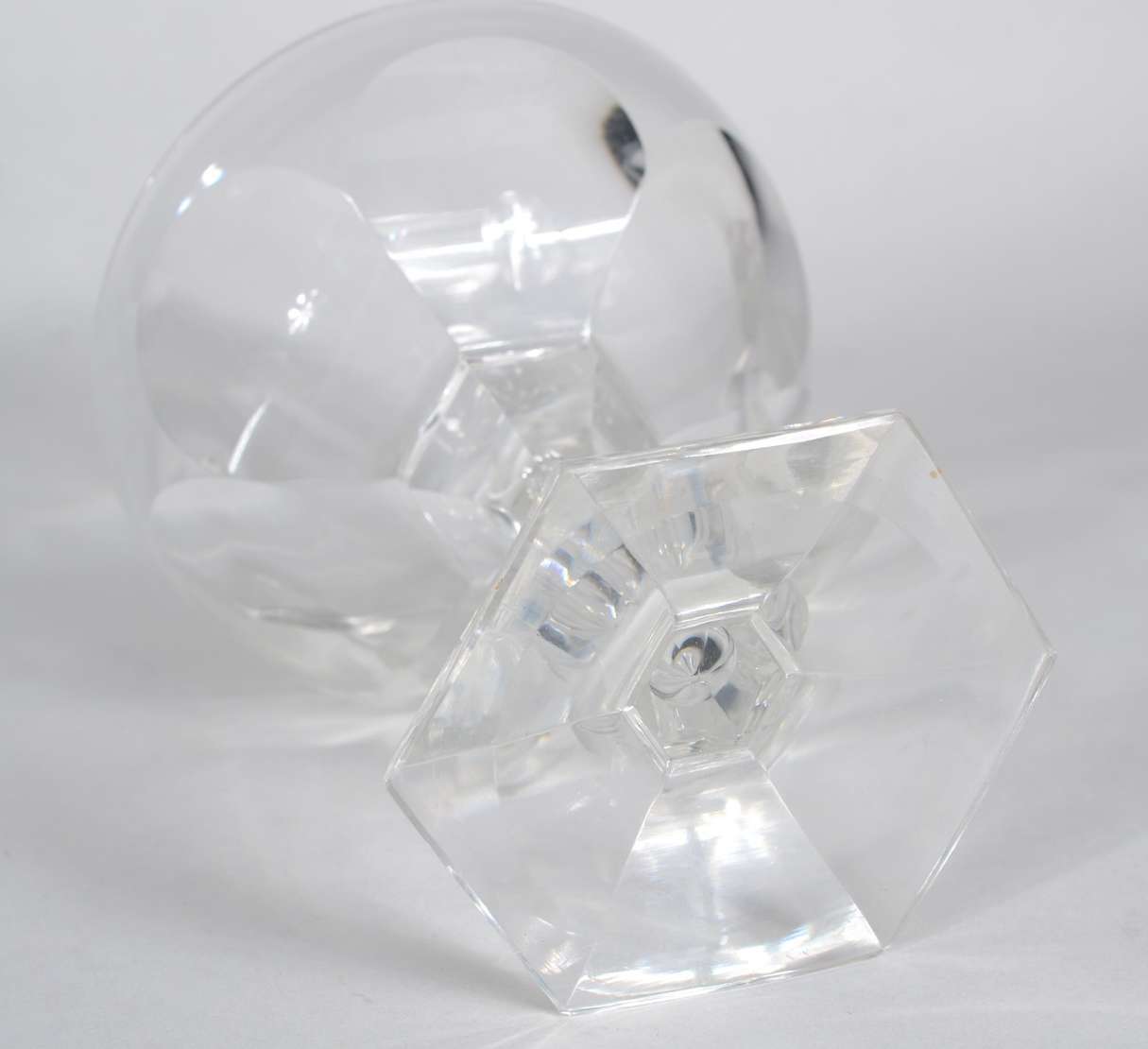 Conjunto com garrafa e seis taças para vinho de cristal doublé azul lapidado. Mínimo lascado na tampa;
