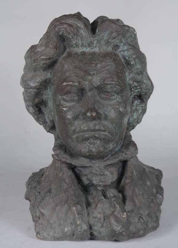 Busto masculino de bronze, assinado Irene.