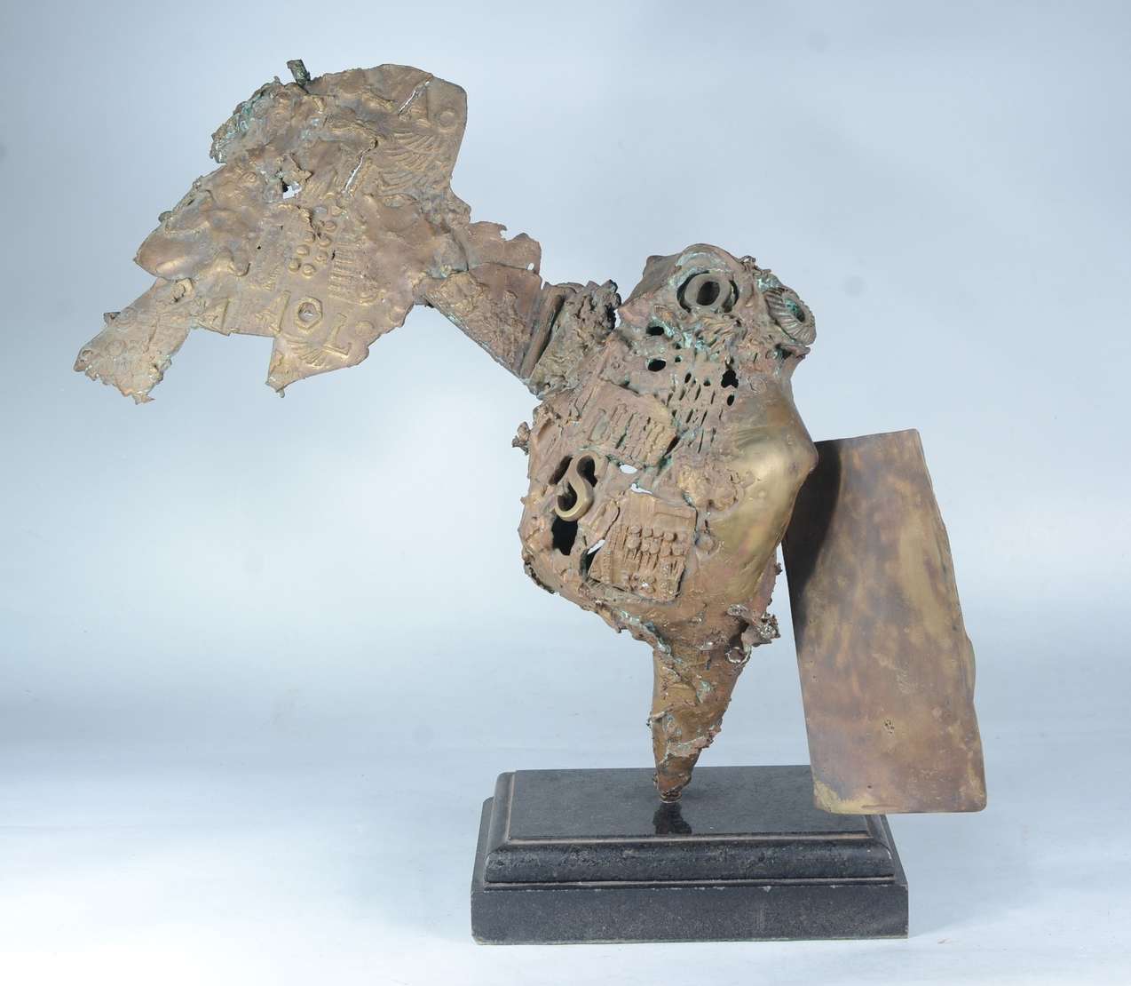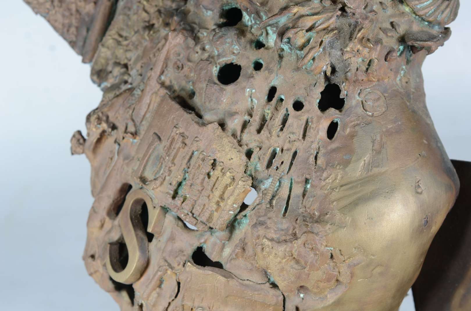 Par de candelabros de metal dourado para 3 velas cada, bases com figuras de soldados romanos, e braços decorados com ...