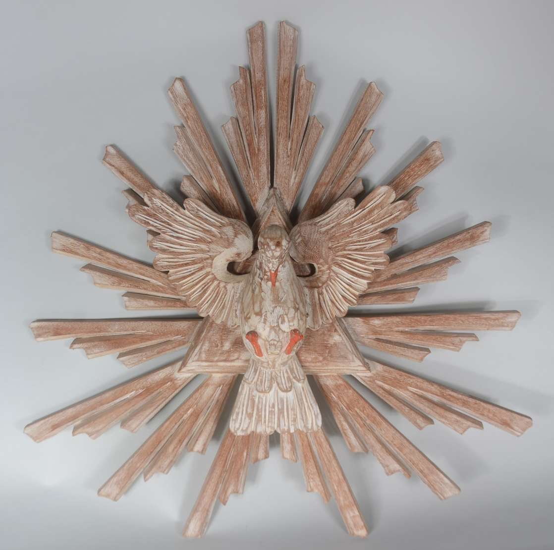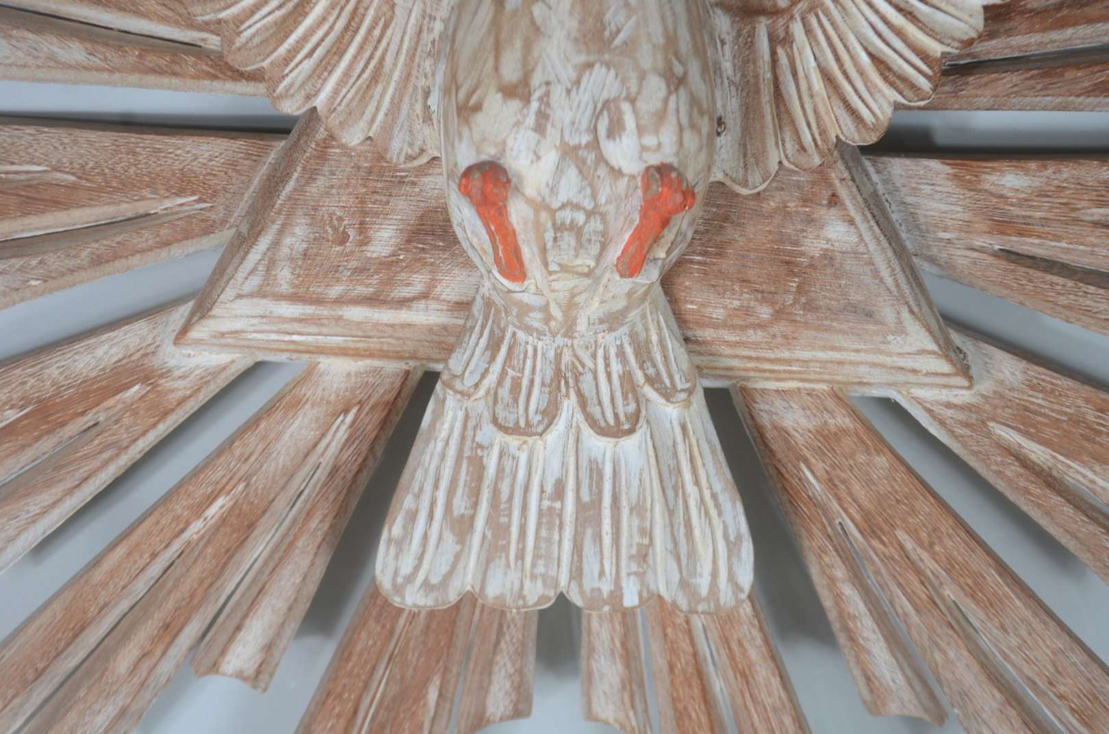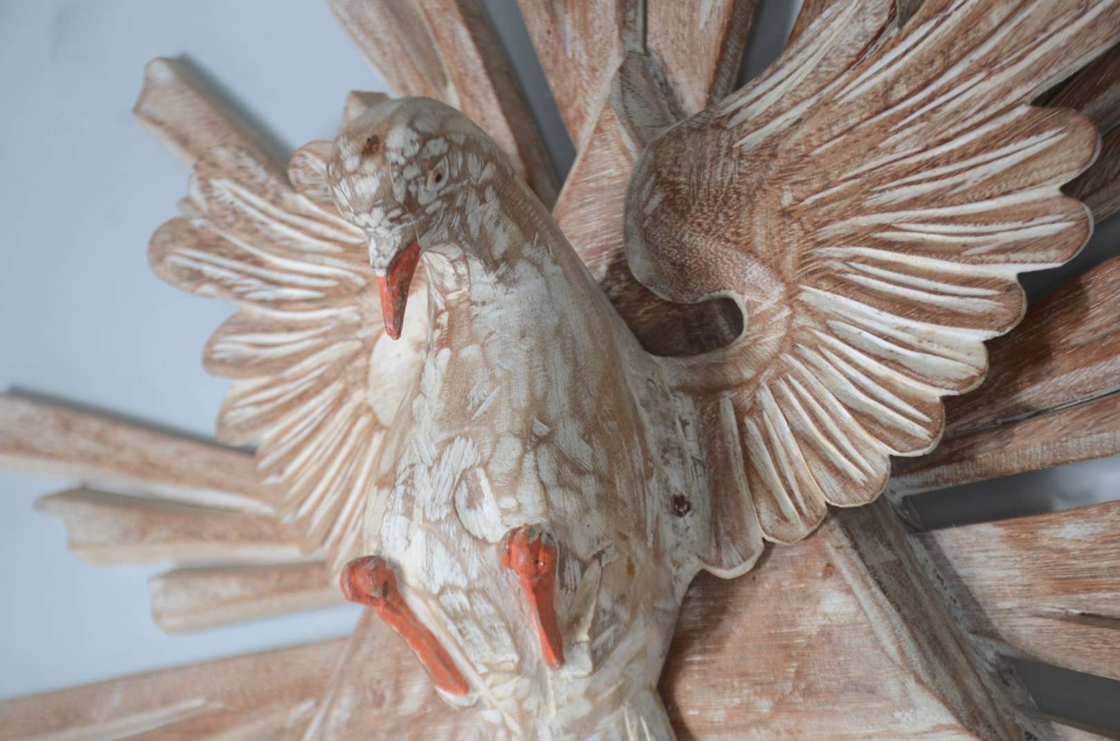 Grande crucifixo com figura de Cristo de madeira entalhada.