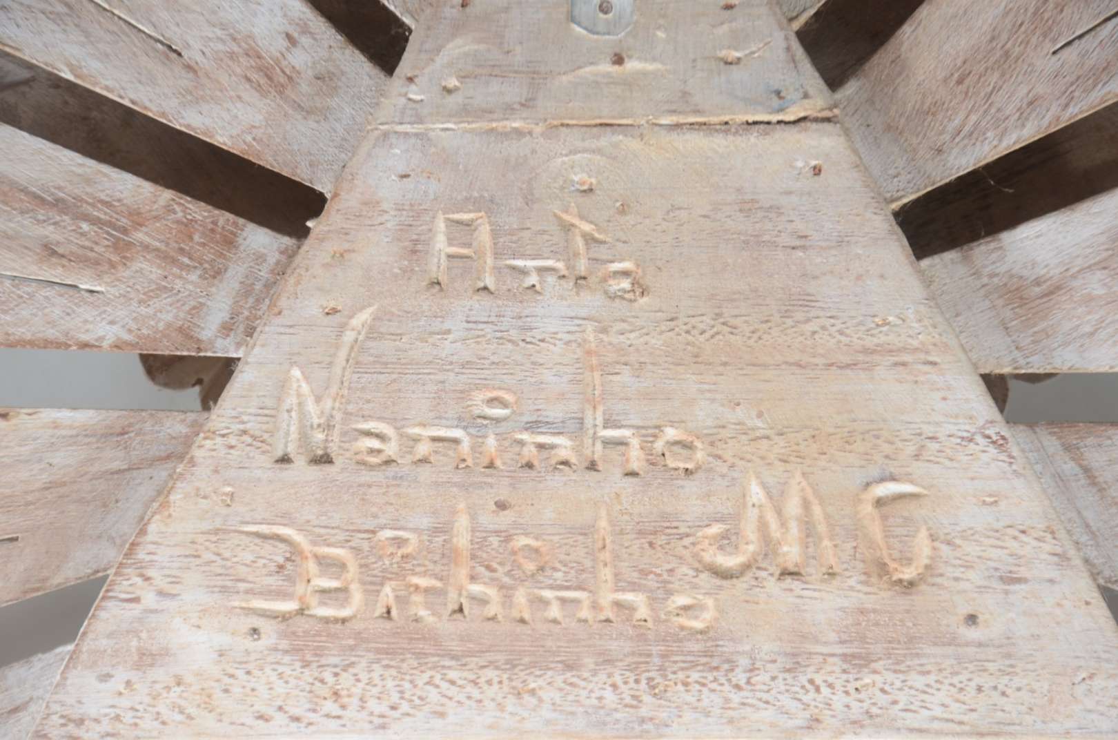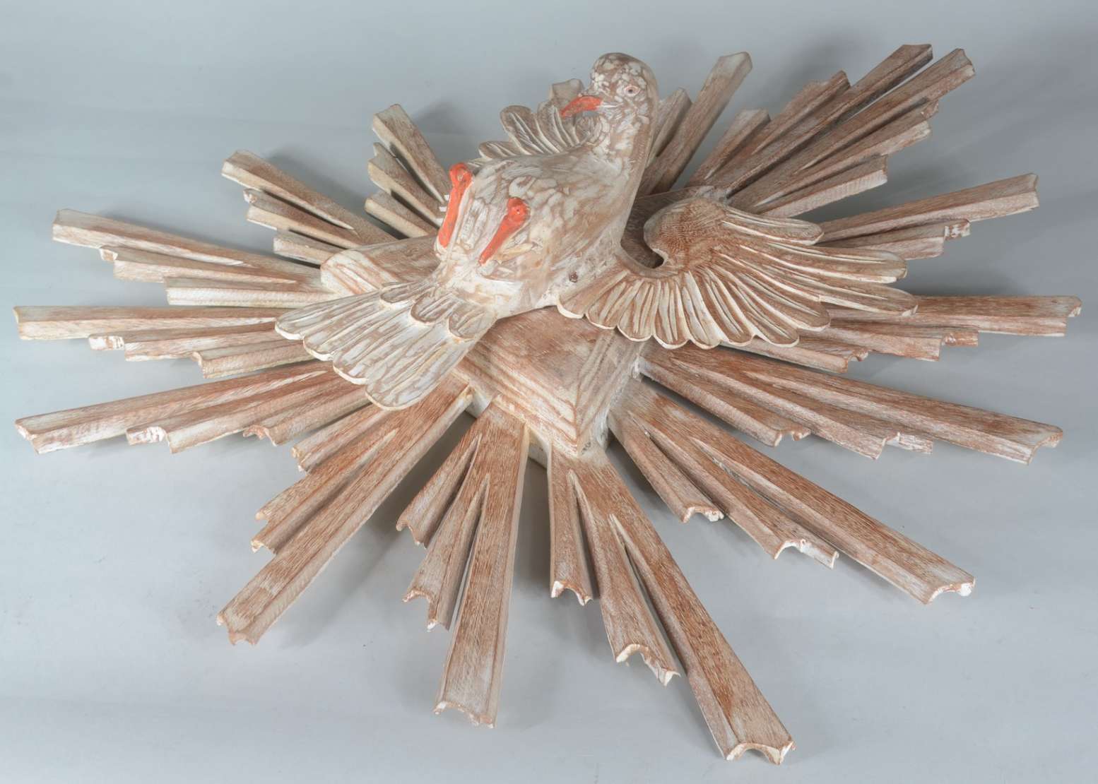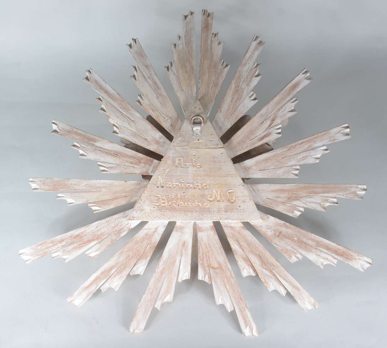 Grande crucifixo com figura de Cristo de madeira entalhada.