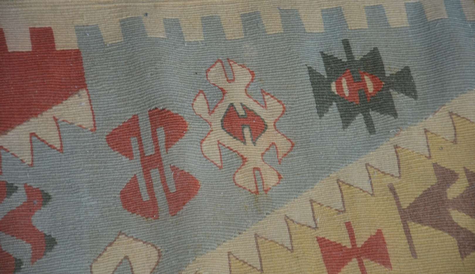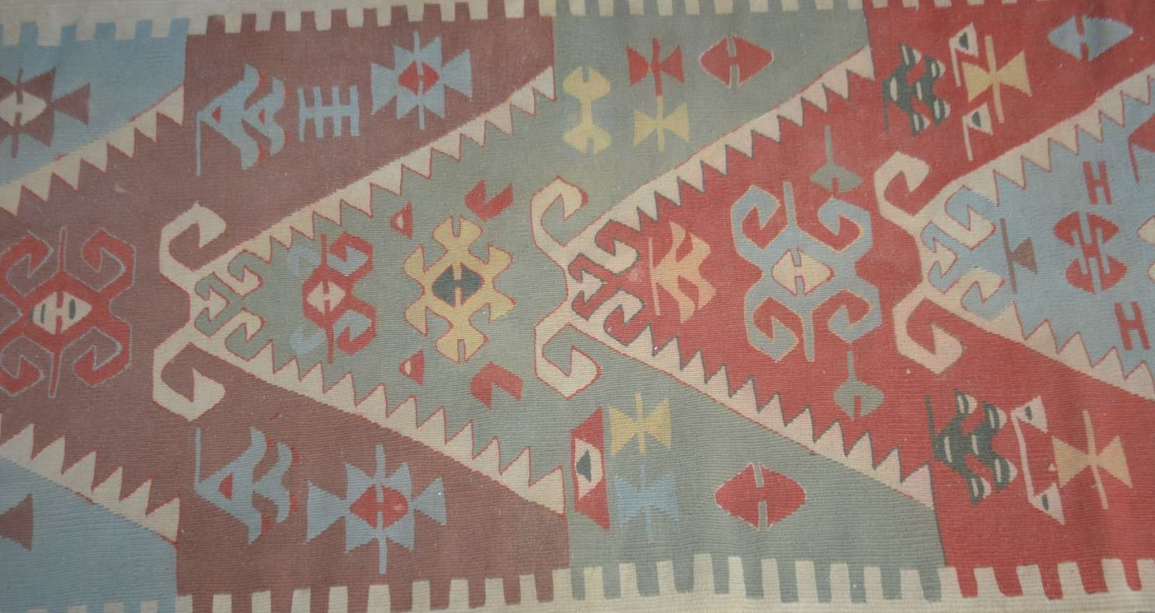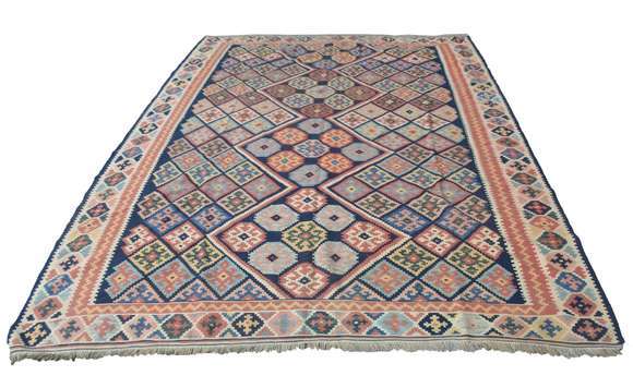 Conjunto com garrafa e seis taças para vinho de cristal doublé azul lapidado. Mínimo lascado na tampa;