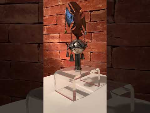 Cinzeiro de prata de lei para braço de sofá com brasão do Império e moedas.