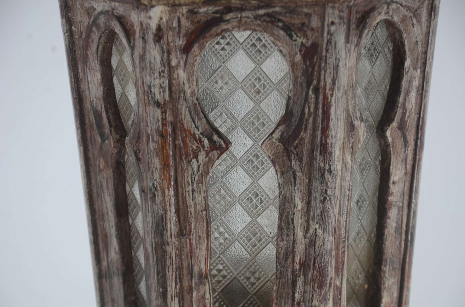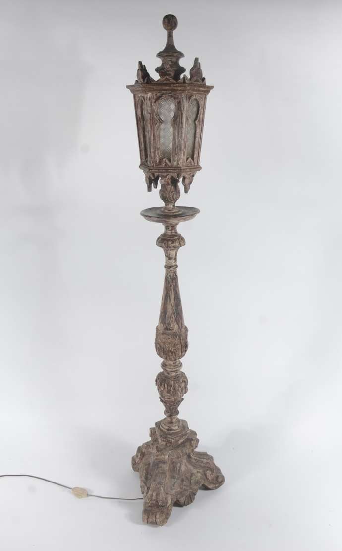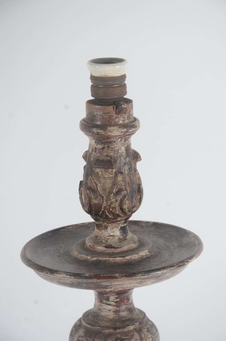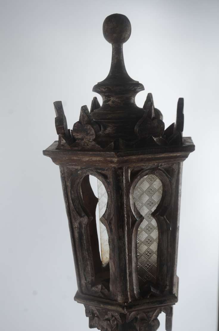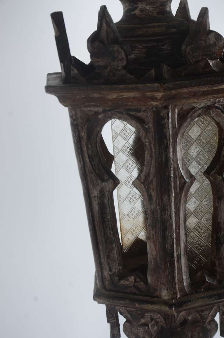 Par de abatjoures tocheiros de madeira patinada, cúpulas na cor bege.