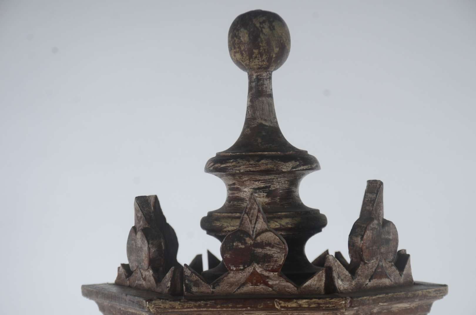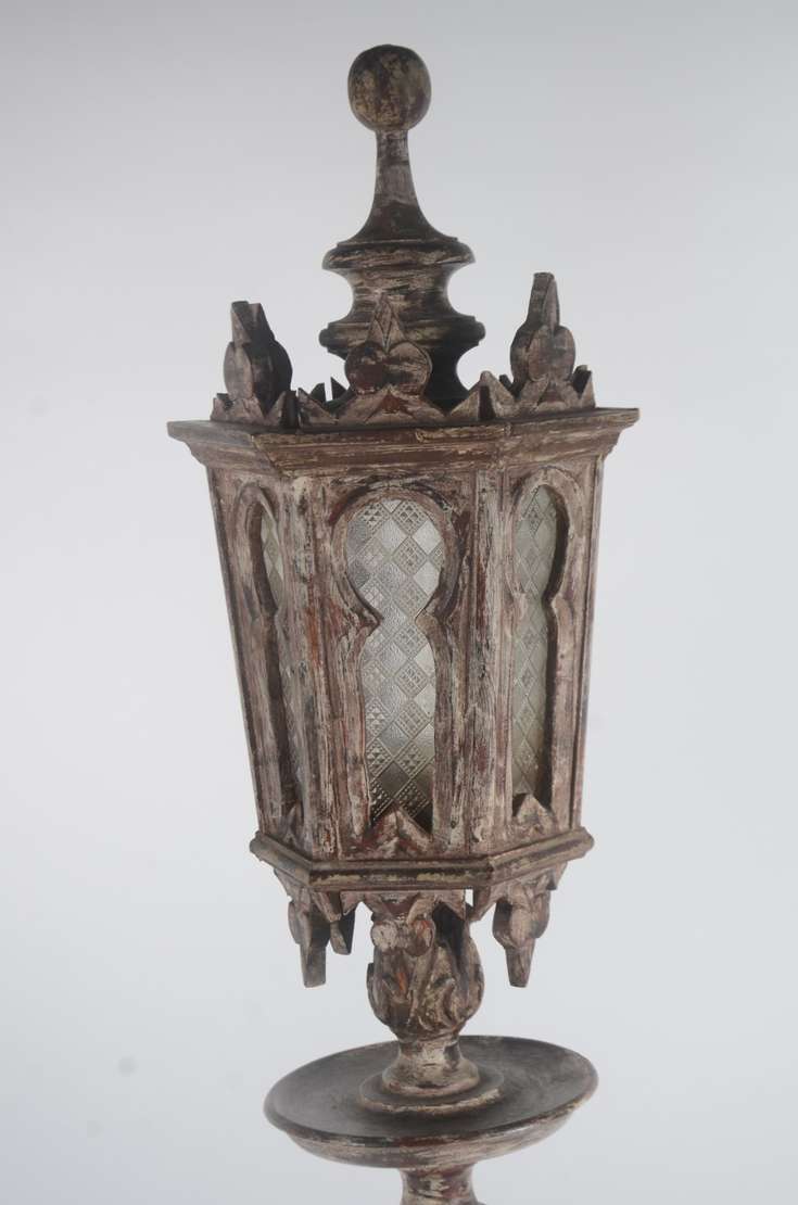 Par de abatjoures de metal dourado com cúpulas. Um deles sem a fiação..