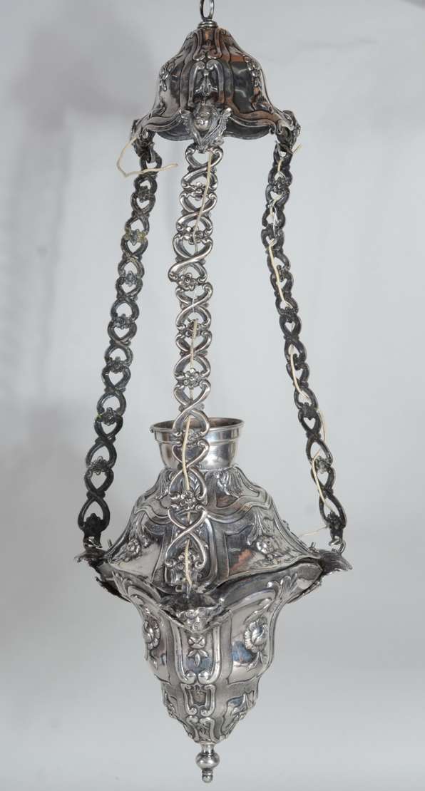 Antigo lampião de rua em cobre.