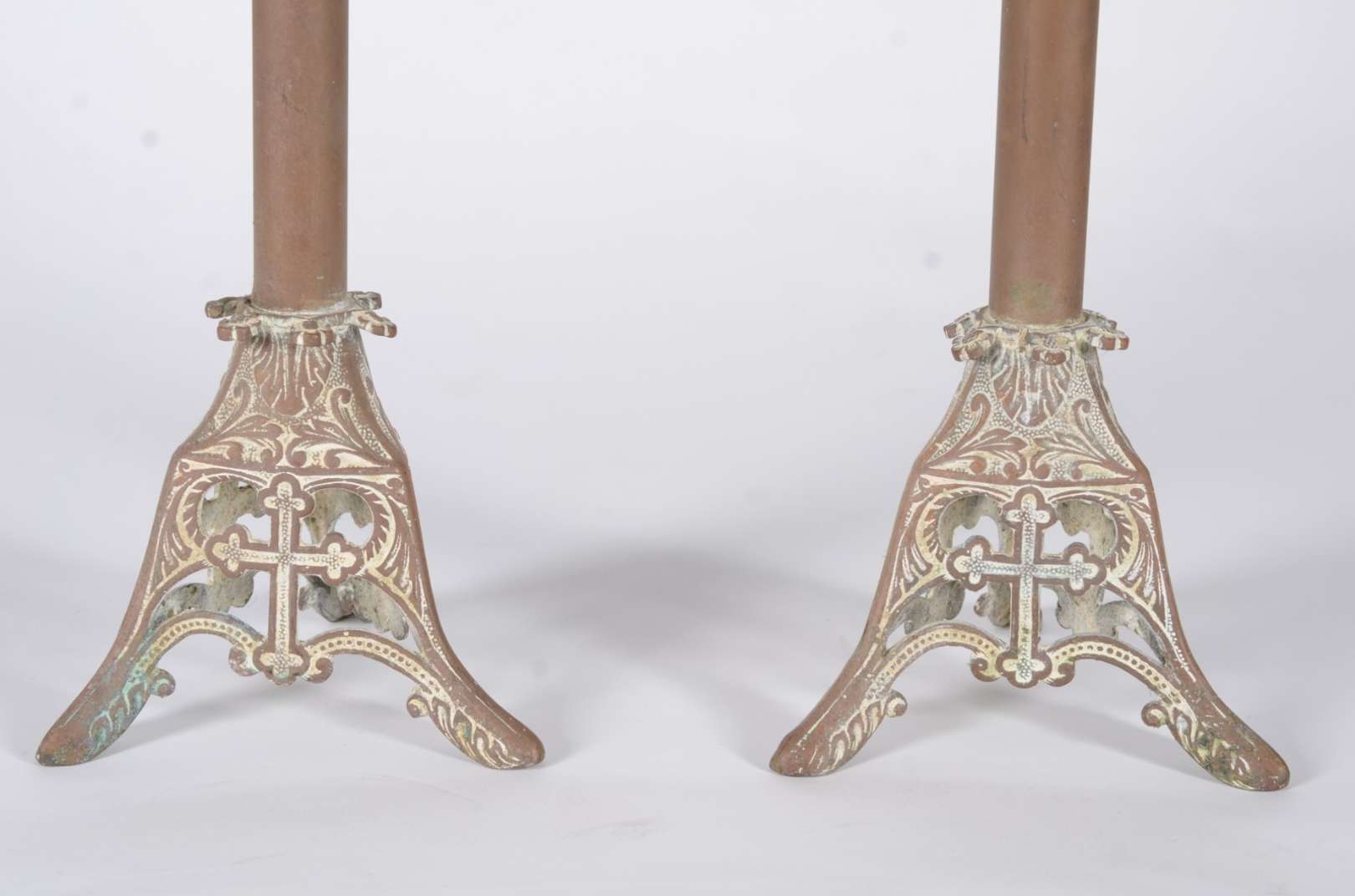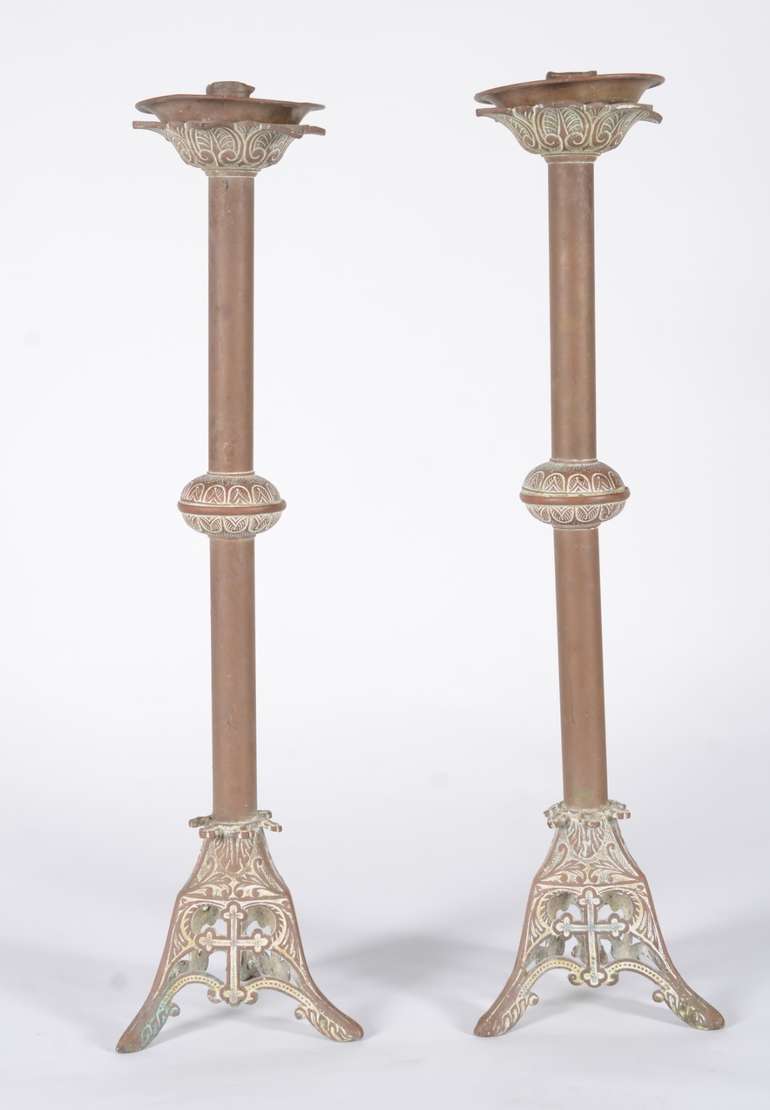 Par de abatjoures de metal dourado com cúpulas. Um deles sem a fiação..