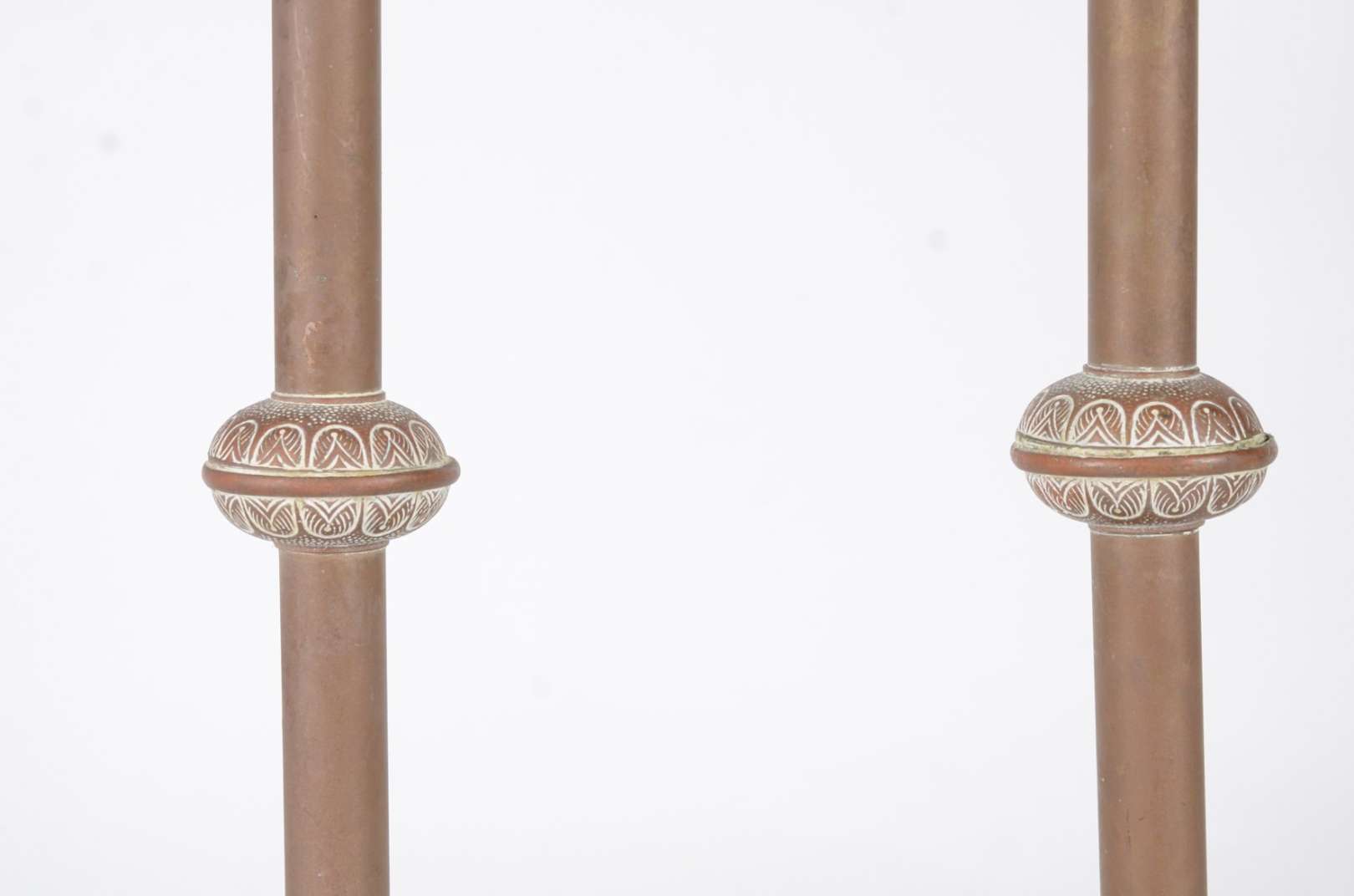 Par de castiçais de prata, contraste 833 mls. Peso total com enchimento: 1070 g. (Por motivos de segurança a peça nã...