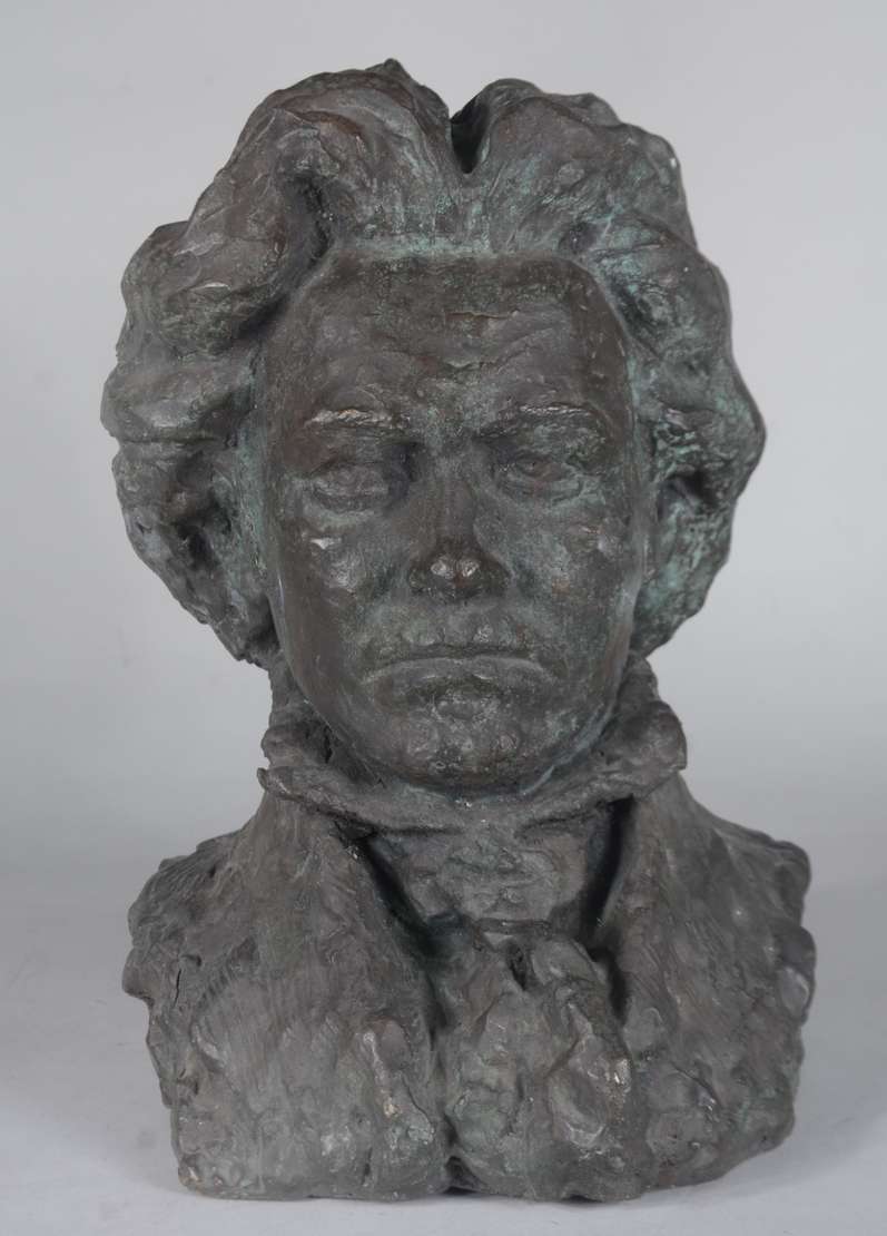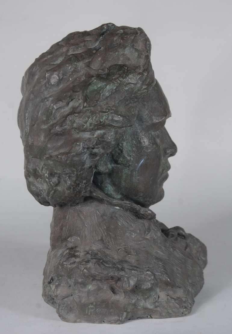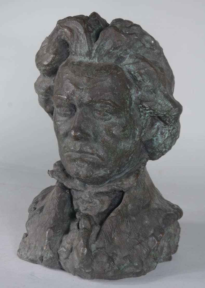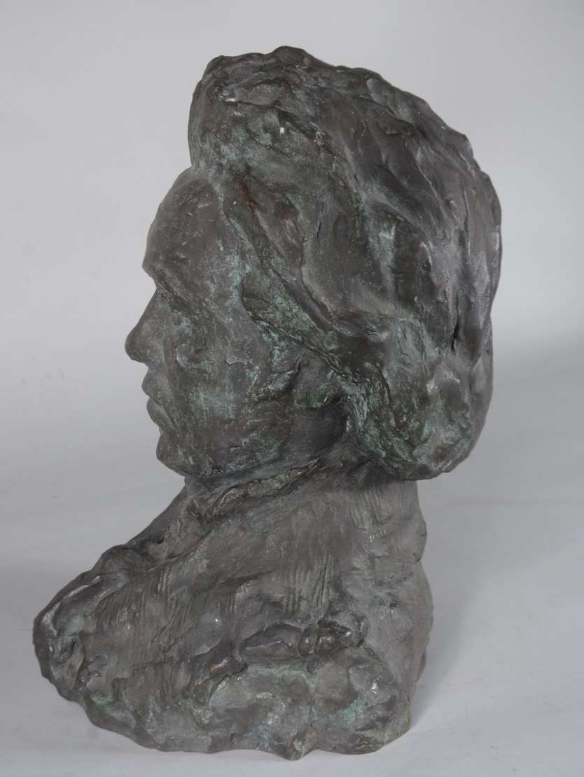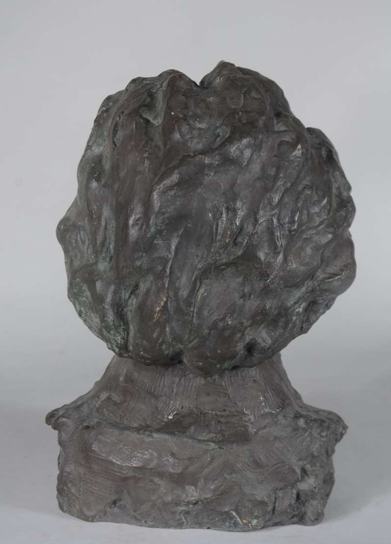 Escultura de bronze, base de madeira. Assinado B.G.