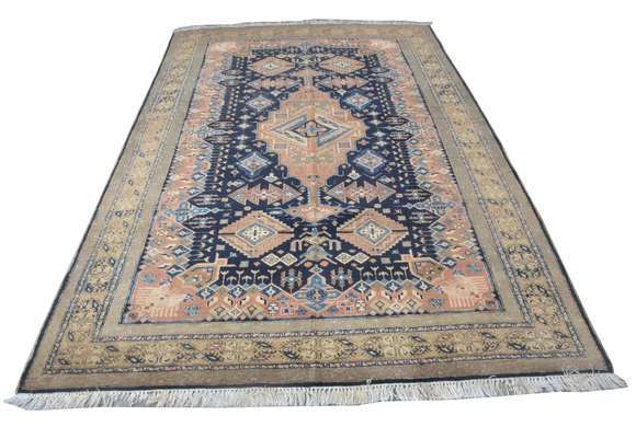 Conjunto com garrafa e seis taças para vinho de cristal doublé azul lapidado. Mínimo lascado na tampa;
