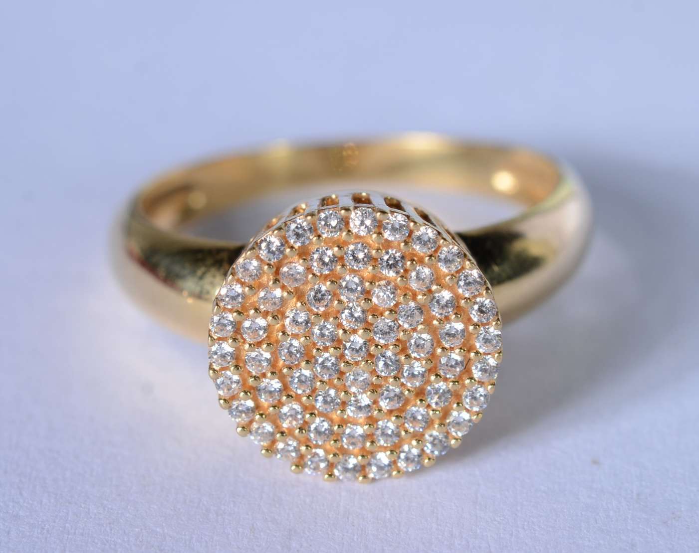 Anel de ouro 18 k., com brilhante e 3 perolas, aro 15. (Por motivos de segurança a peça não se encontra na loja).