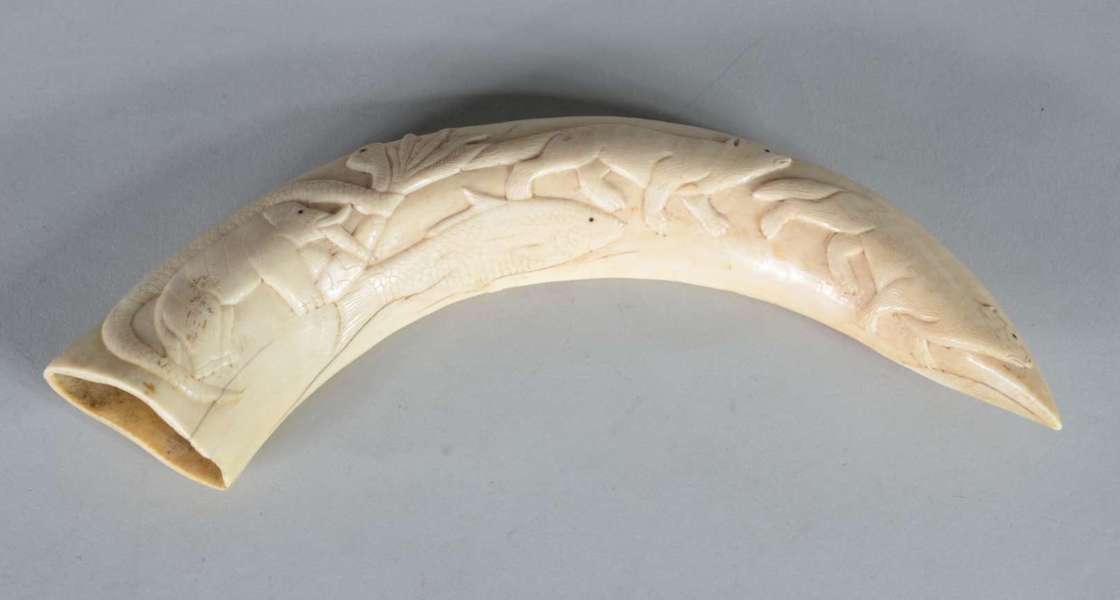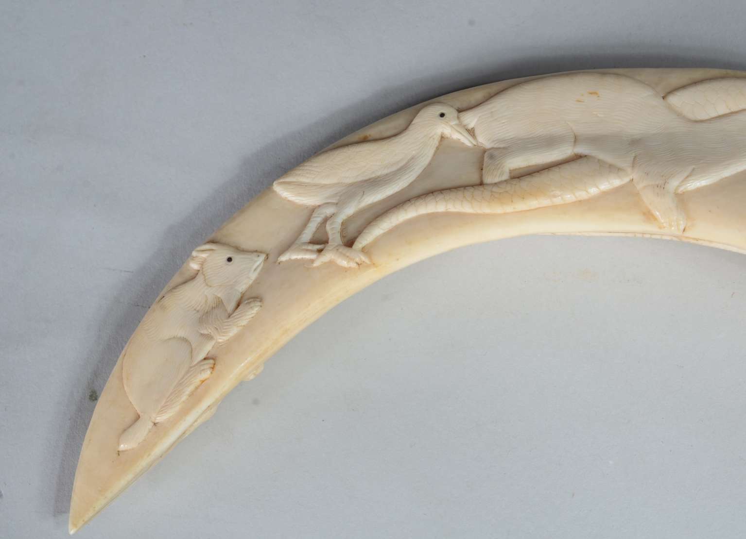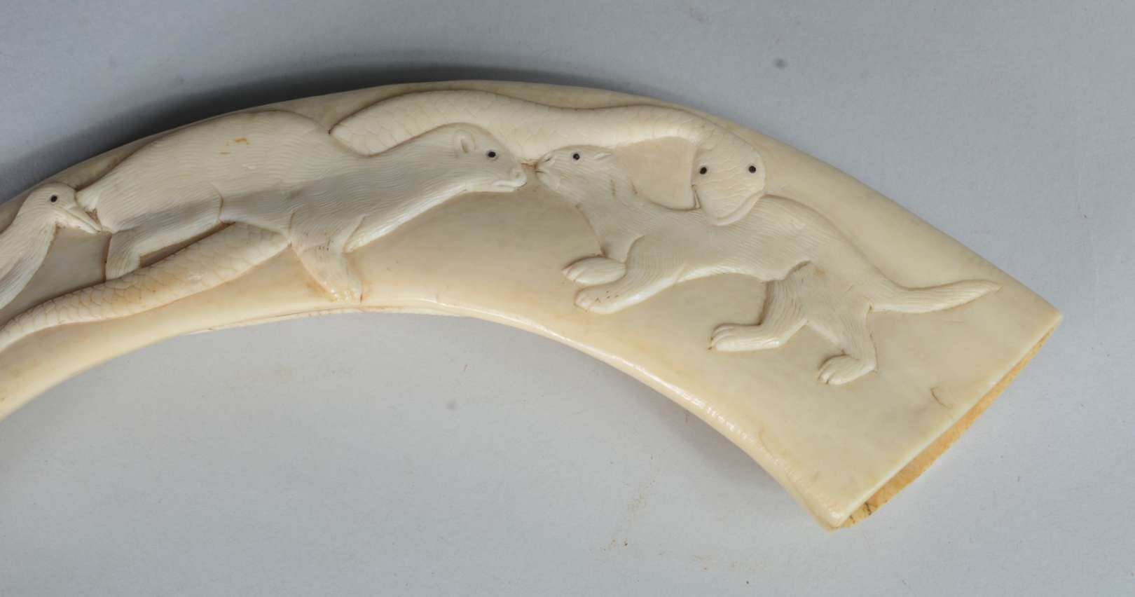 Três esculturas de madeira entalhada, sendo: Placa com rosto de jovem, assinada B.F.Heise, 1945; Figura de homem agac...