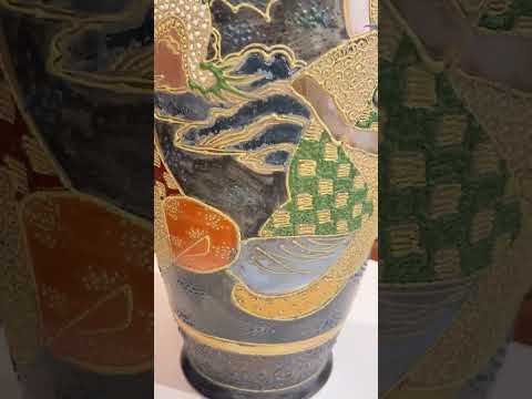 Vaso de porcelana oriental com figuras típicas em relevo.