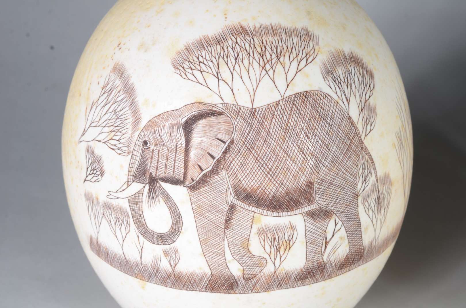 Escultura de bronze representando elefante com relógio globo de vidro, base de madeira (com cupim). Quebrado.