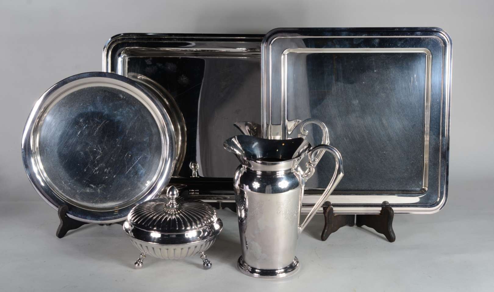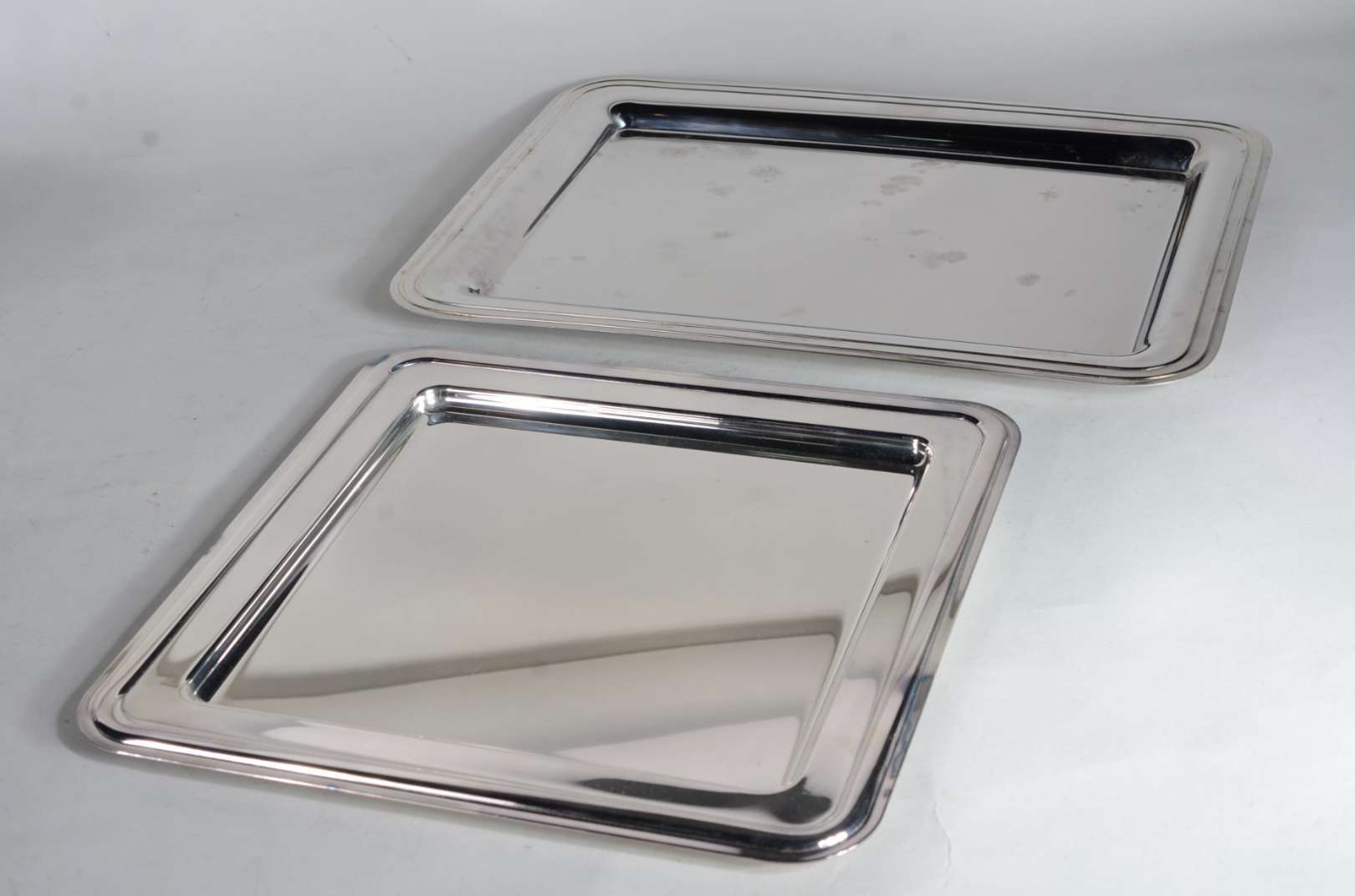 Tinteiro de metal prateado com 2 recipientes para tinta.