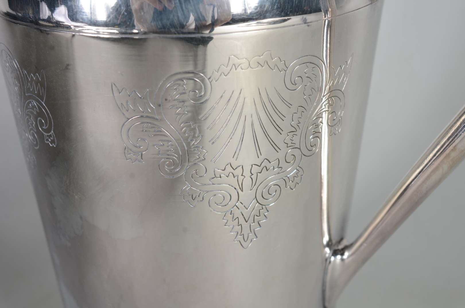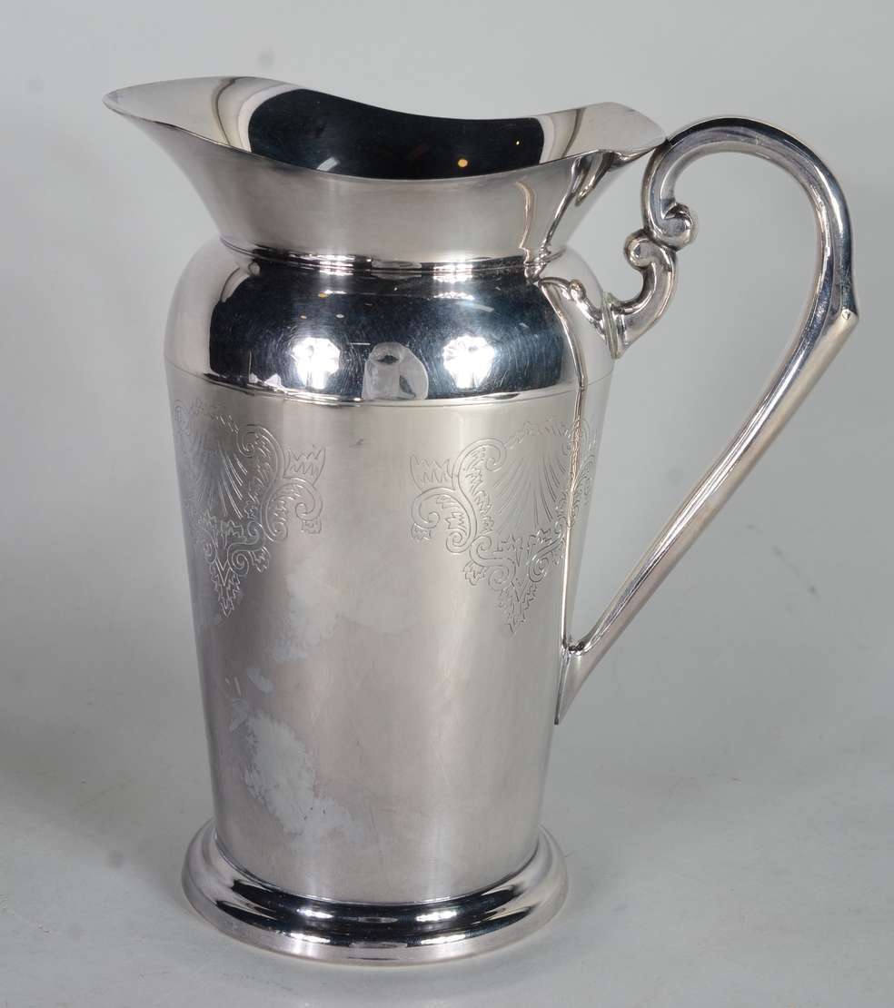 Duas peças, sendo: vaso de vidro azul e jarra com alça de metal.