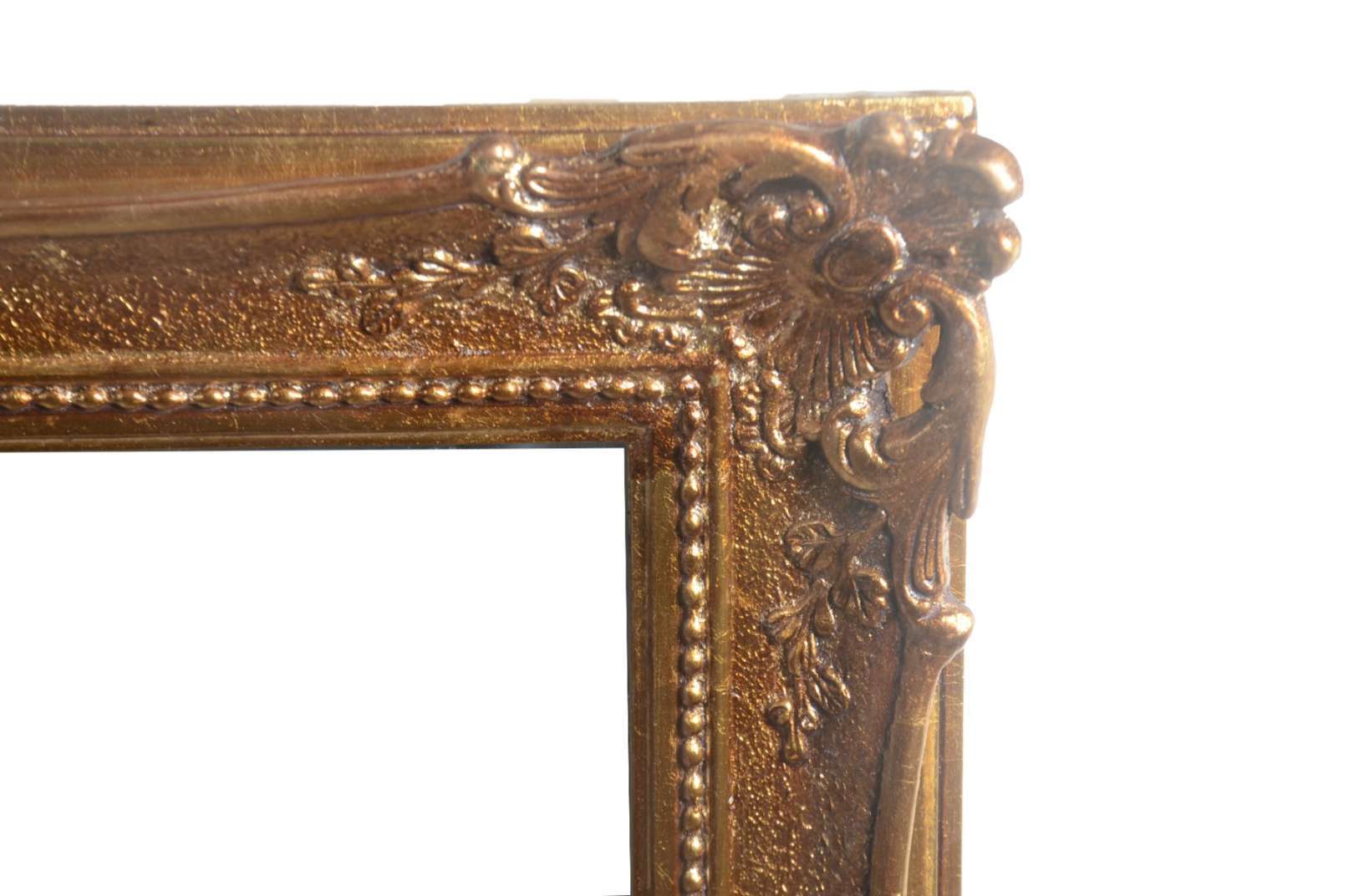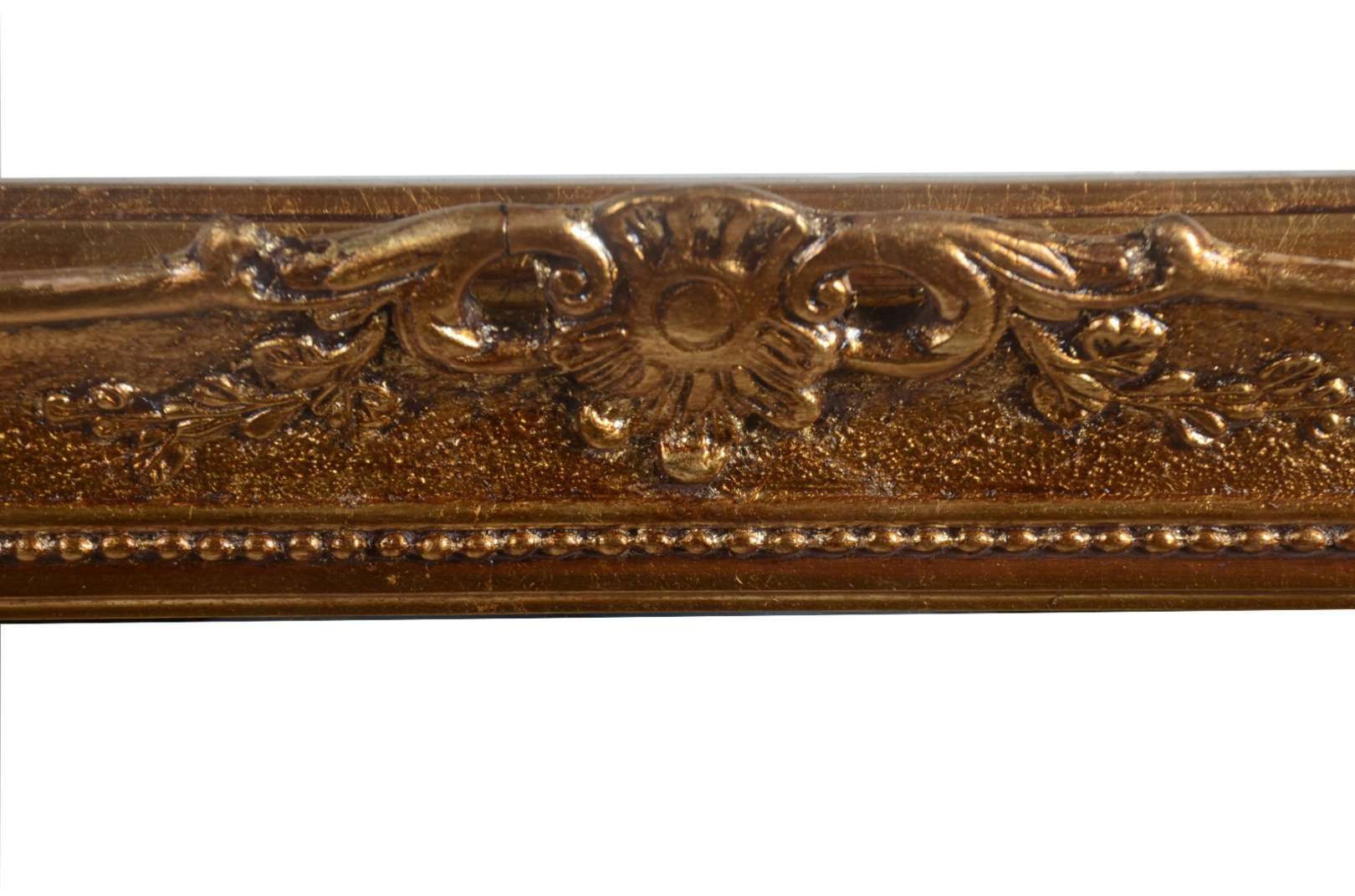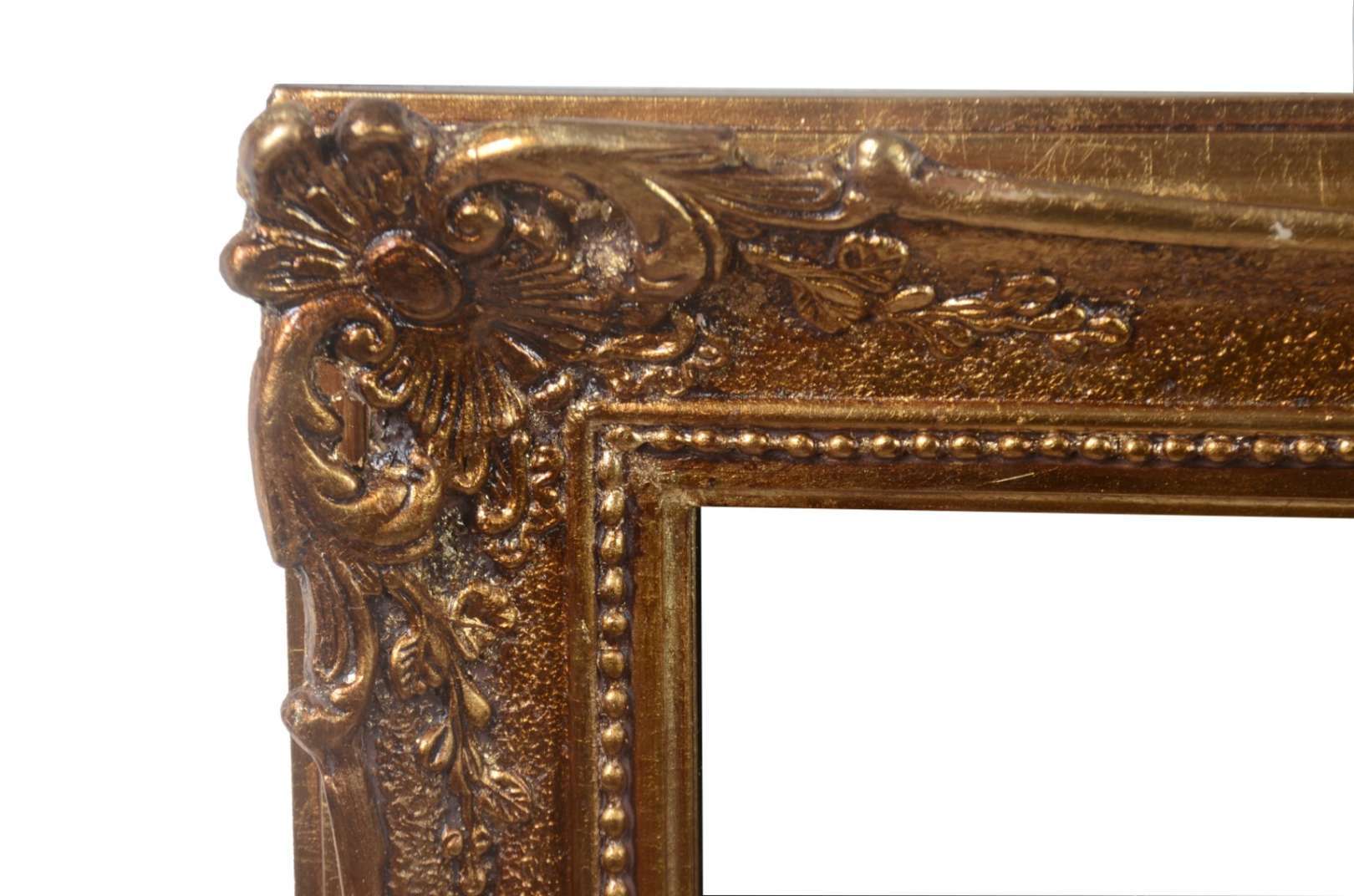 Espelho de cristal com moldura de madeira entalhada e dourada.