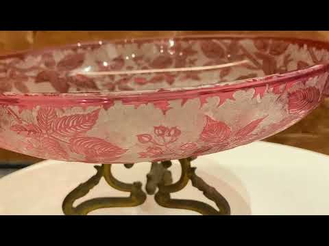 Par de vasos de vidro decorativo na cor vermelho com pó de ouro.