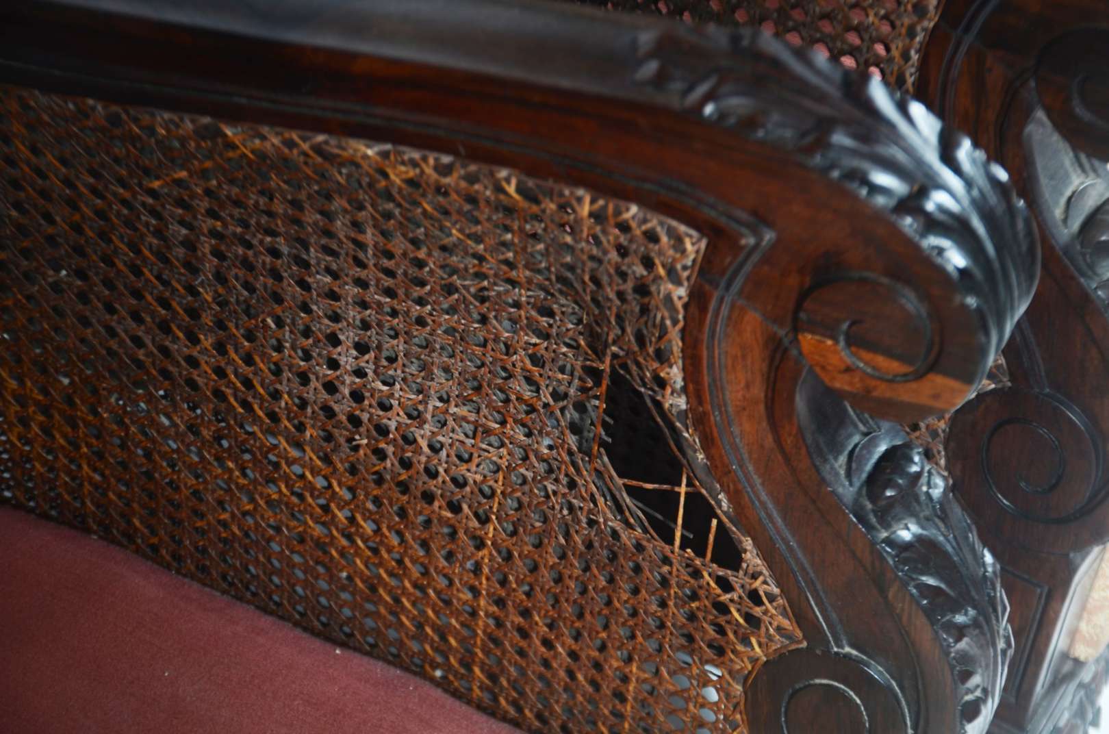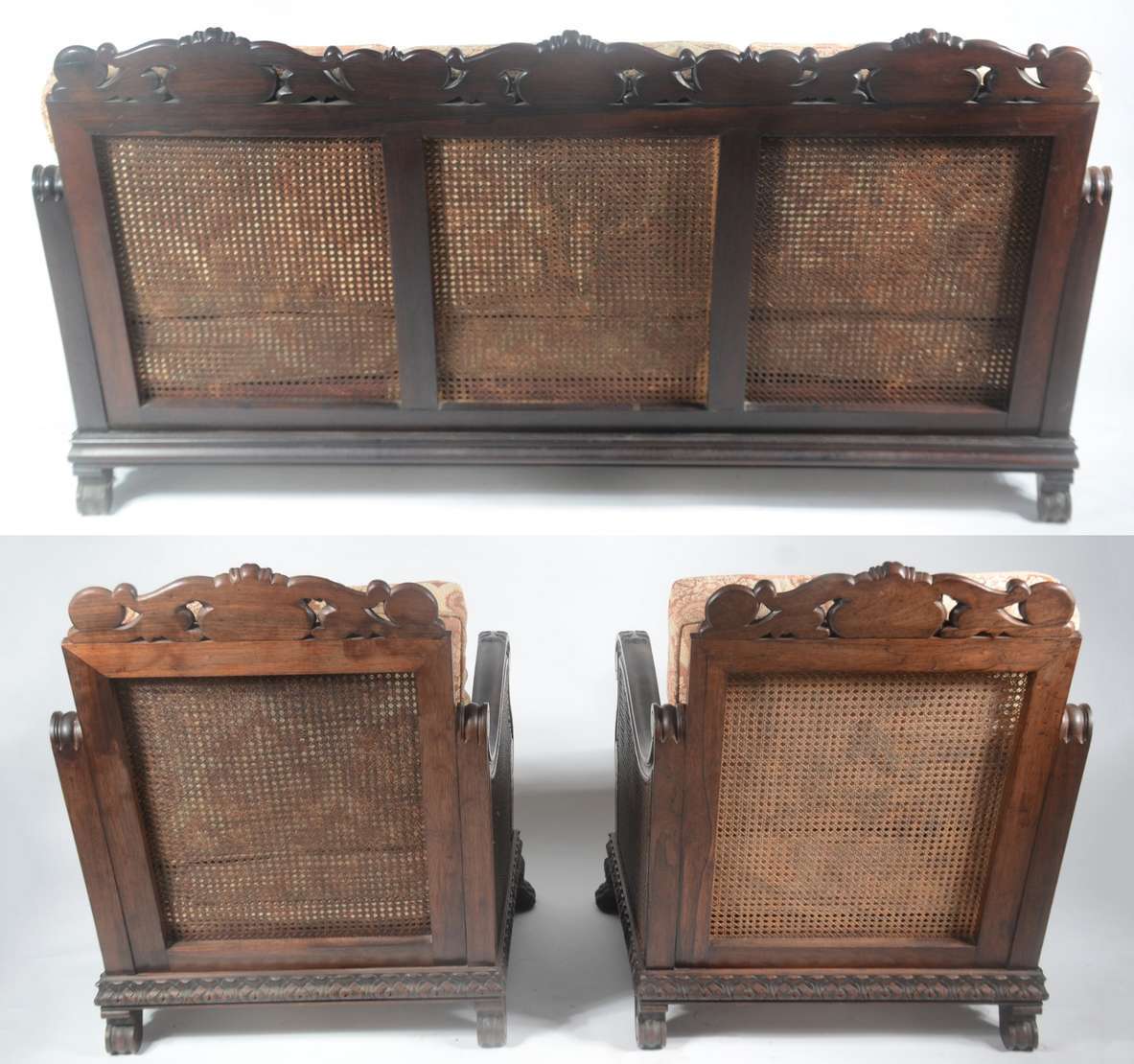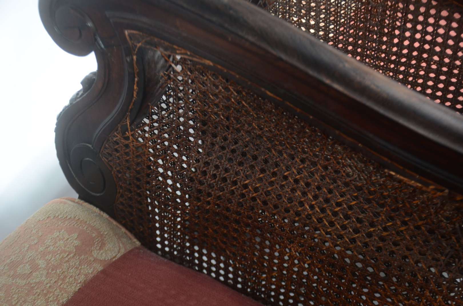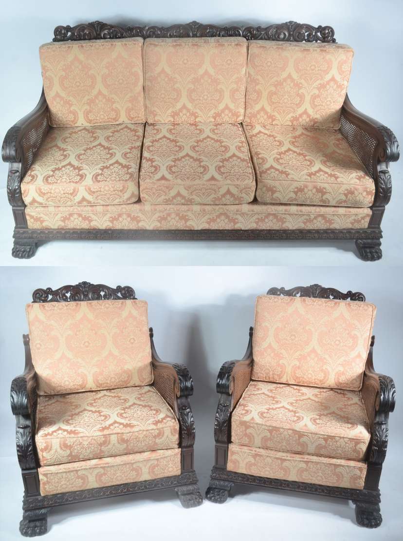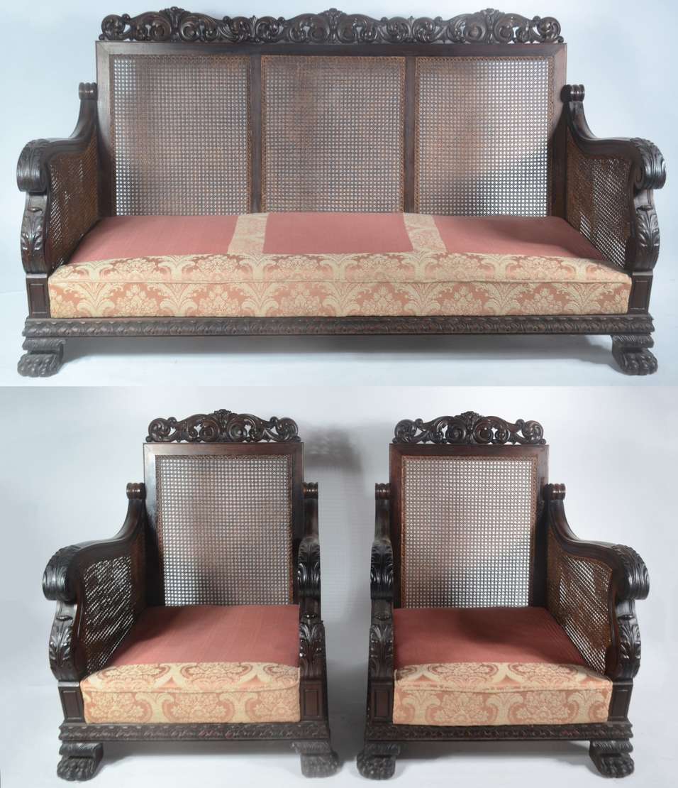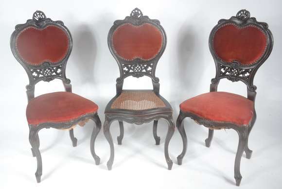 Três cadeiras com entalhes, sendo 2 com veludo e uma com palhinha.