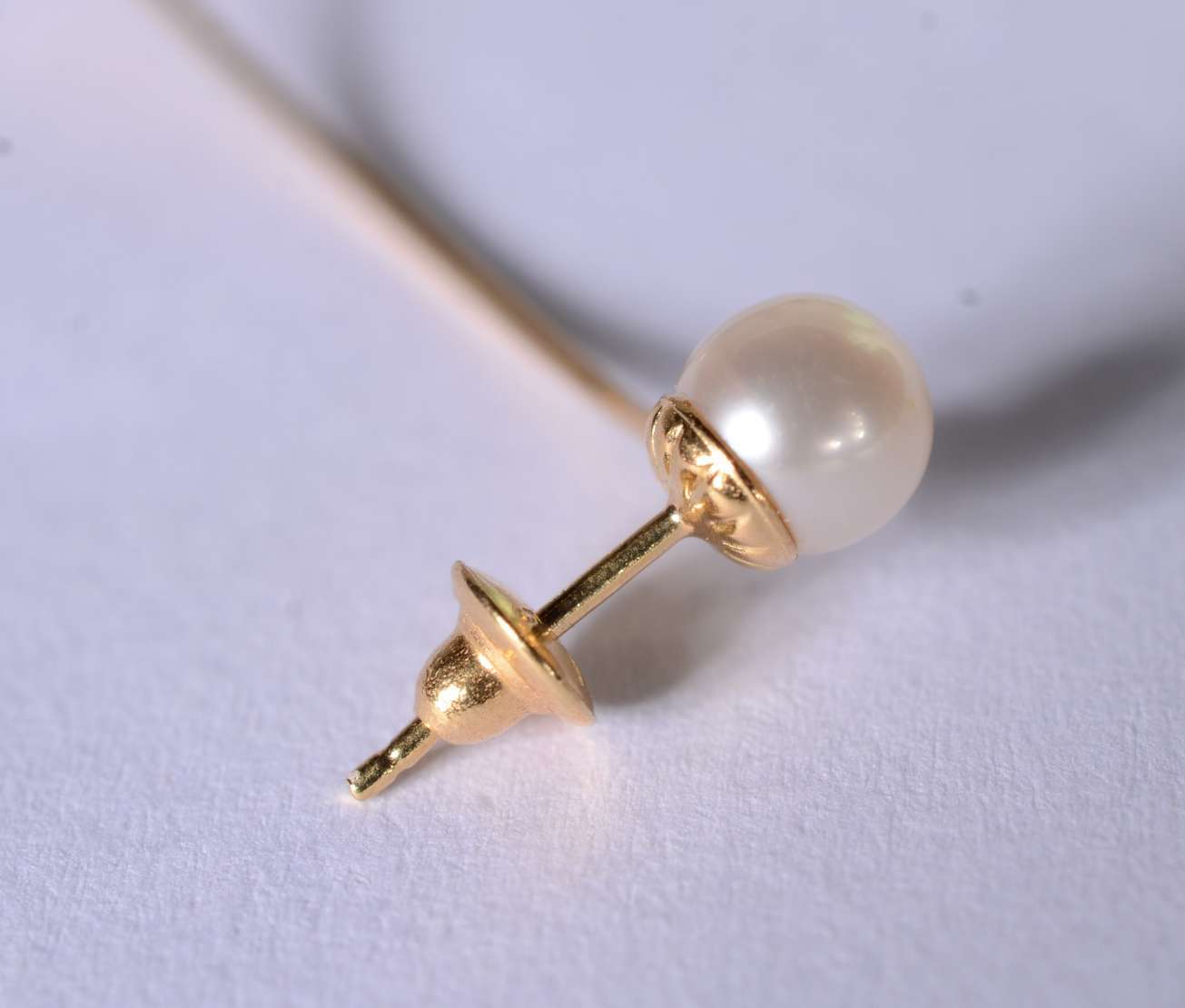 Anel de ouro 18 k., perola branca, aro 18. (Por motivos de segurança a peça não se encontra na loja).