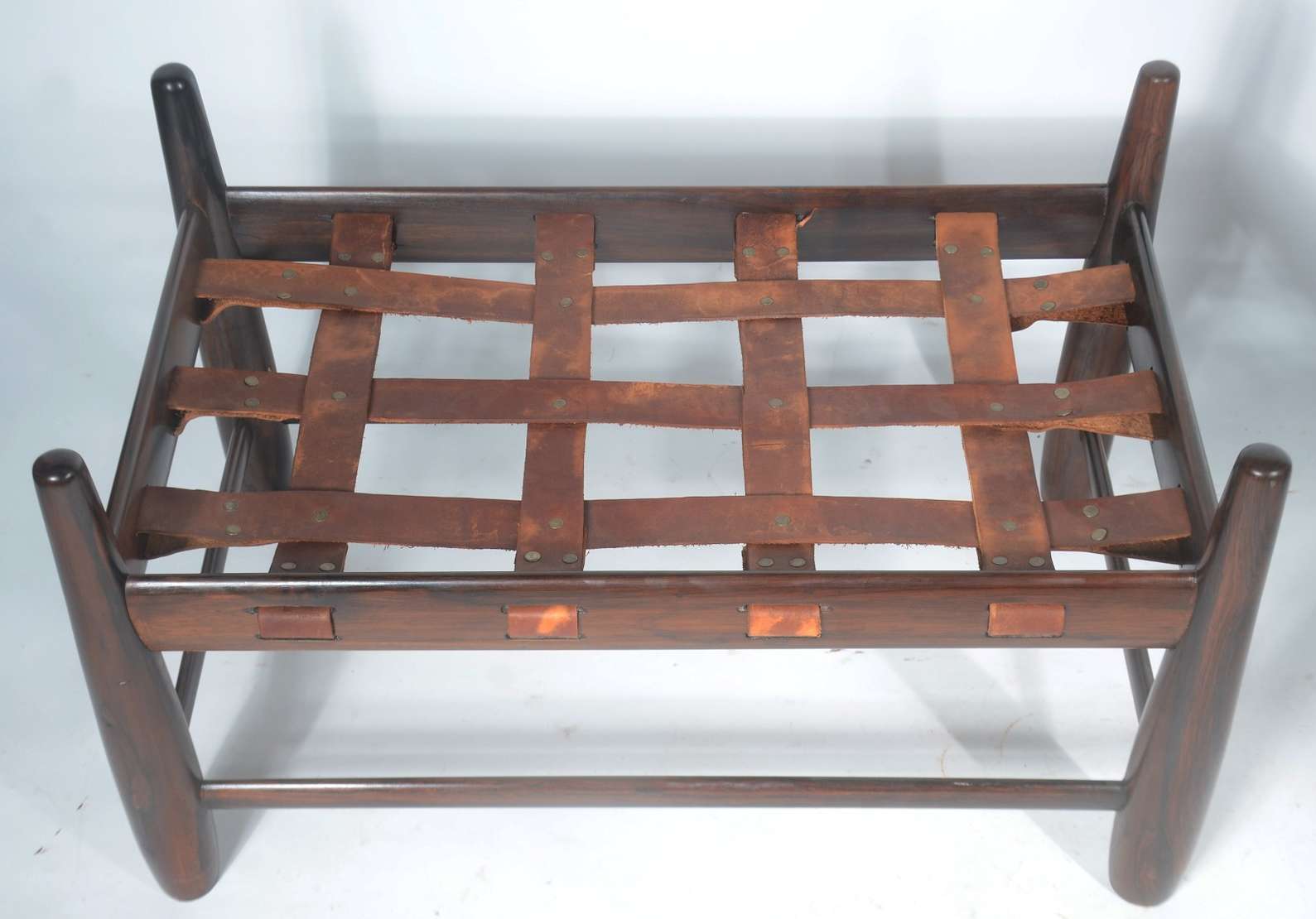 Mesa de centro de madeira nobre, tampo feitio bandeja, pernas retas.