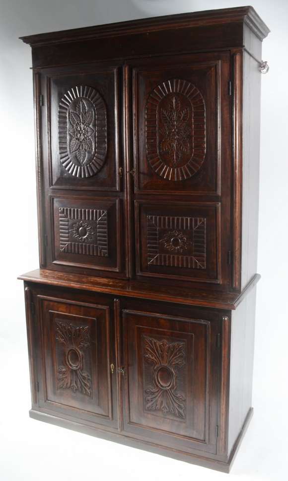 Grande móvel/oratório ou louceiro de madeira nobre, duas portas na parte superior e duas na parte inferior com entalh...