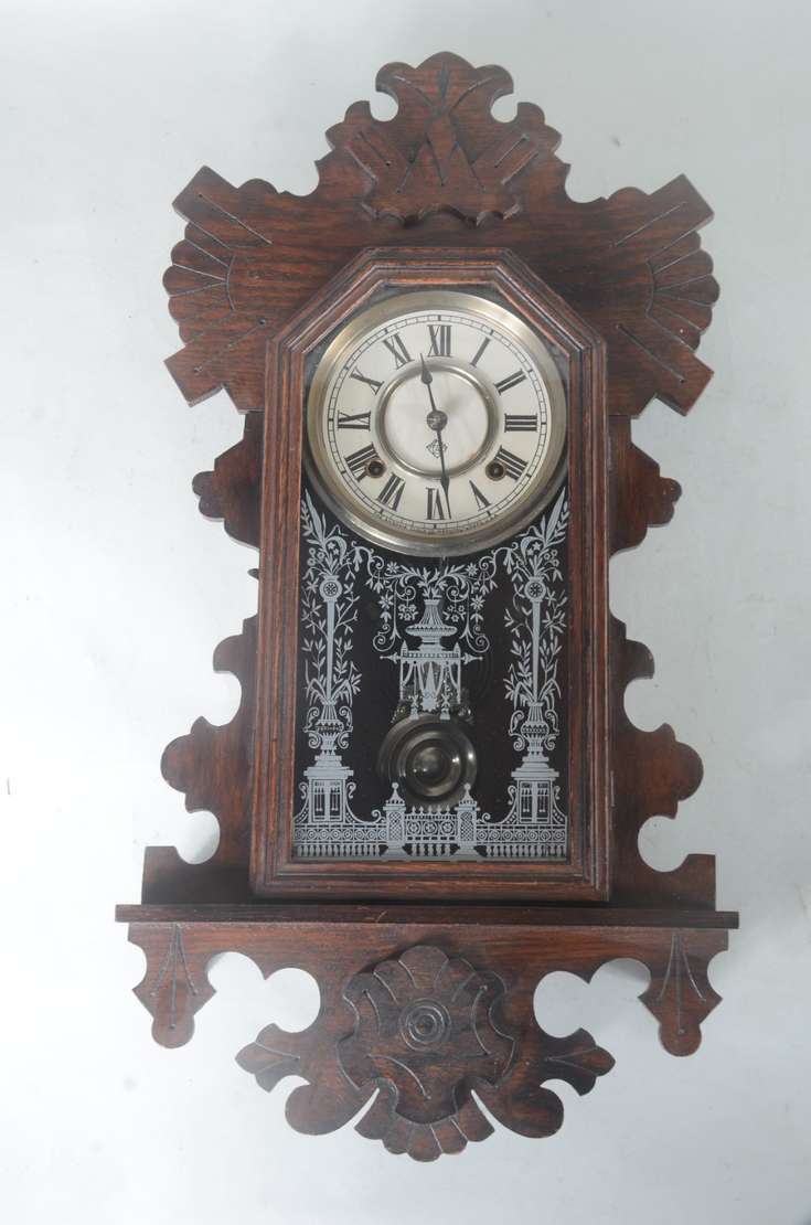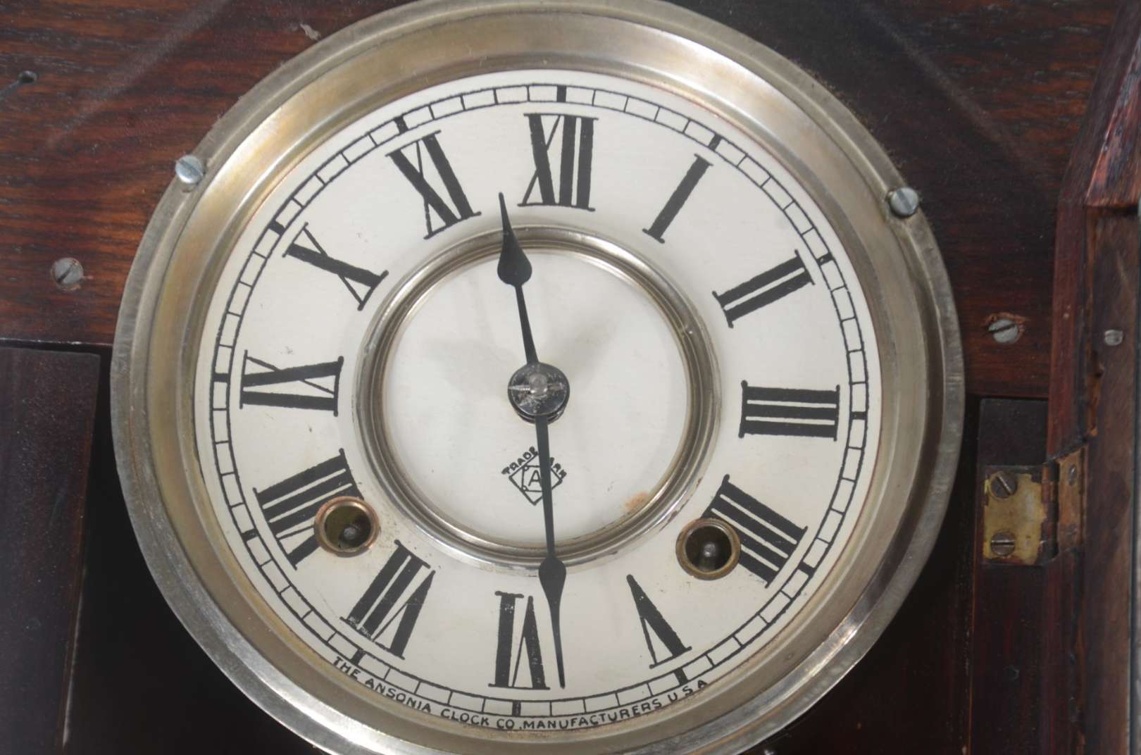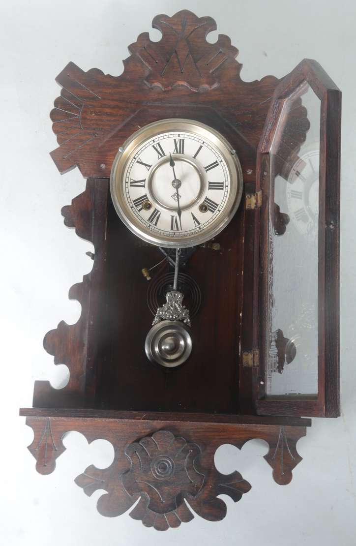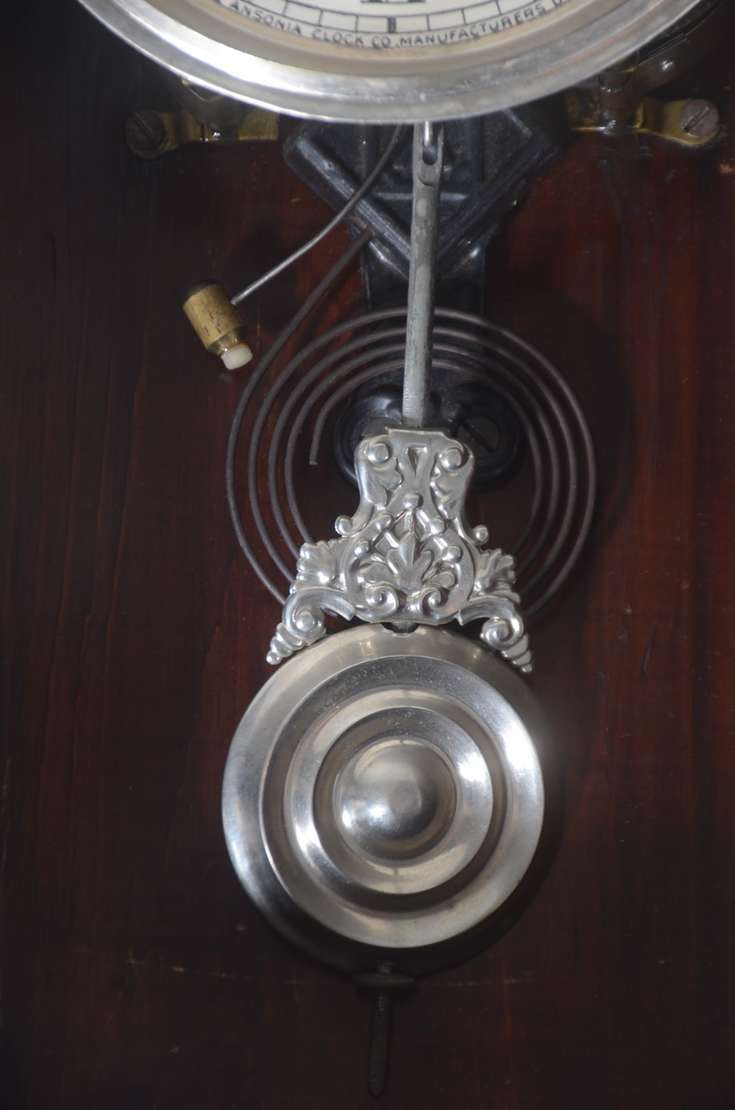 Escultura de bronze representando elefante com relógio globo de vidro, base de madeira (com cupim). Quebrado.