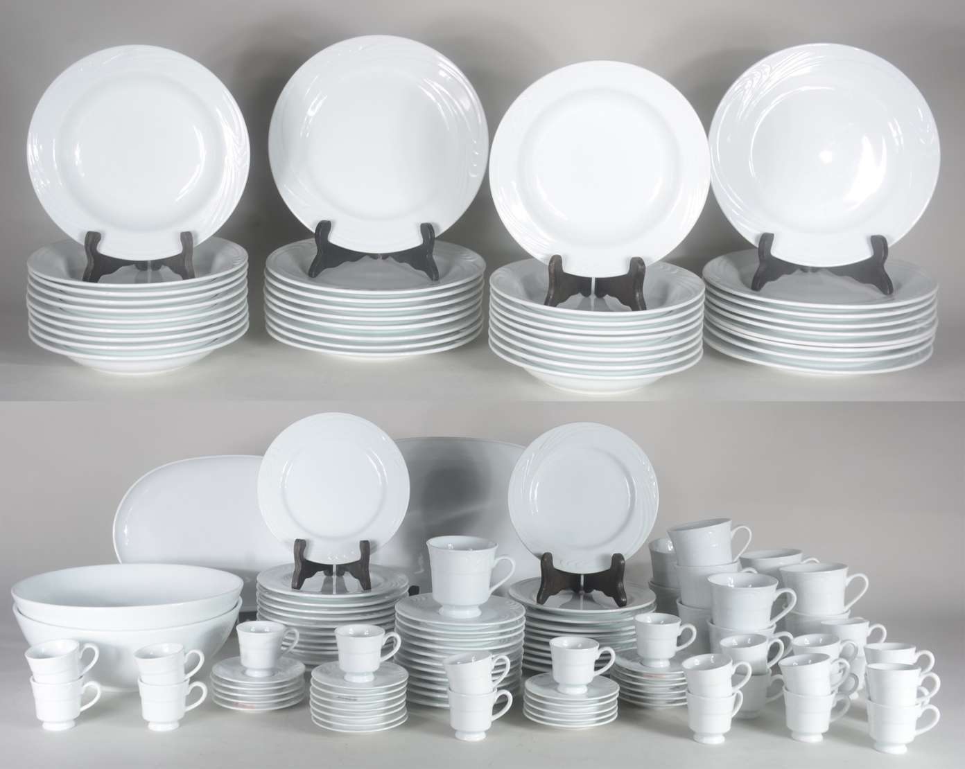 Três serviços de chá de cerâmica oriental, composto de: 5 bowls; bule; 6 bowls, cremeira, bule, 2 pratos, 5 bowls.