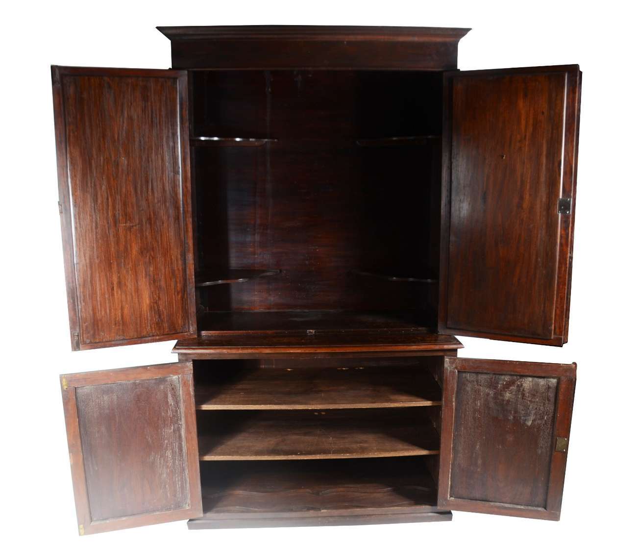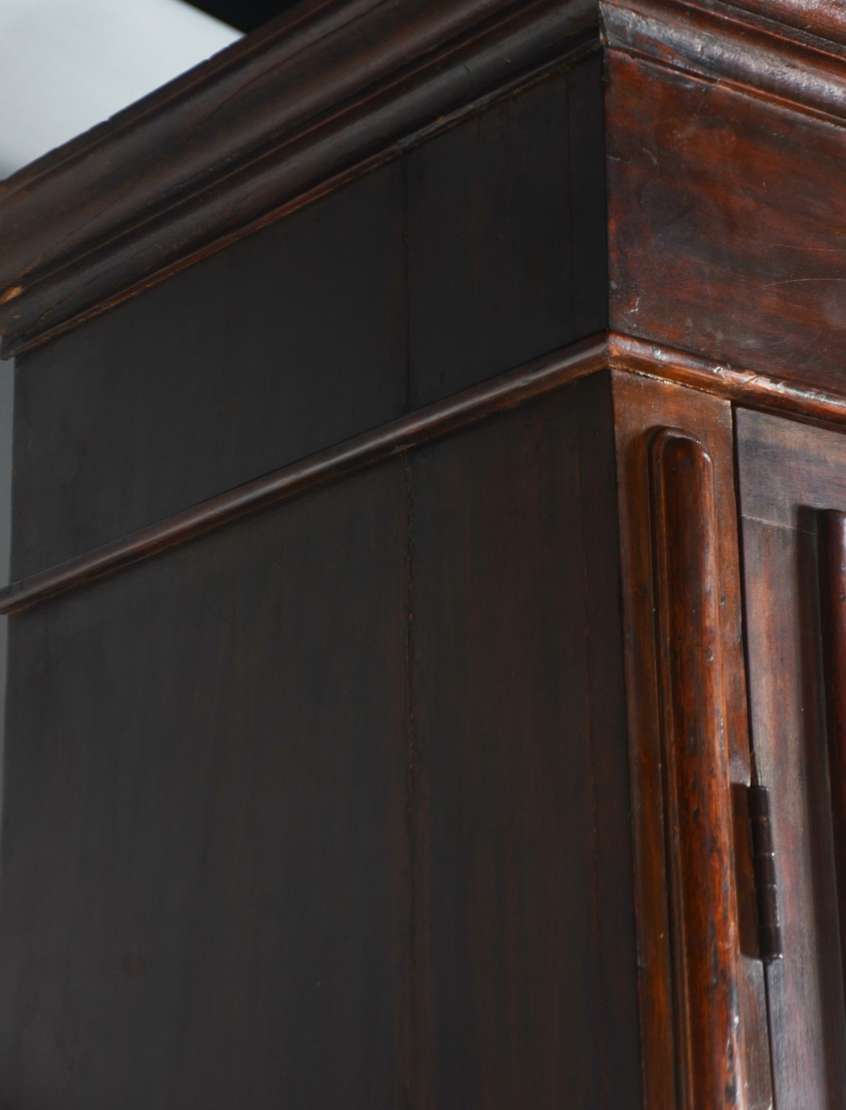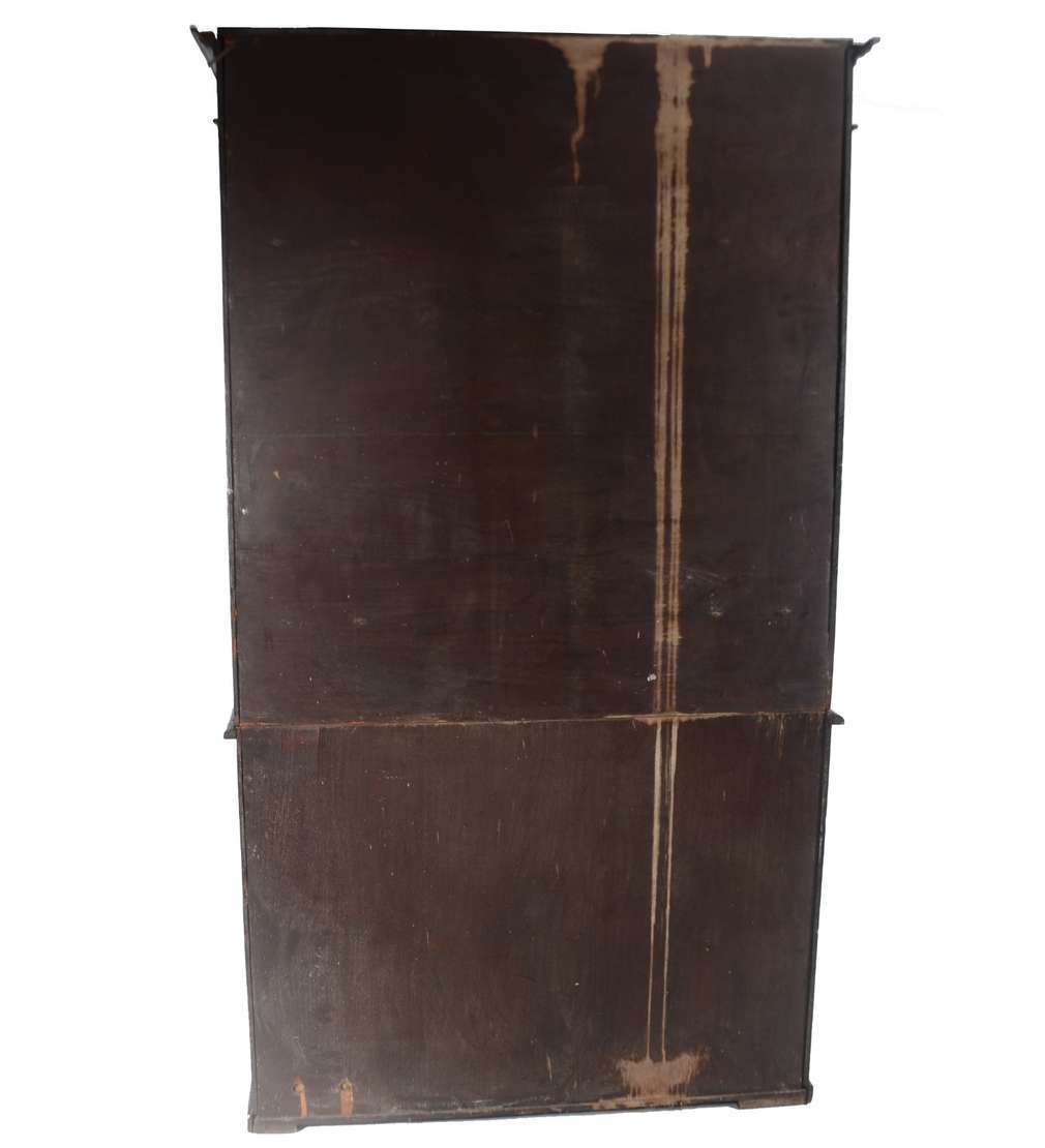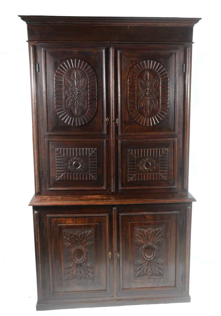 Grande móvel/oratório ou louceiro de madeira nobre, duas portas na parte superior e duas na parte inferior com entalhes, prateleiras internas.