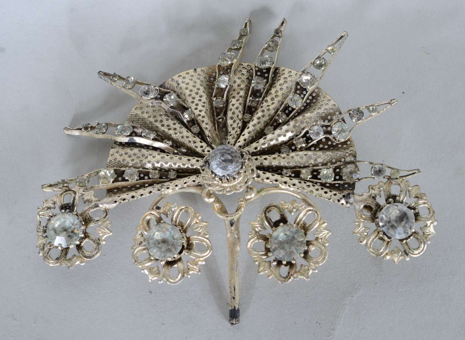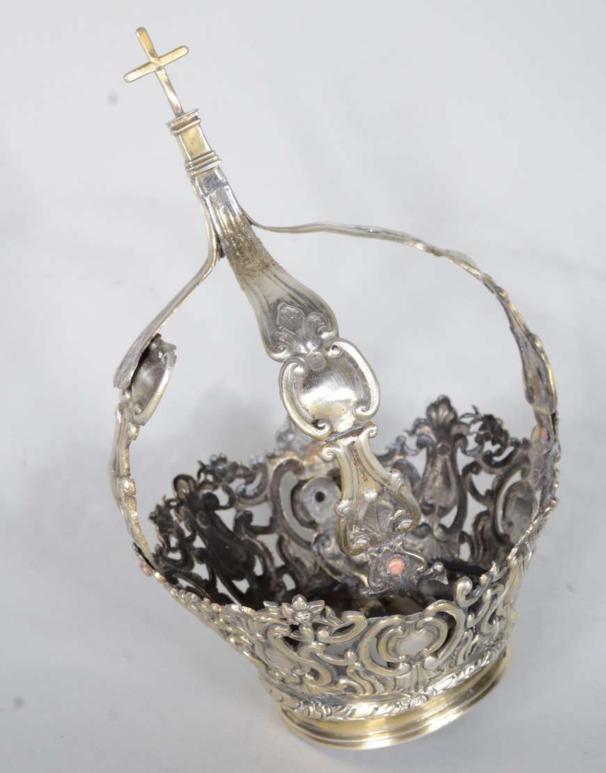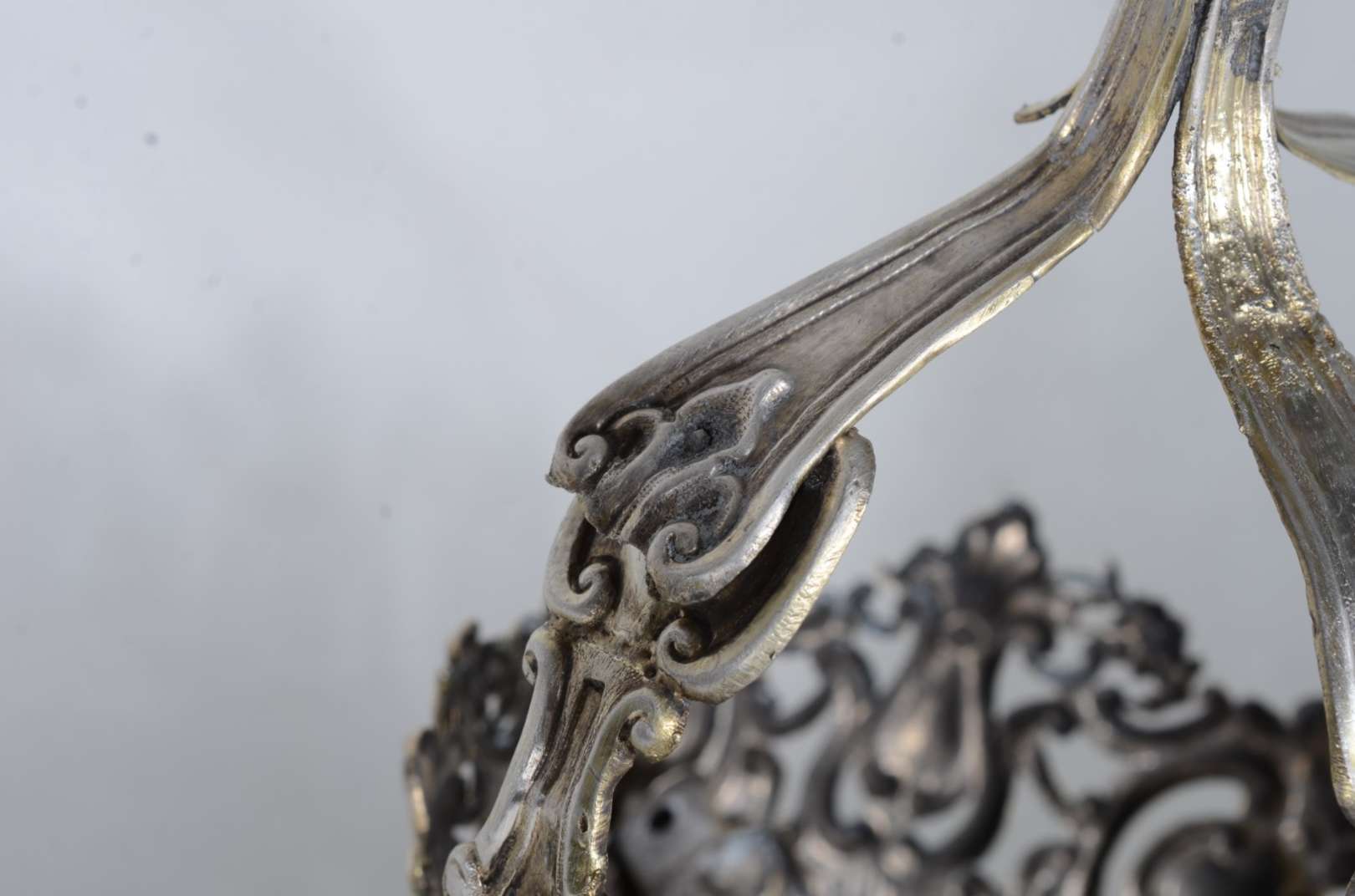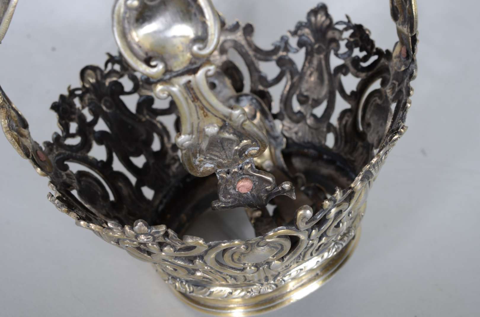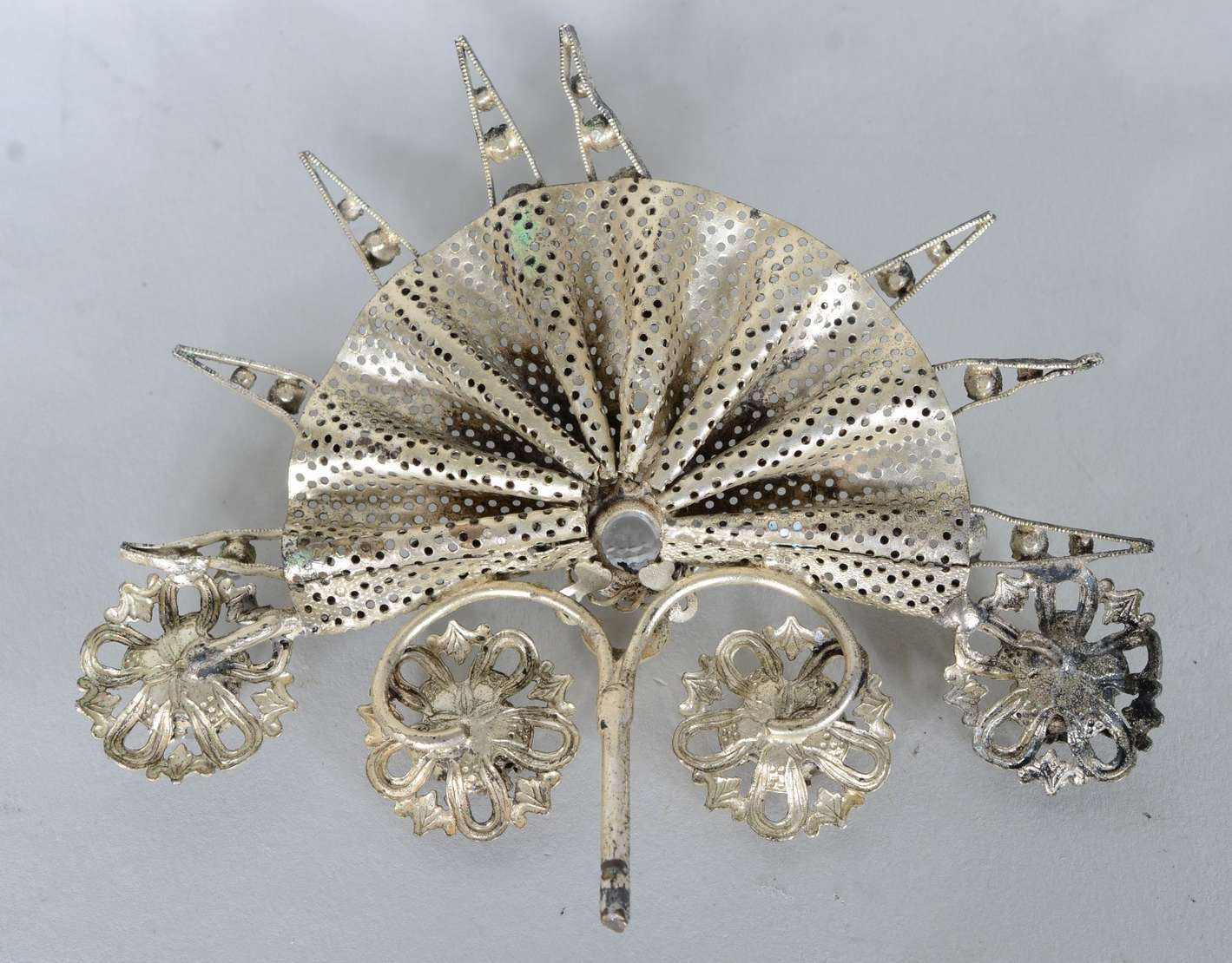 Medalhão de metal dourado com vazados.