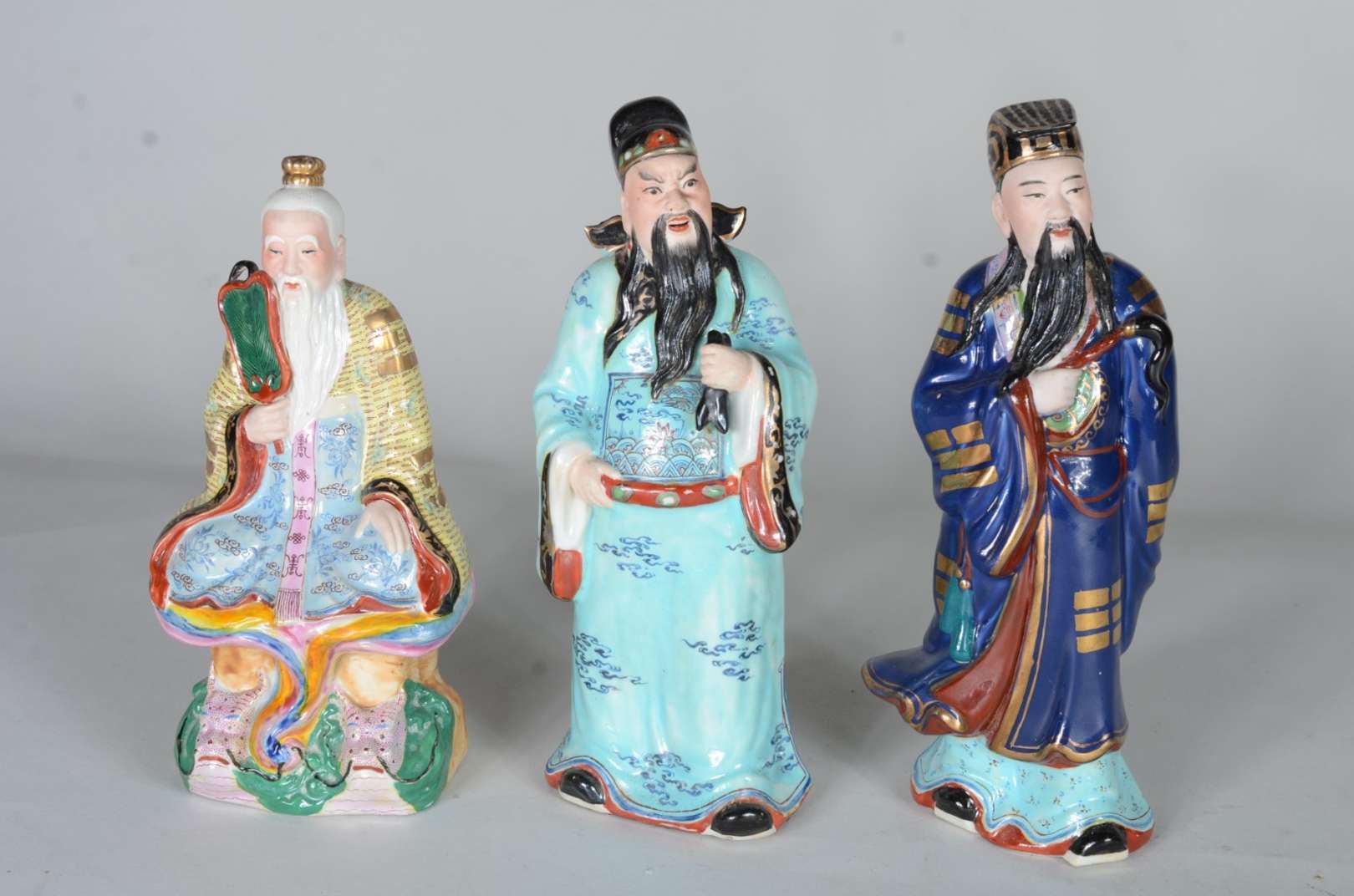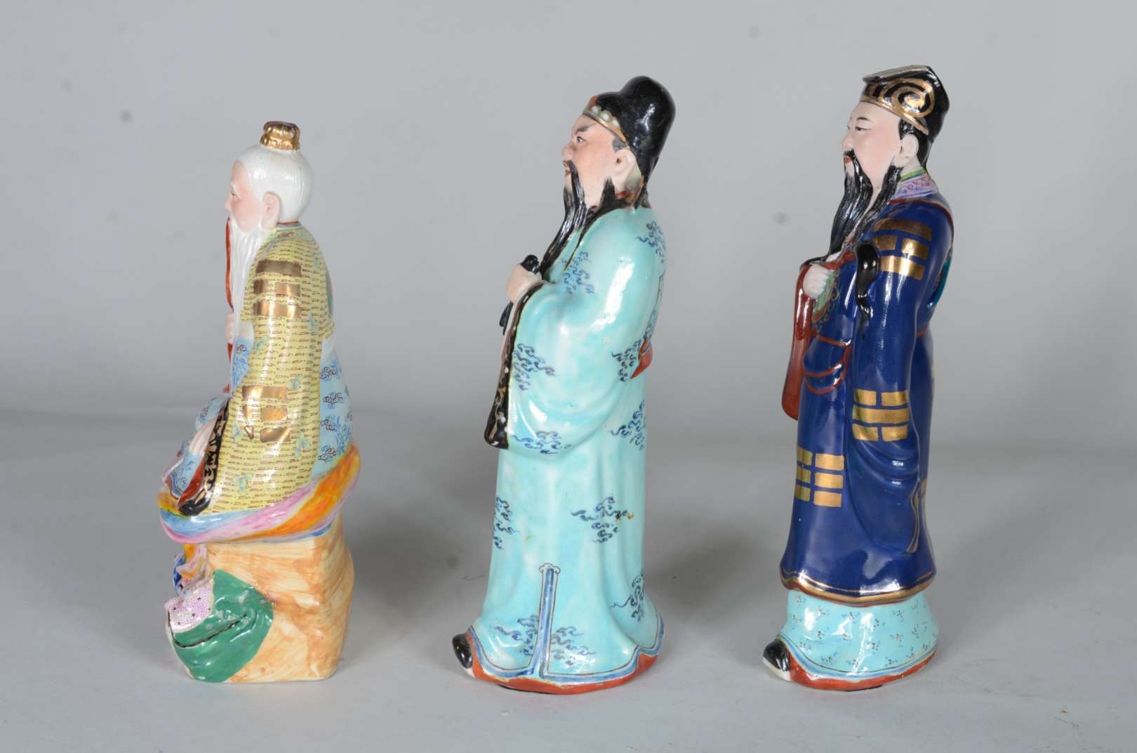 Três esculturas de madeira entalhada, sendo: Placa com rosto de jovem, assinada B.F.Heise, 1945; Figura de homem agac...