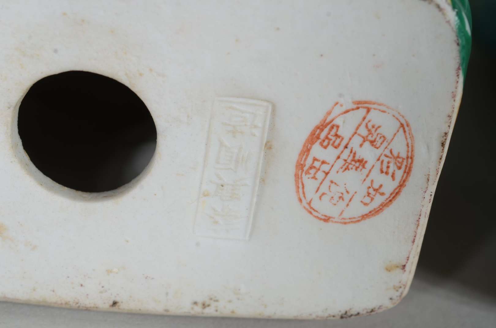 Presa de marfim com animais em relevo.