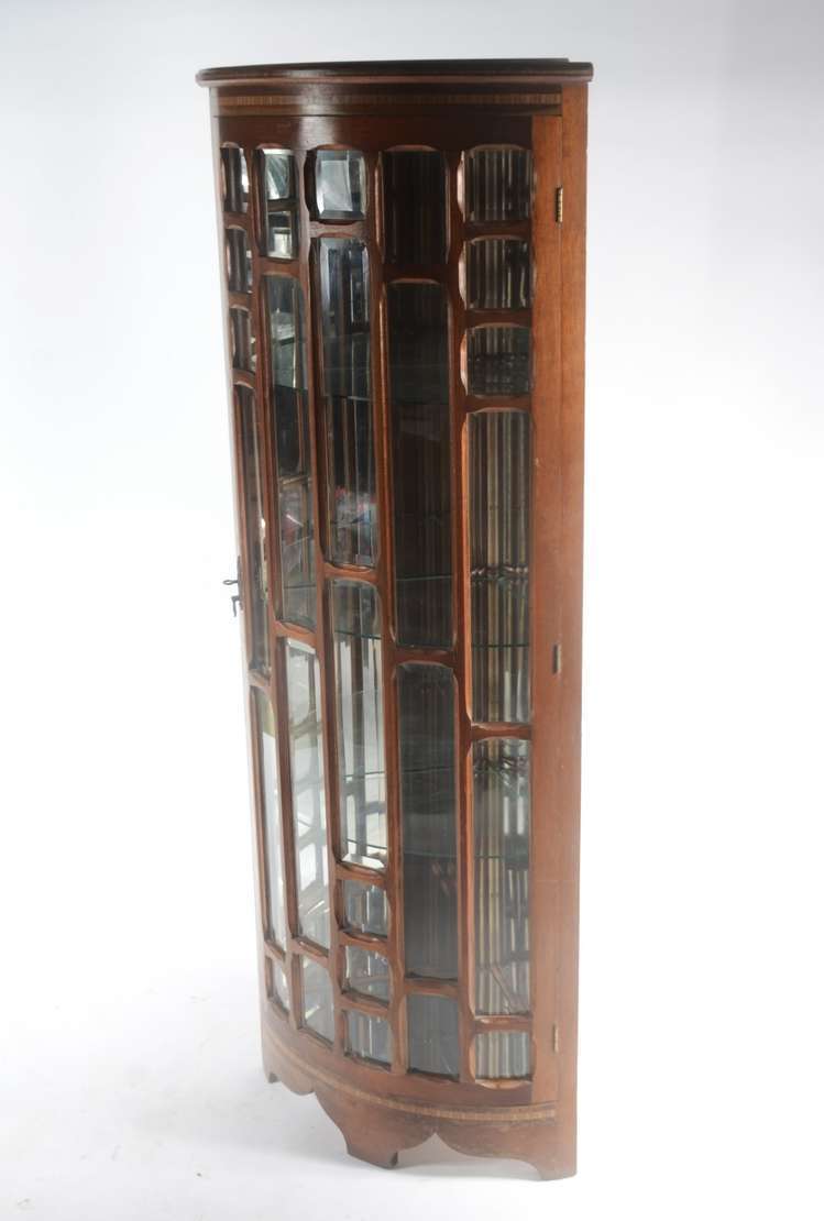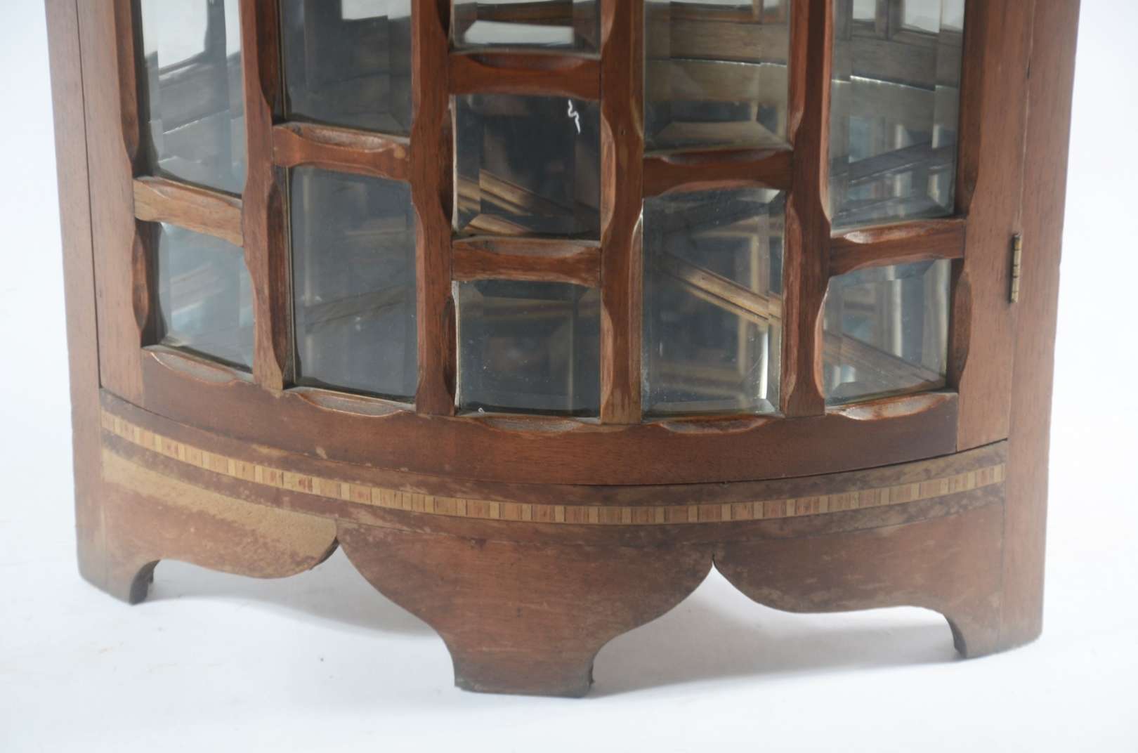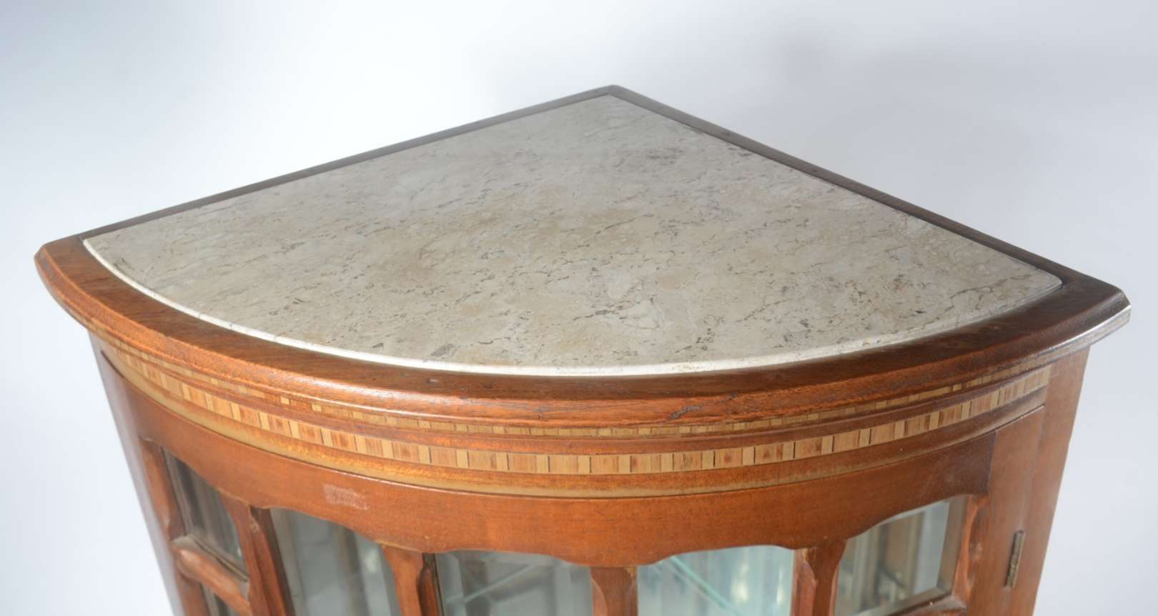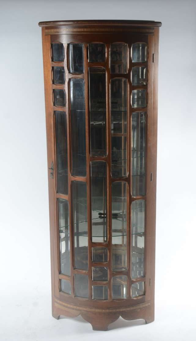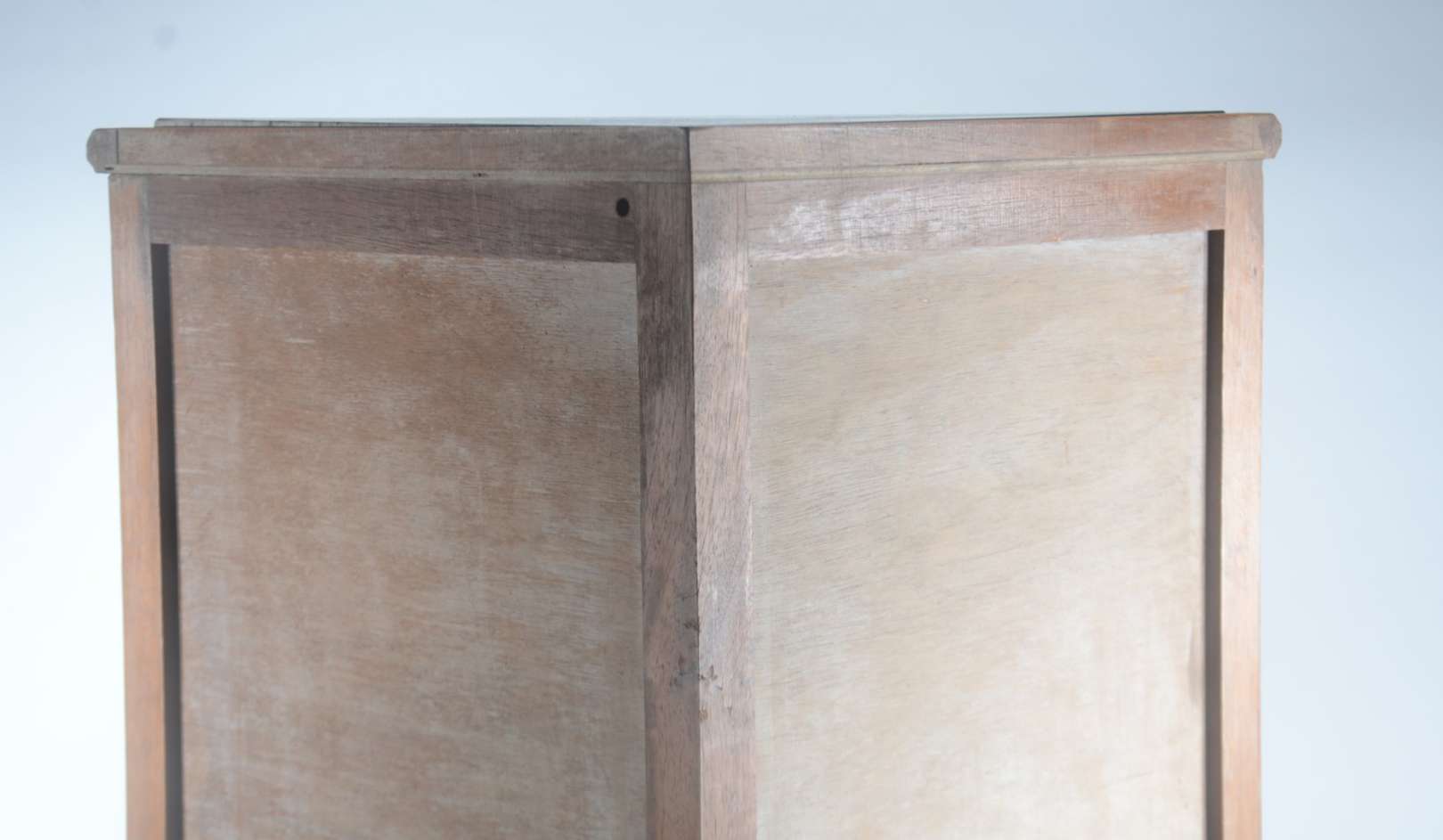 Móvel vitrine de madeira nobre, parte inferior com duas portas com detalhes de metal e prateleiras internas. Parte su...