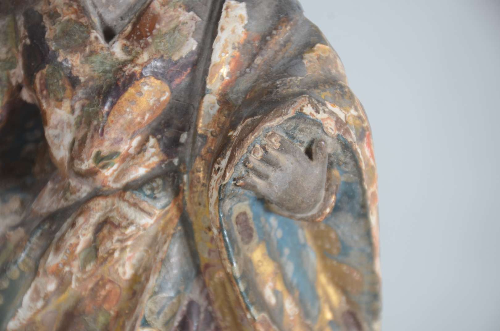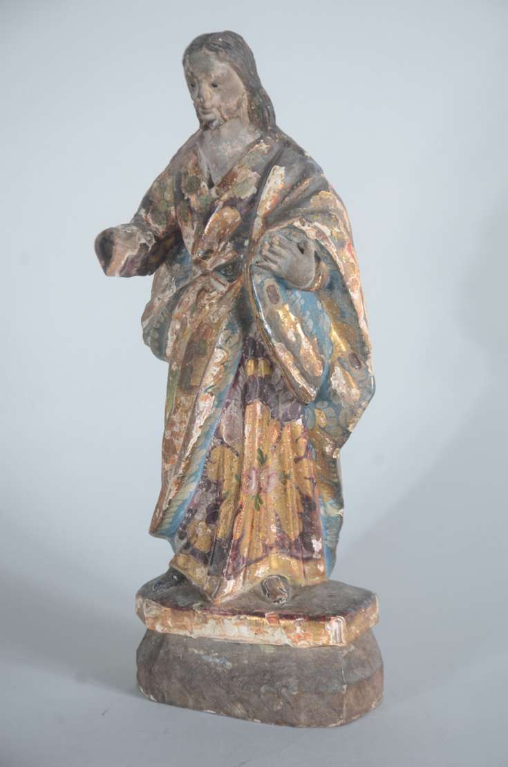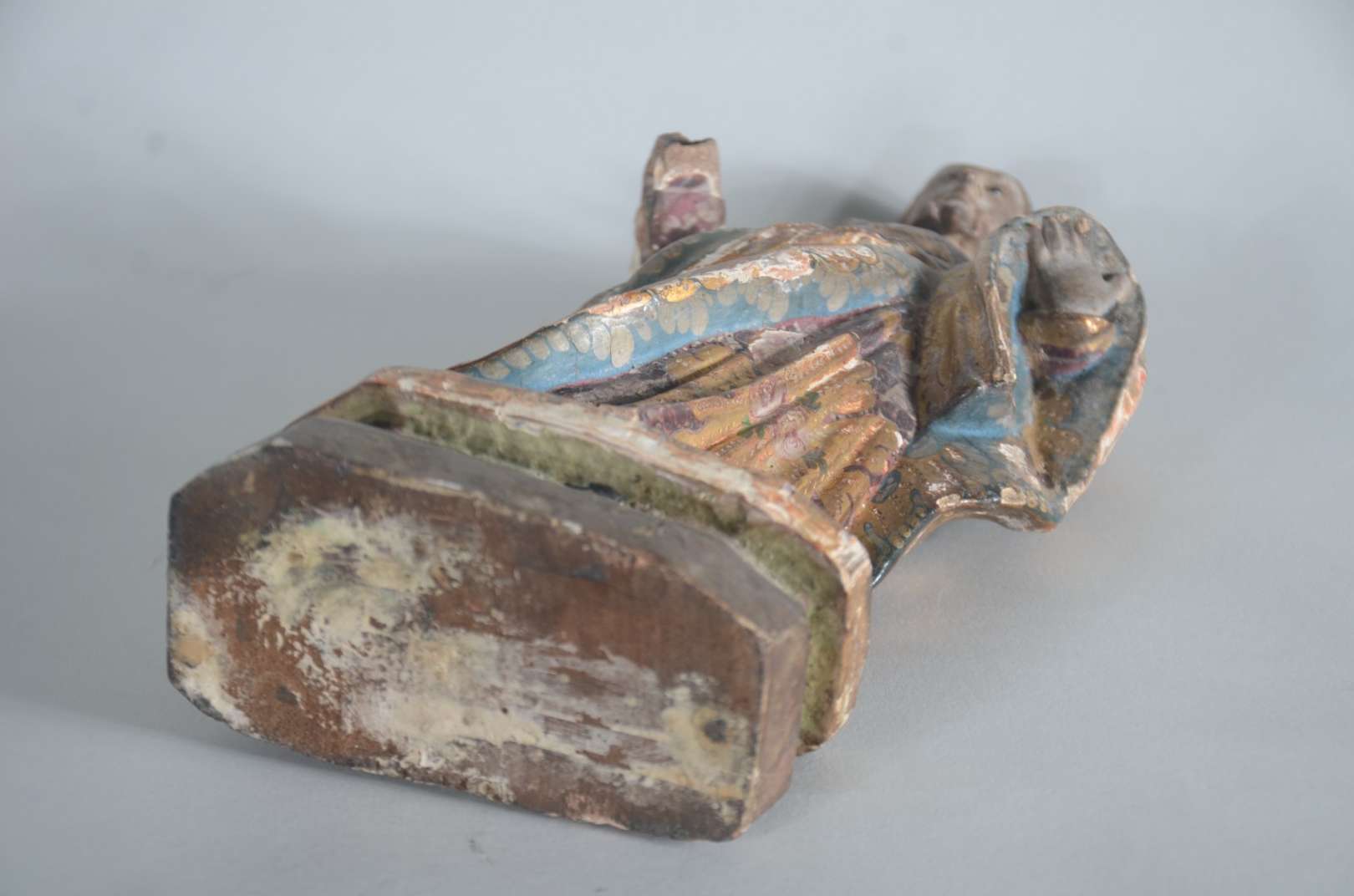 Santo - Imagem de madeira policromada e dourada. Com desgastes.