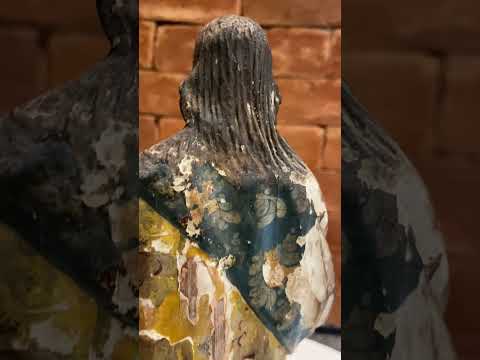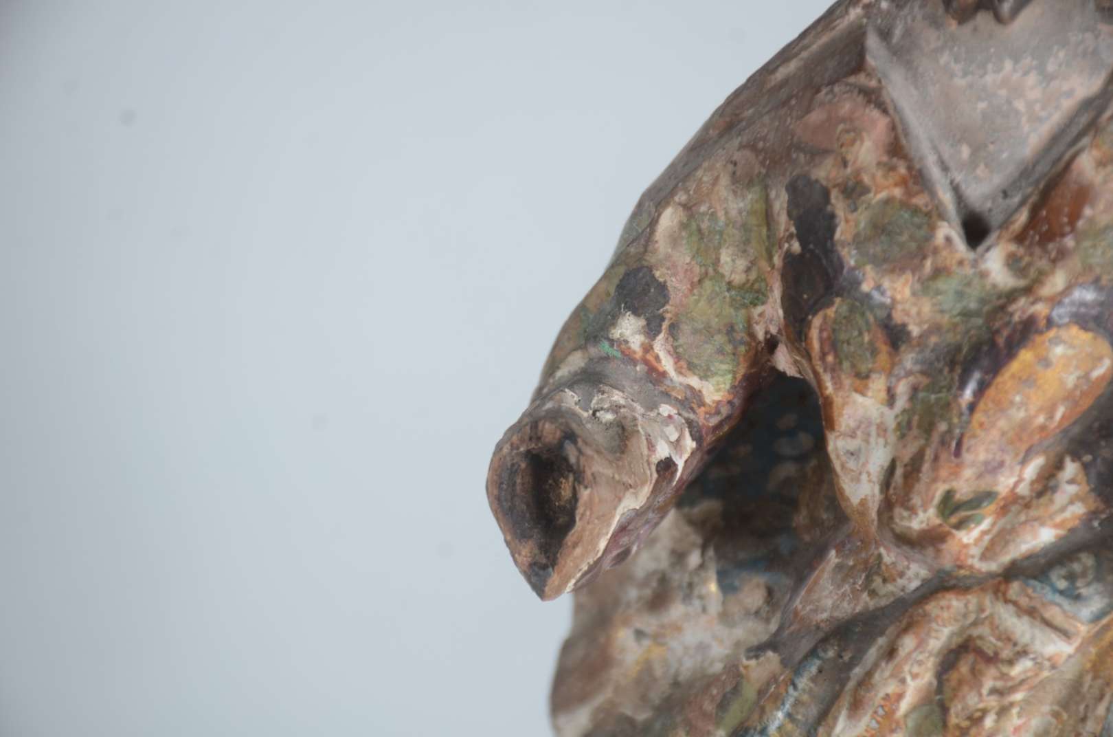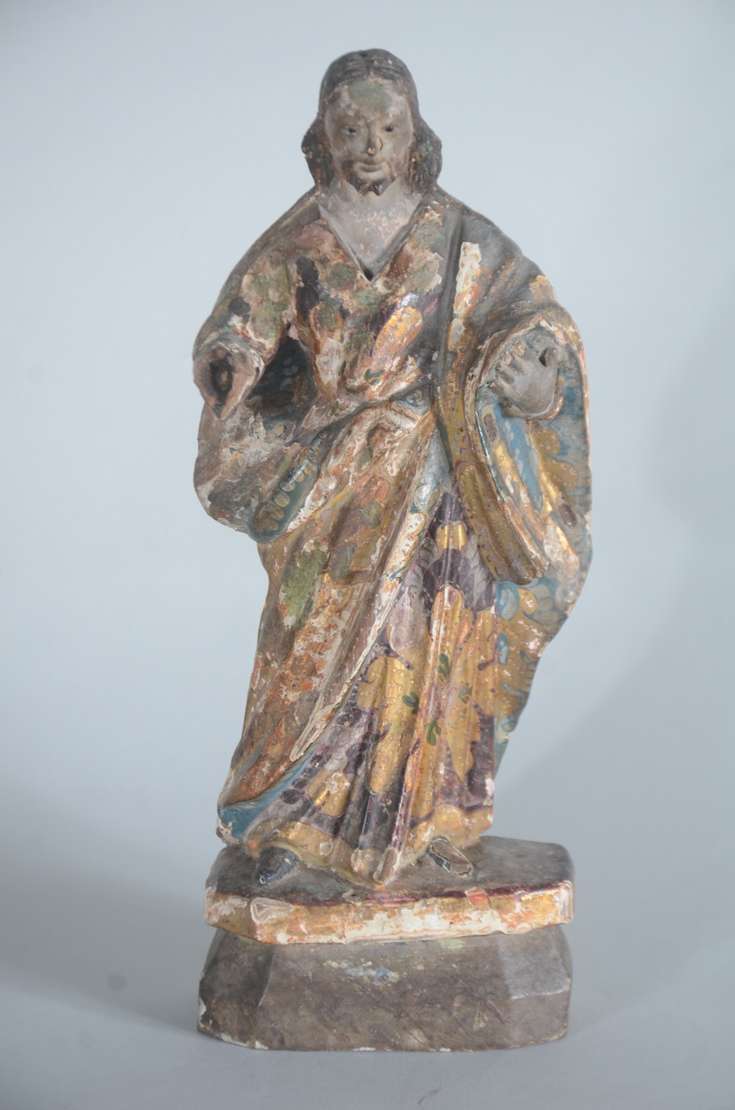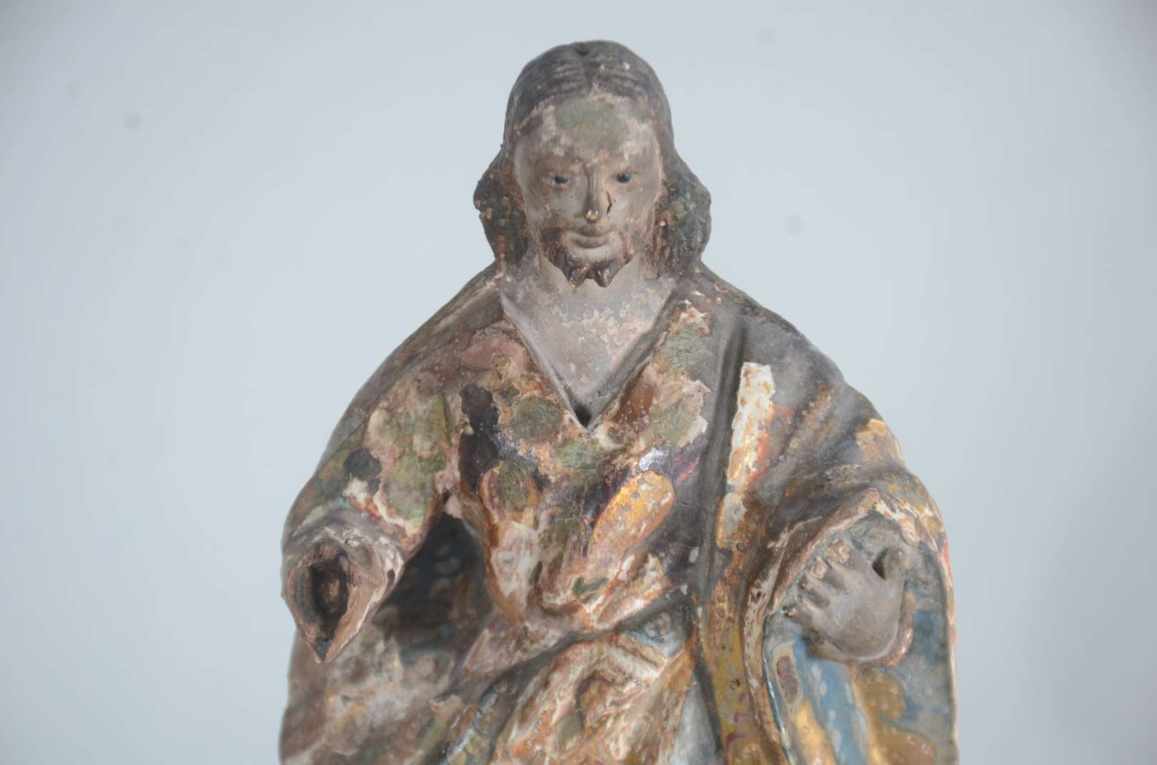 Santo - Imagem de madeira policromada e dourada. Com desgastes.