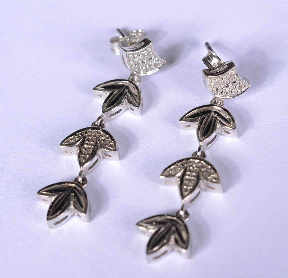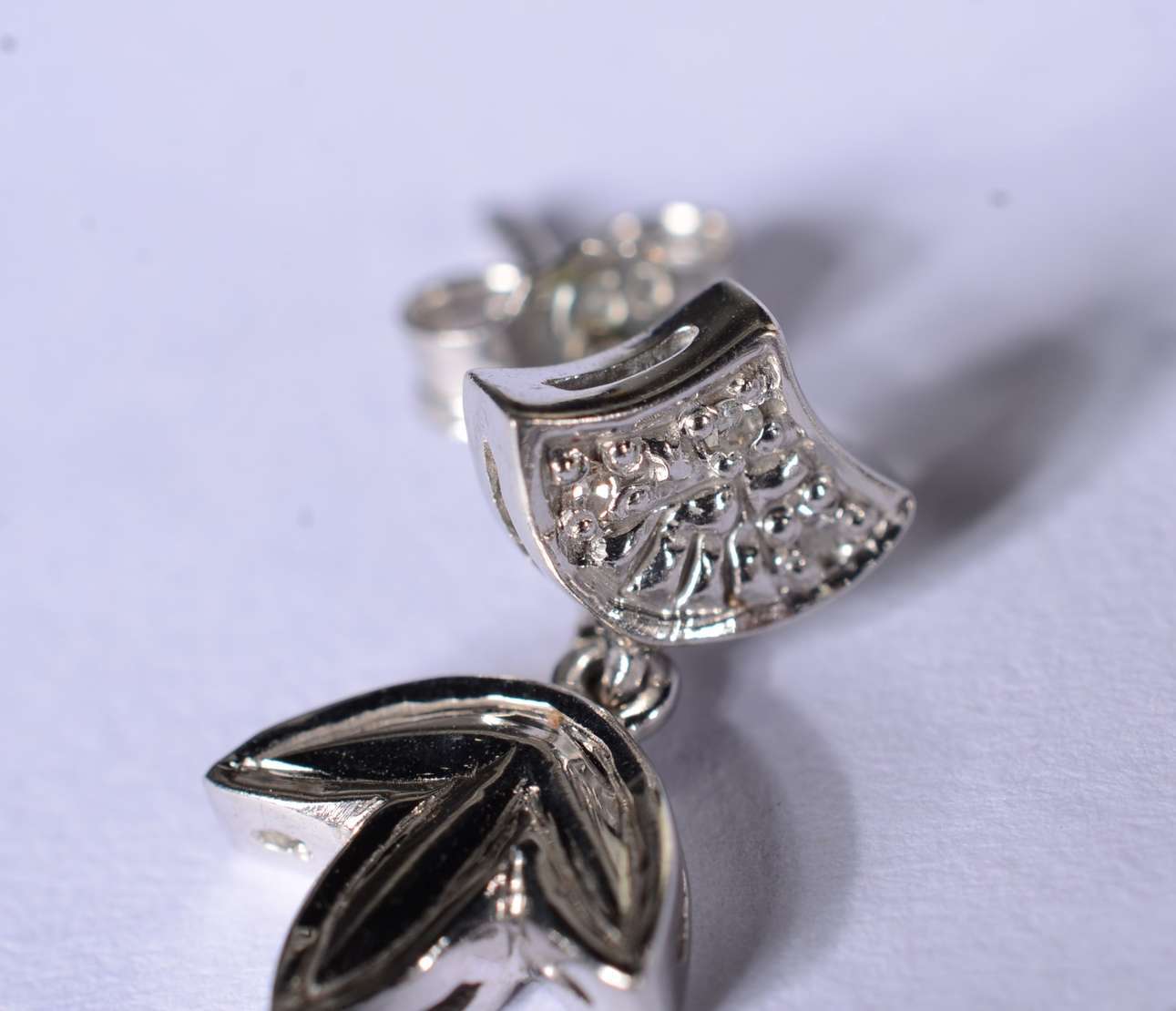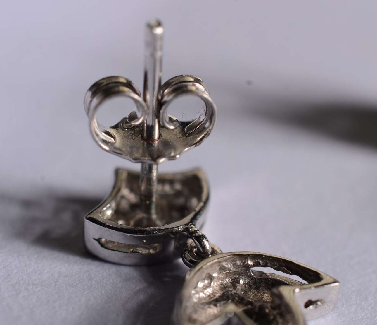 Par de brincos de ouro branco, contraste 750 mls com um brilhante cada. (Por motivos de segurança a peça não se encon...