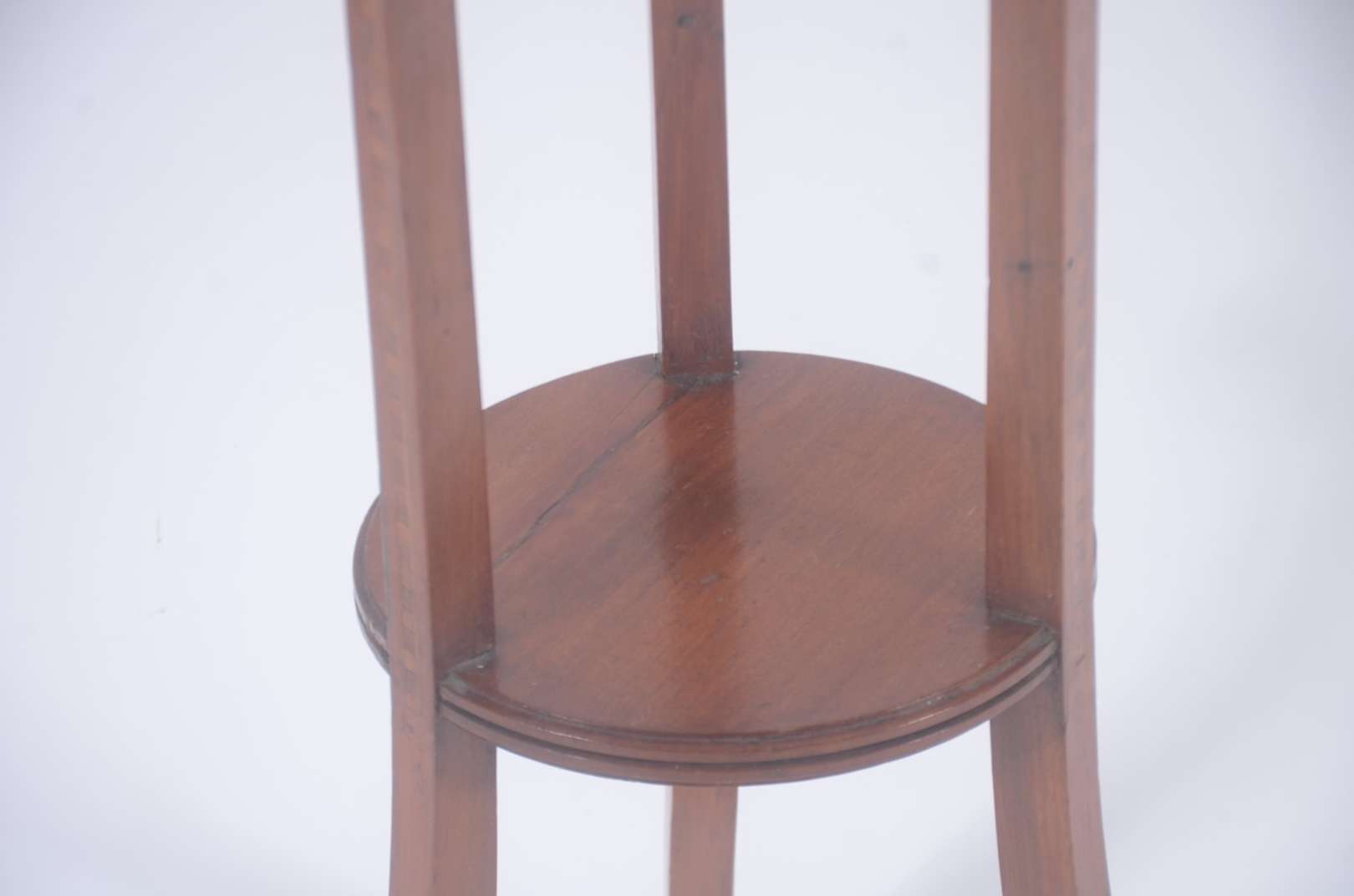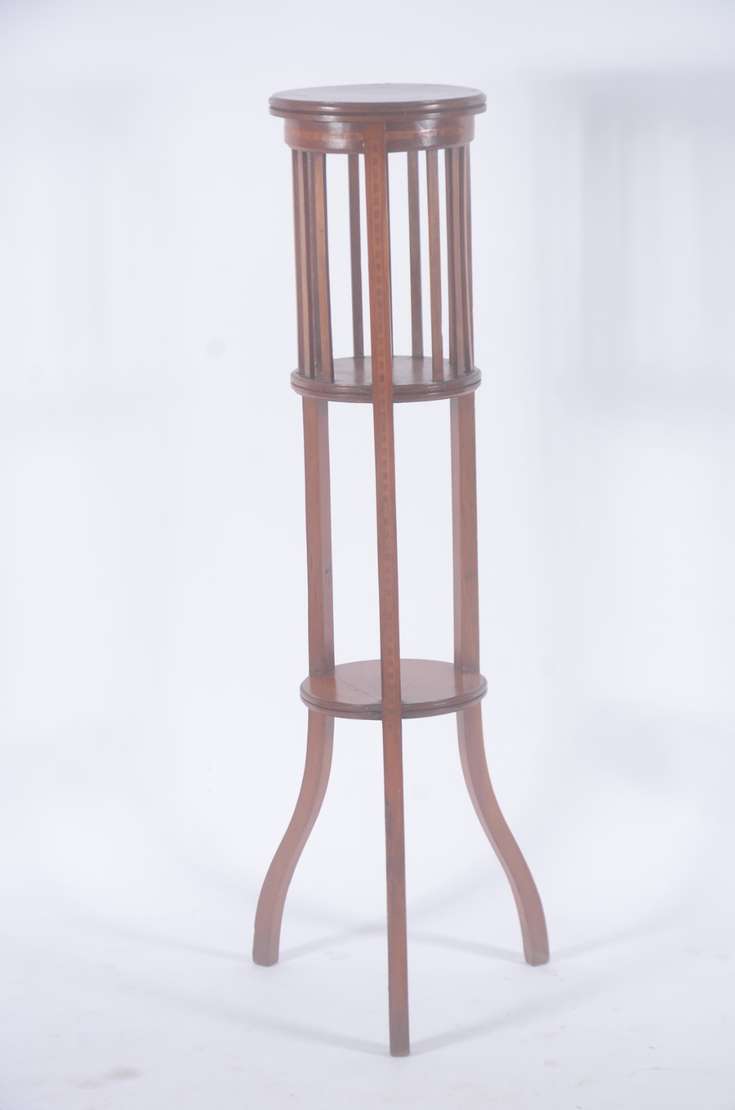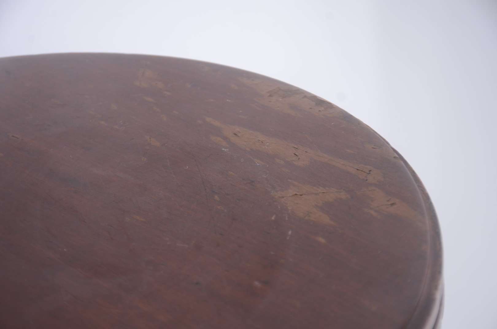 Banquinho de madeira rústica com base em tripé.