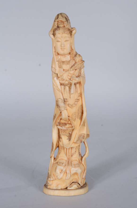 Escultura de marfim representando "Divindade Indiana". Mão colada.