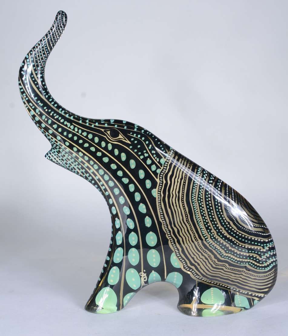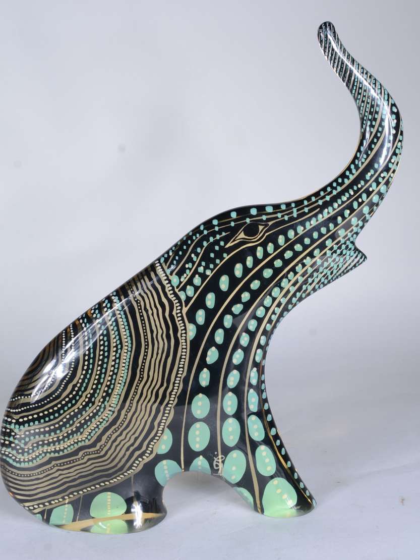 Três peças de marfim, sendo: 2 elefantes com base de madeira e abridor de cartas com elefantes em relevo.