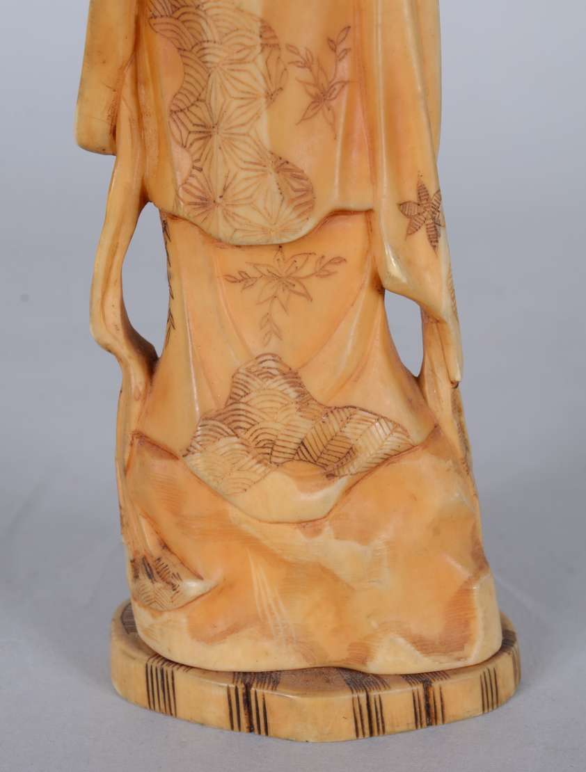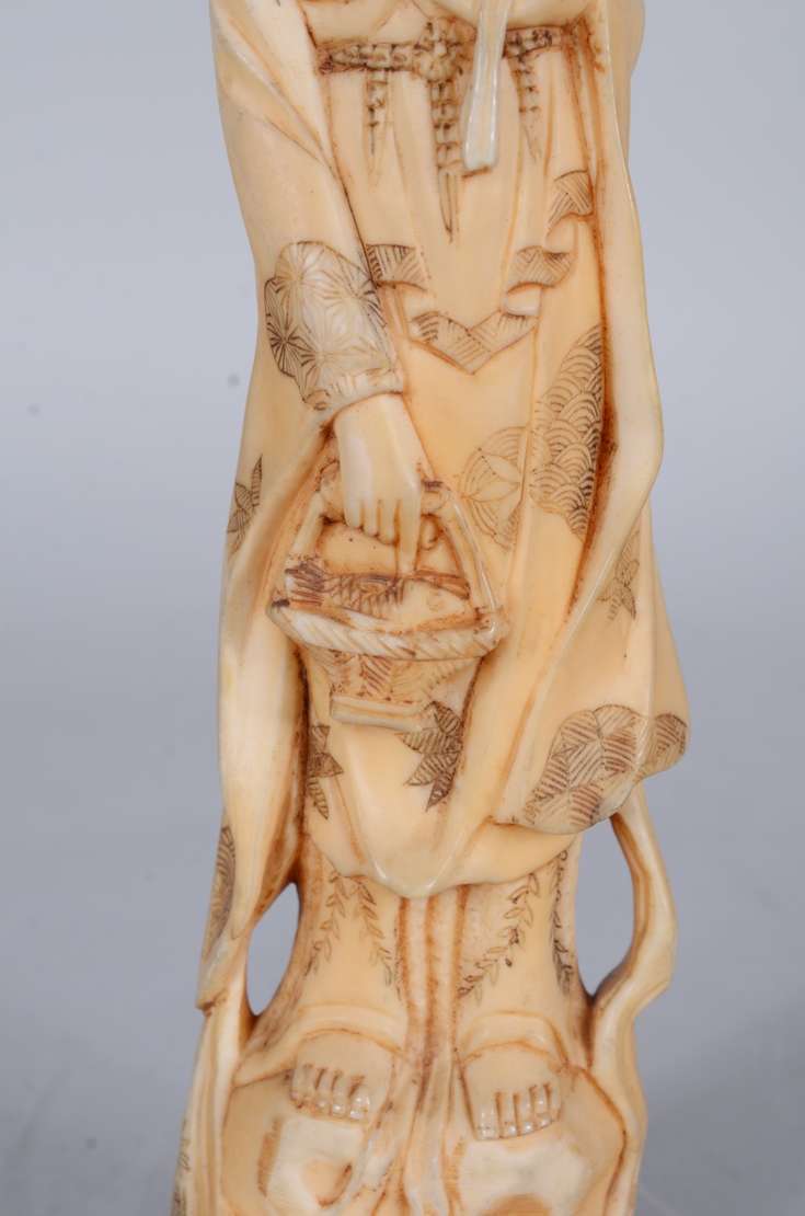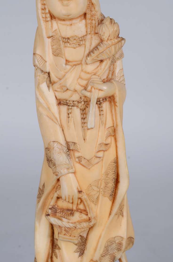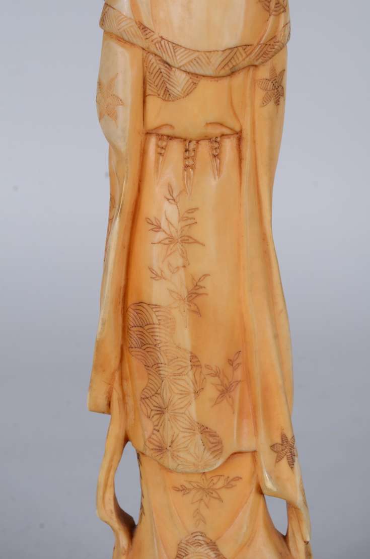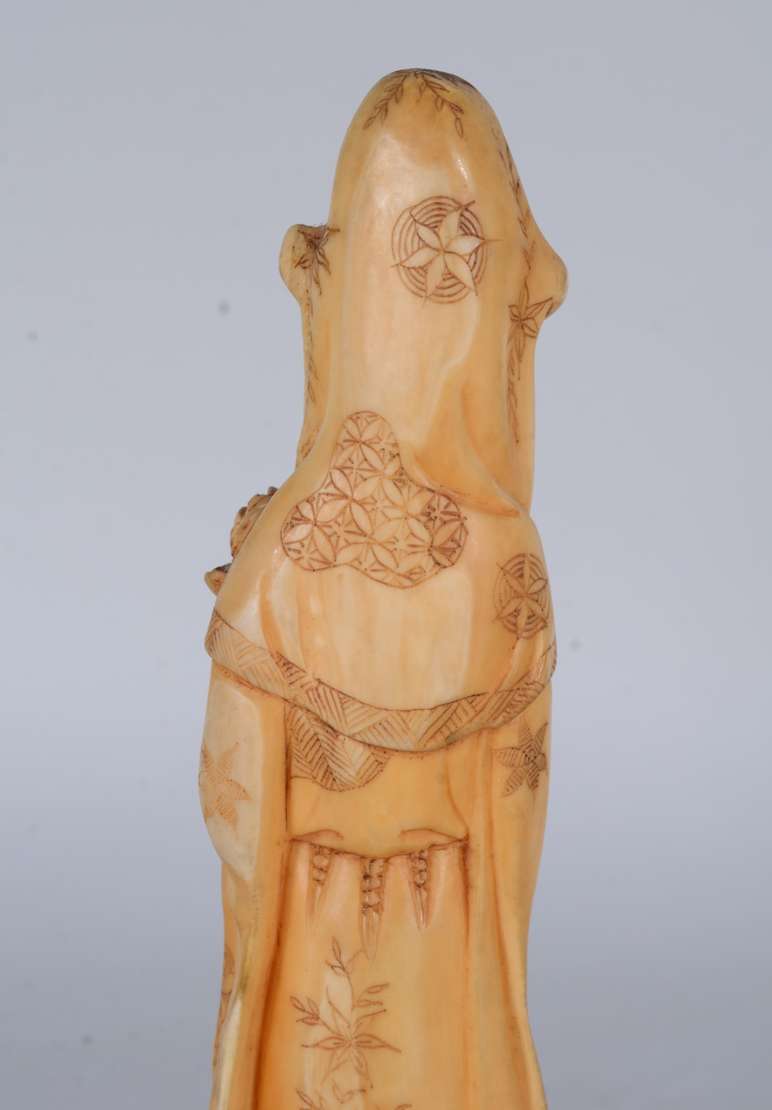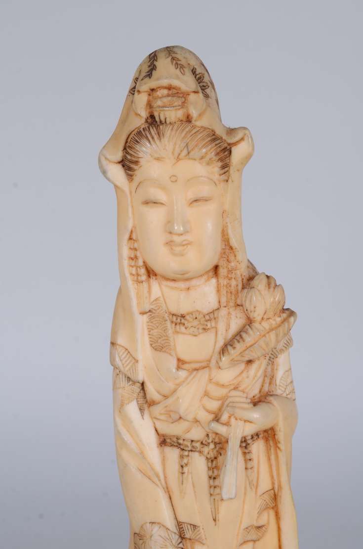 Escultura de marfim representando "Divindade Indiana". Mão colada.